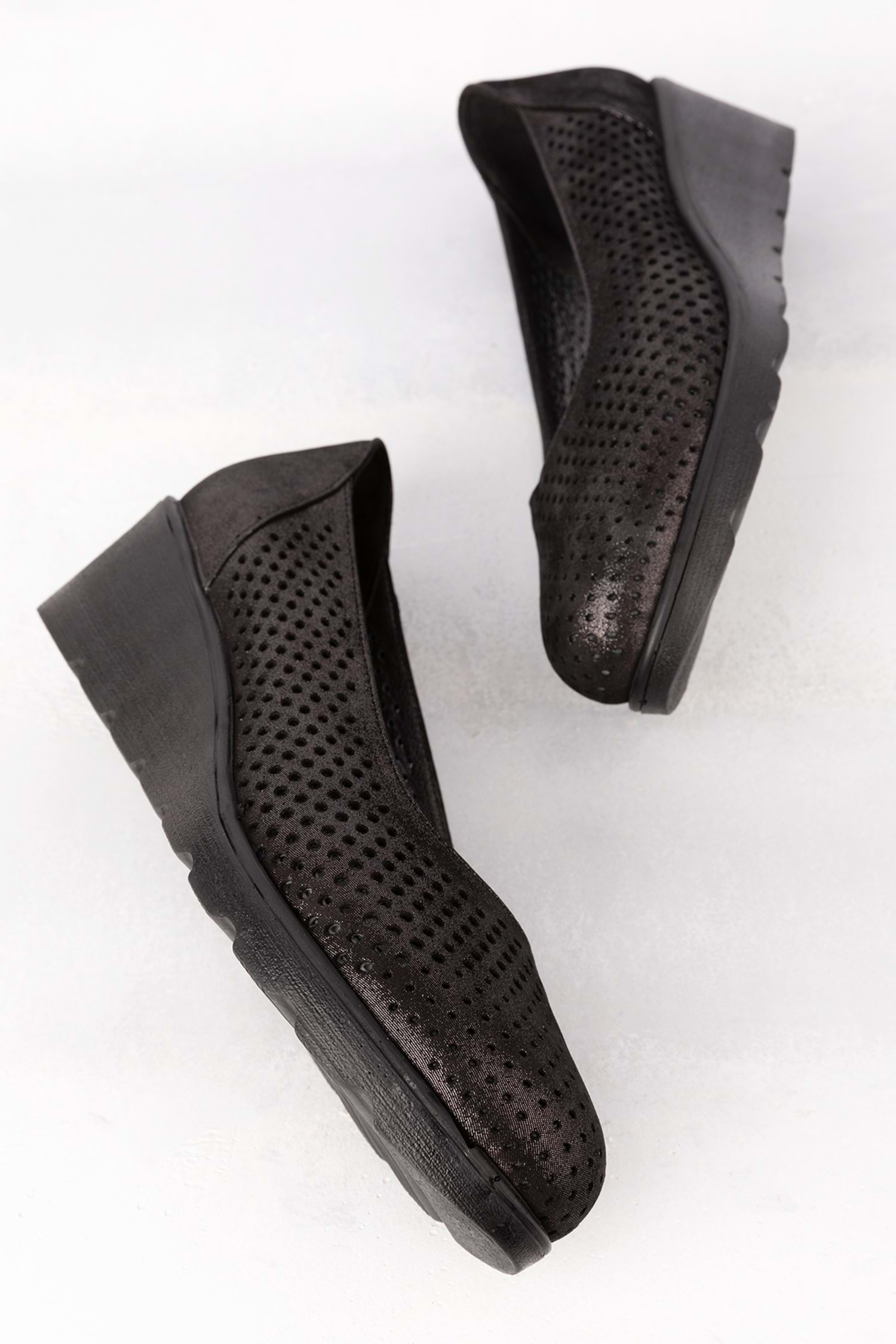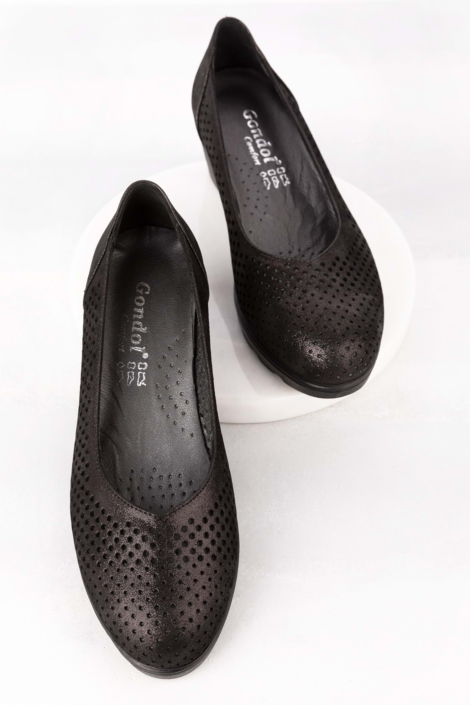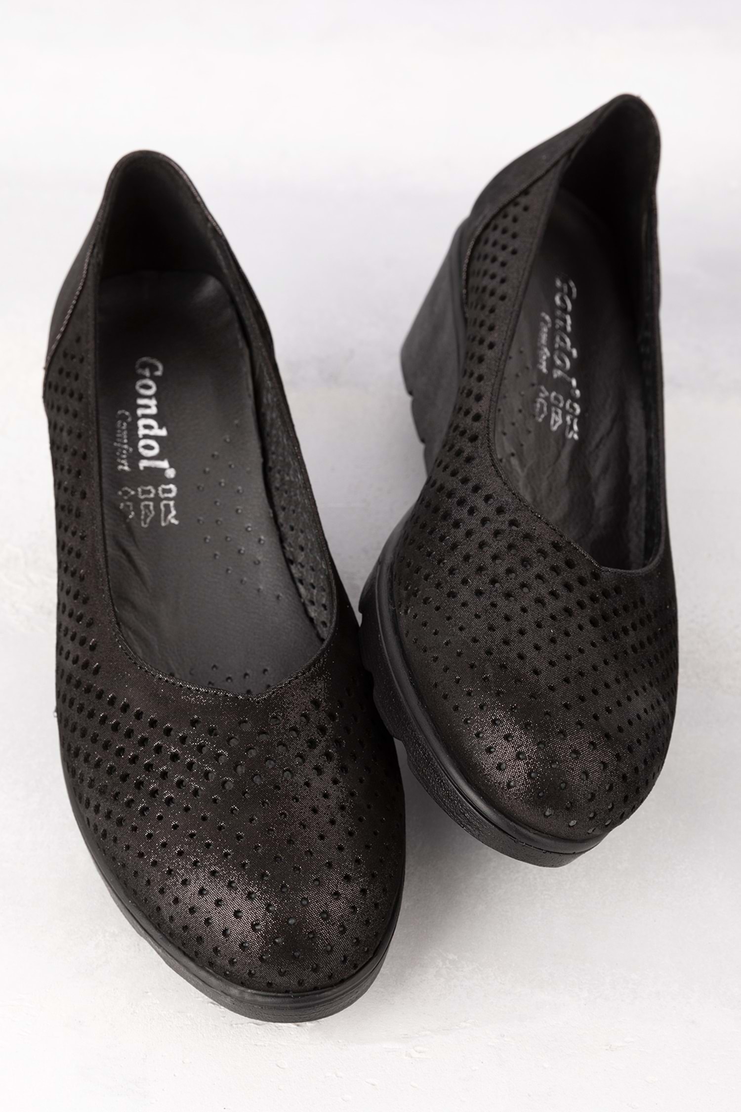 Gondol Kadın Hakiki Deri Dolgu Topuk Rahat Şık Anne Ayakkabısı ell.6596 - Siyah - 40