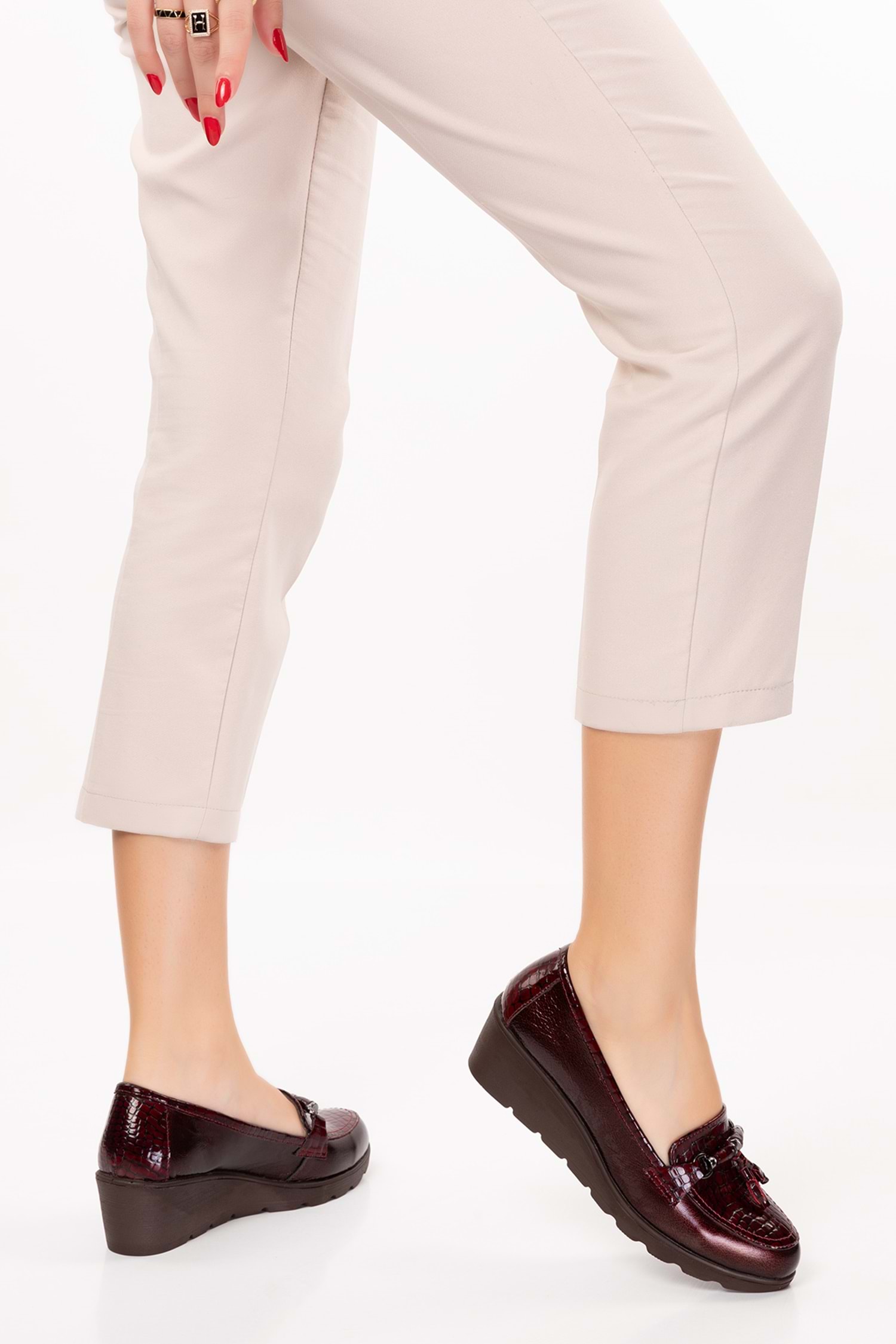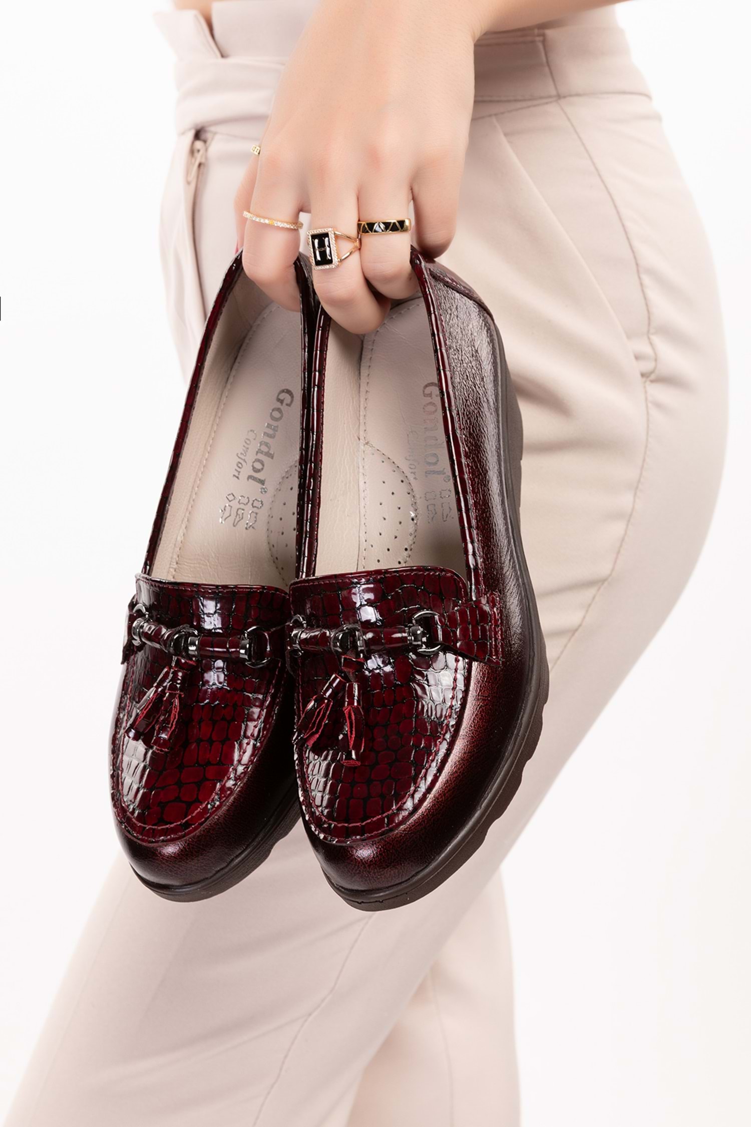 Gondol Kadın Hakiki Deri Dolgu Topuk Rahat Şık Anne Ayakkabısı ell.6821 - Bordo - 40
