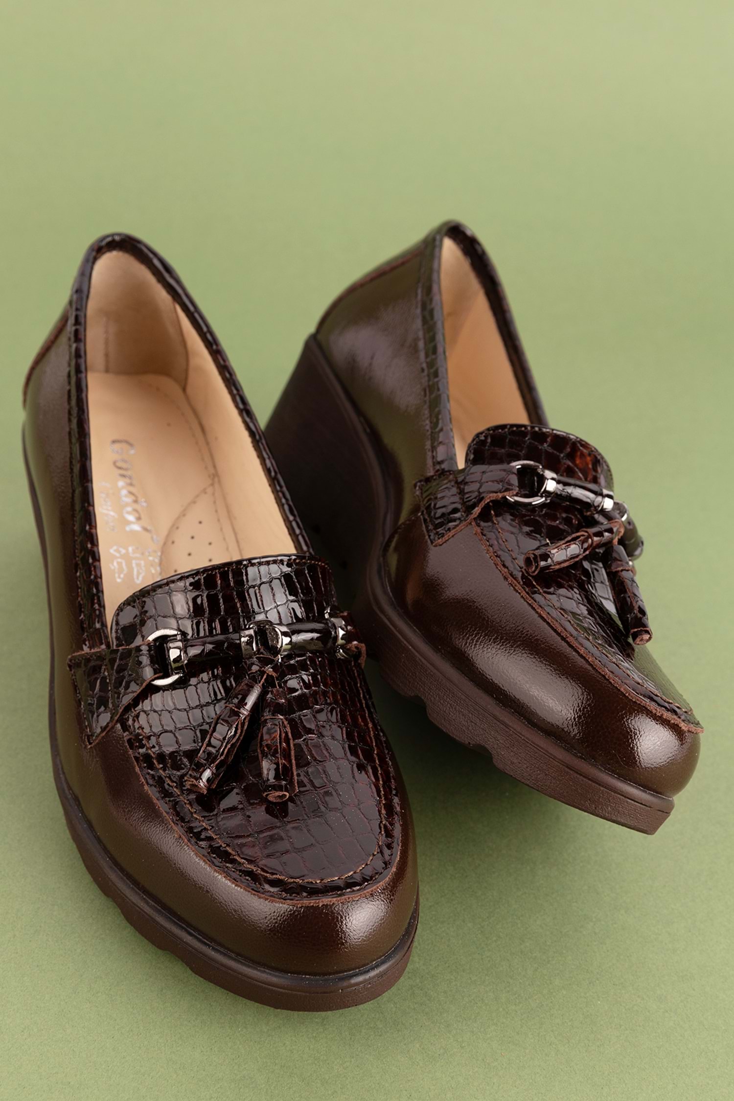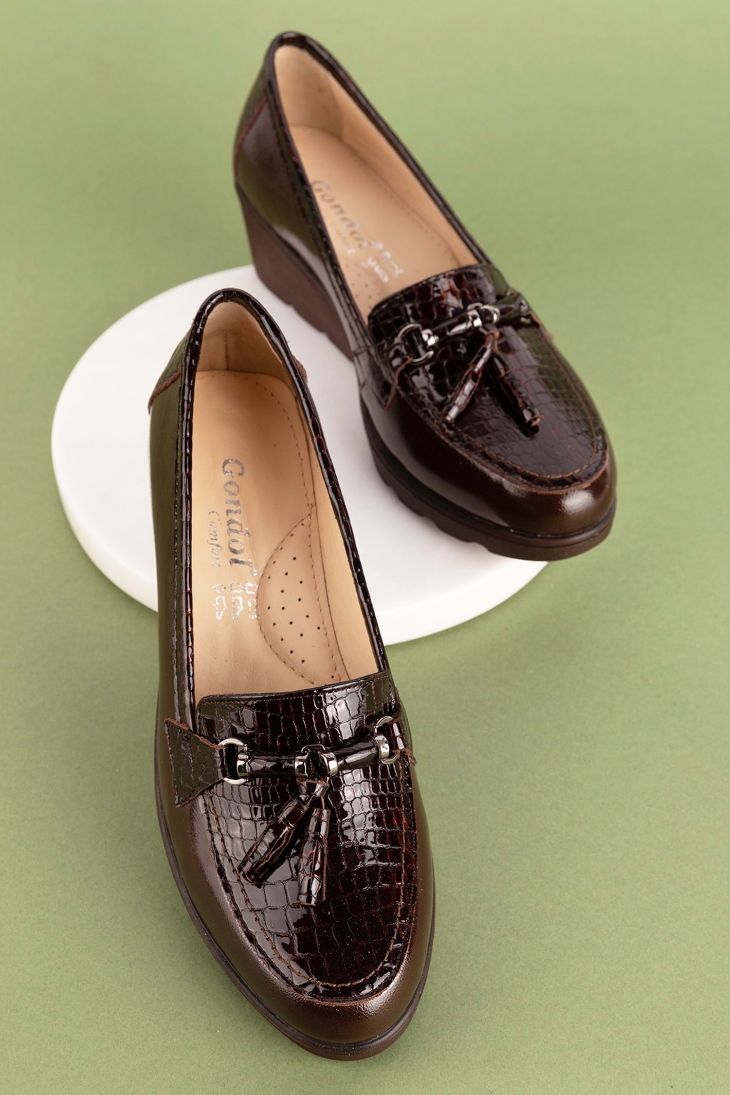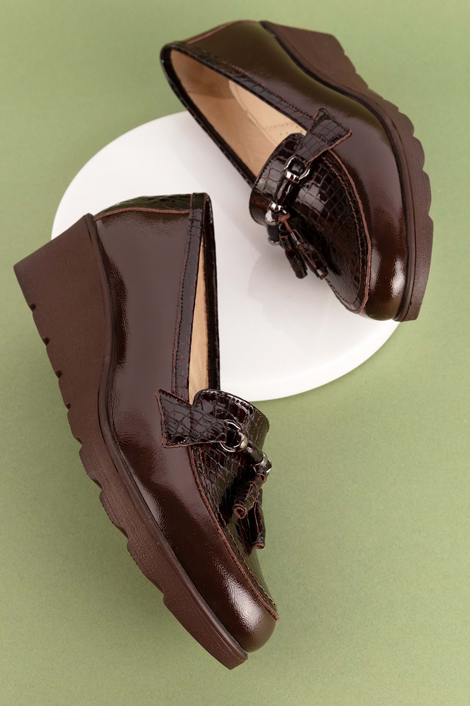 Gondol Kadın Hakiki Deri Dolgu Topuk Rahat Şık Anne Ayakkabısı ell.6821 - Kahverengi - 41