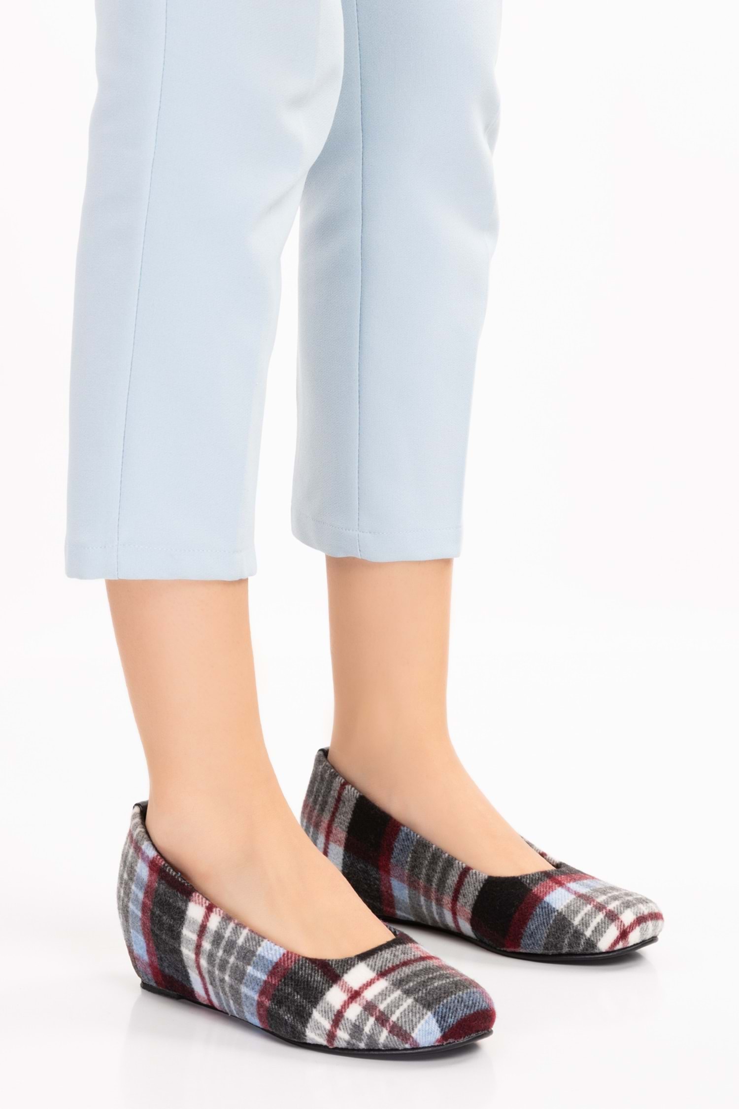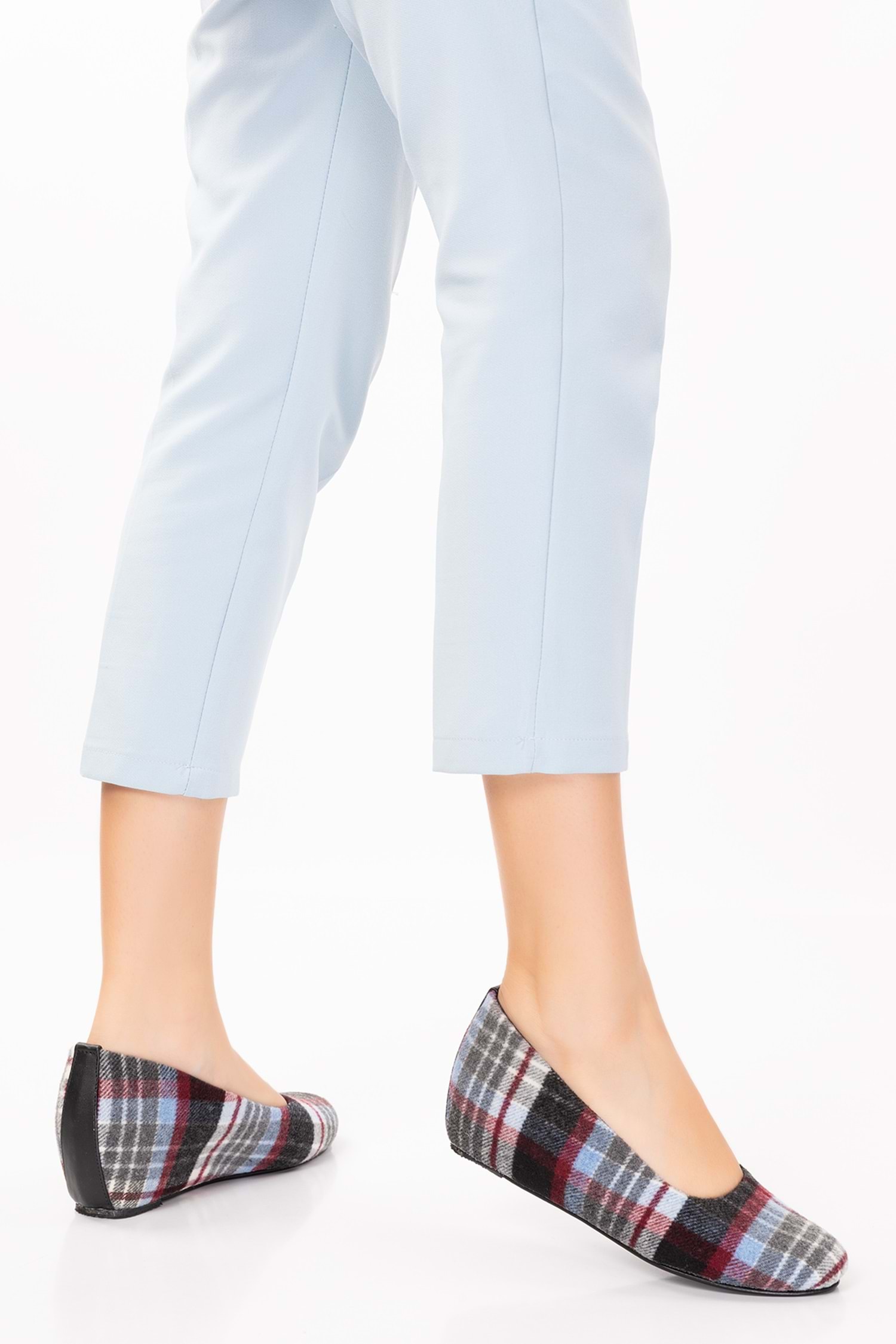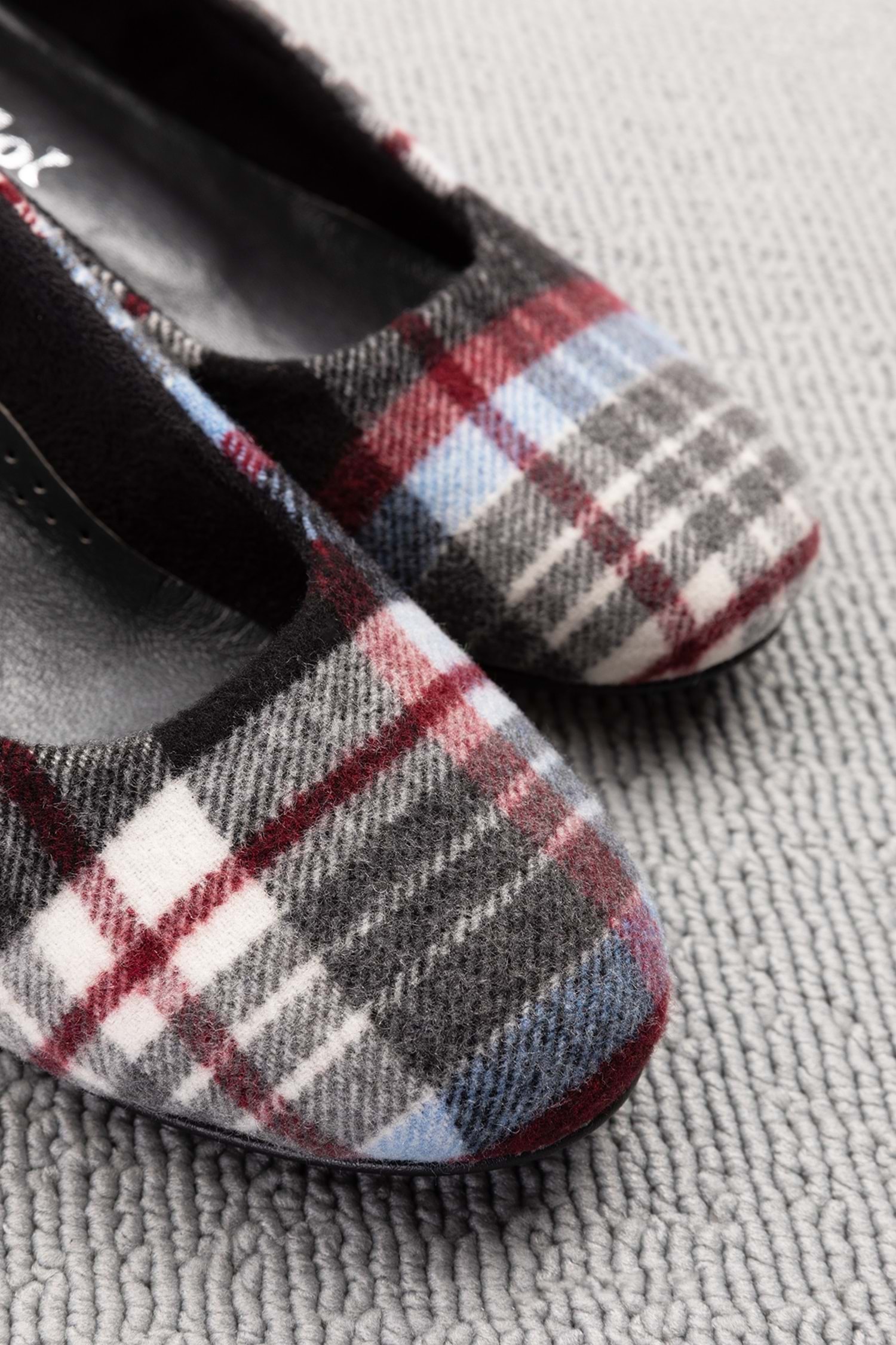 Dış Materyal : Kumaş İç Materyal : Hakiki Deri Ekose Desen Kaymaz Taban Topuk Boyu 3 cm Ev Ayakkabısı