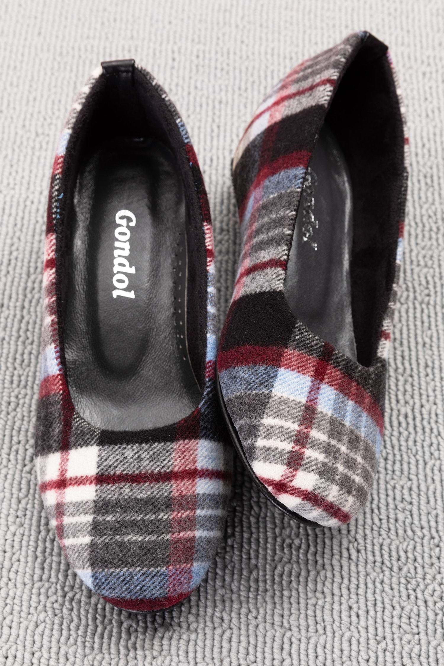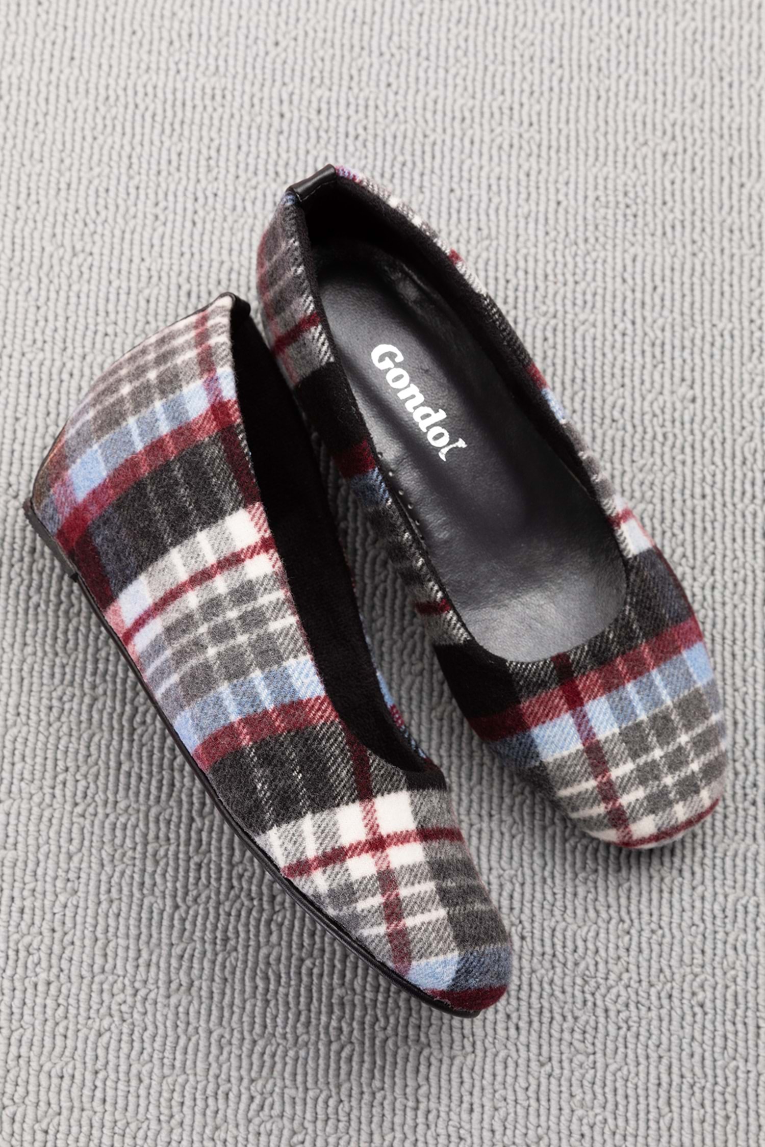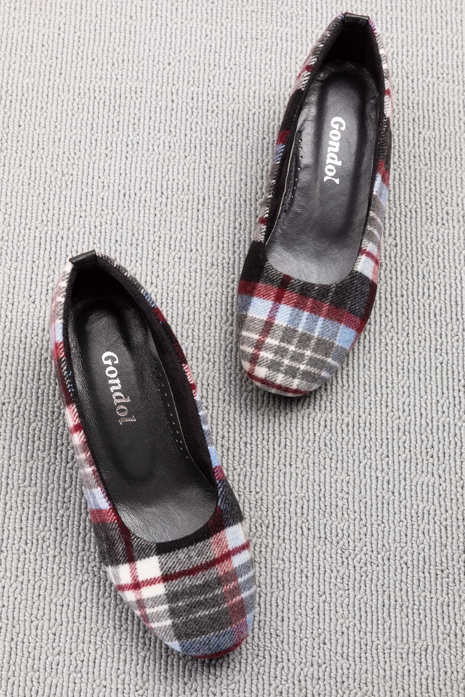 Dış Materyal : Kumaş İç Materyal : Hakiki Deri Ekose Desen Kaymaz Taban Topuk Boyu 3 cm Ev Ayakkabısı