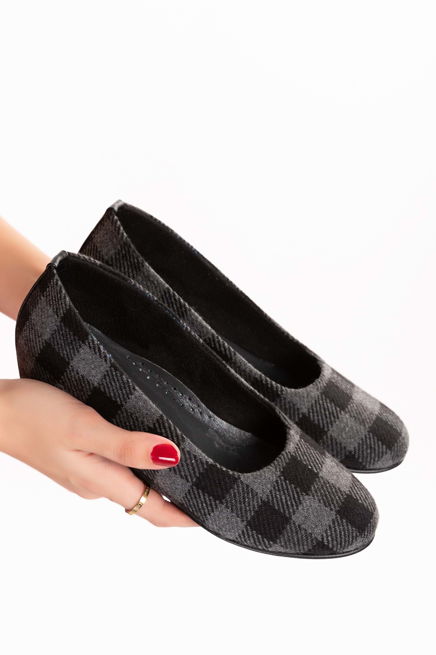 Dış Materyal : Kumaş İç Materyal : Hakiki Deri Ekose Desen Kaymaz Taban Topuk Boyu 3 cm Ev Ayakkabısı