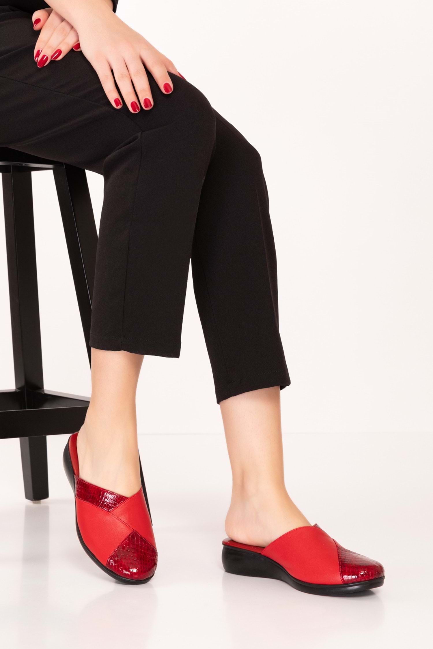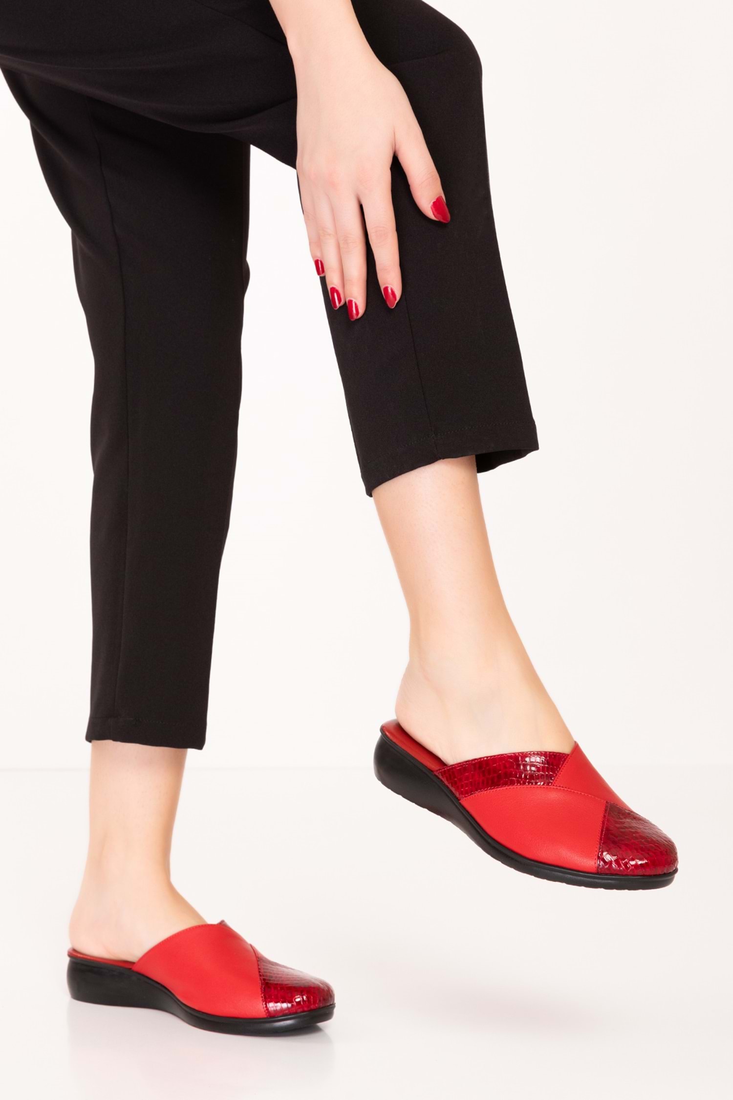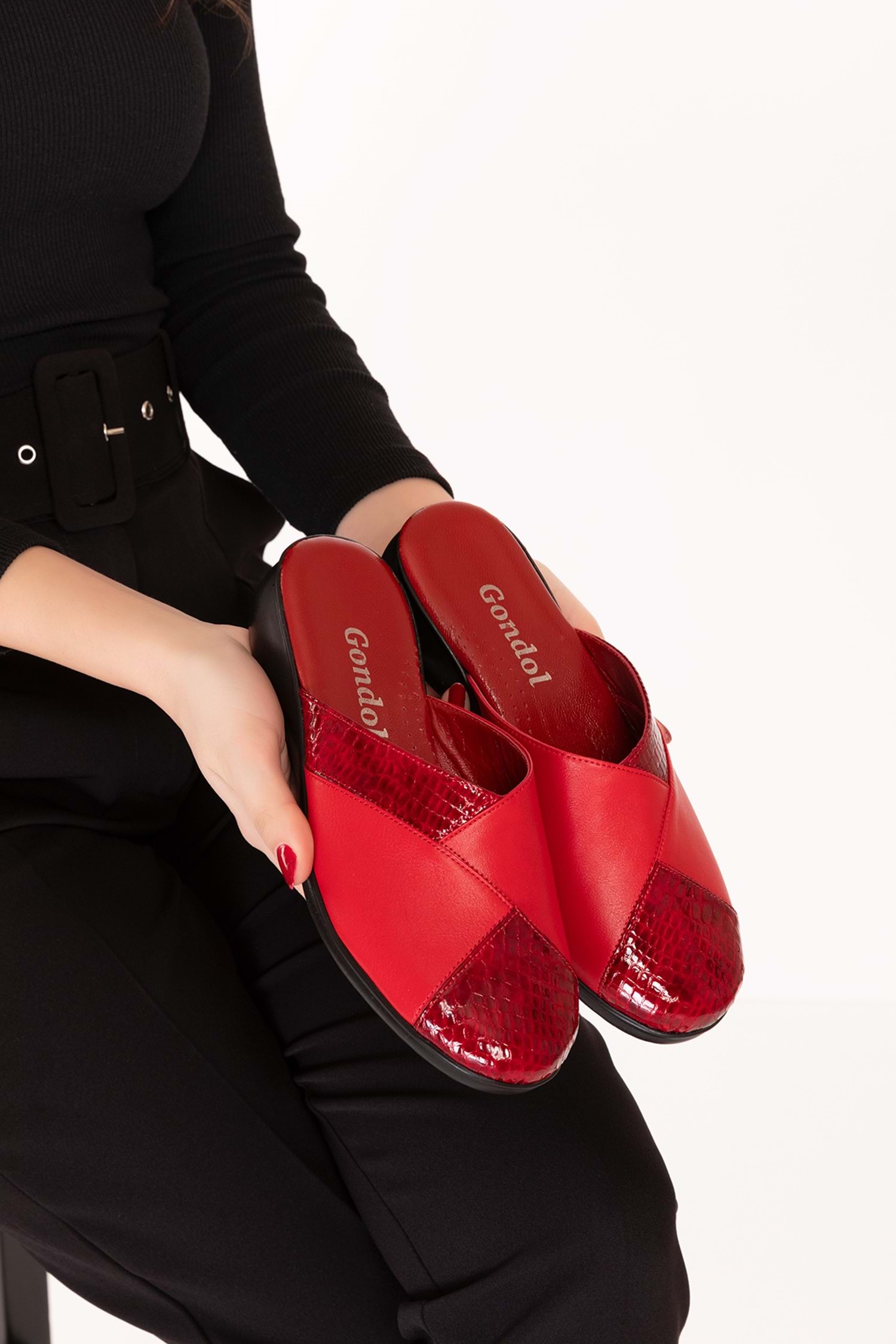 Gondol Hakiki Deri Ev Terliği özl.450 - Kırmızı Kombin - 36