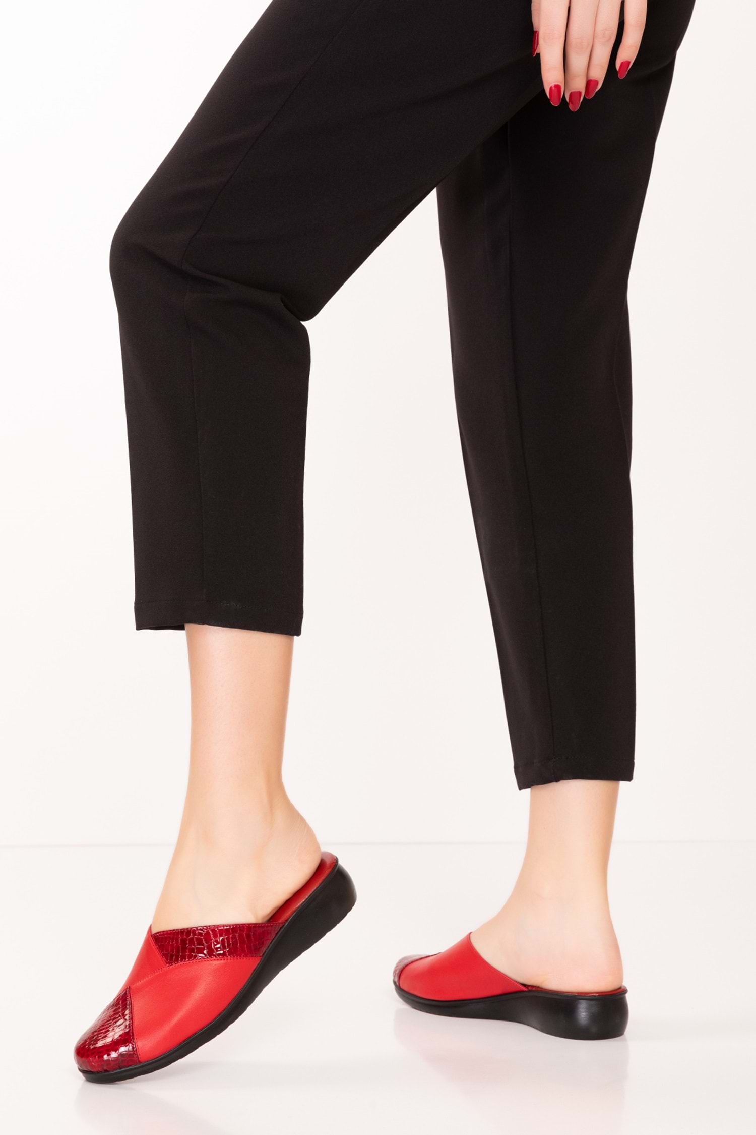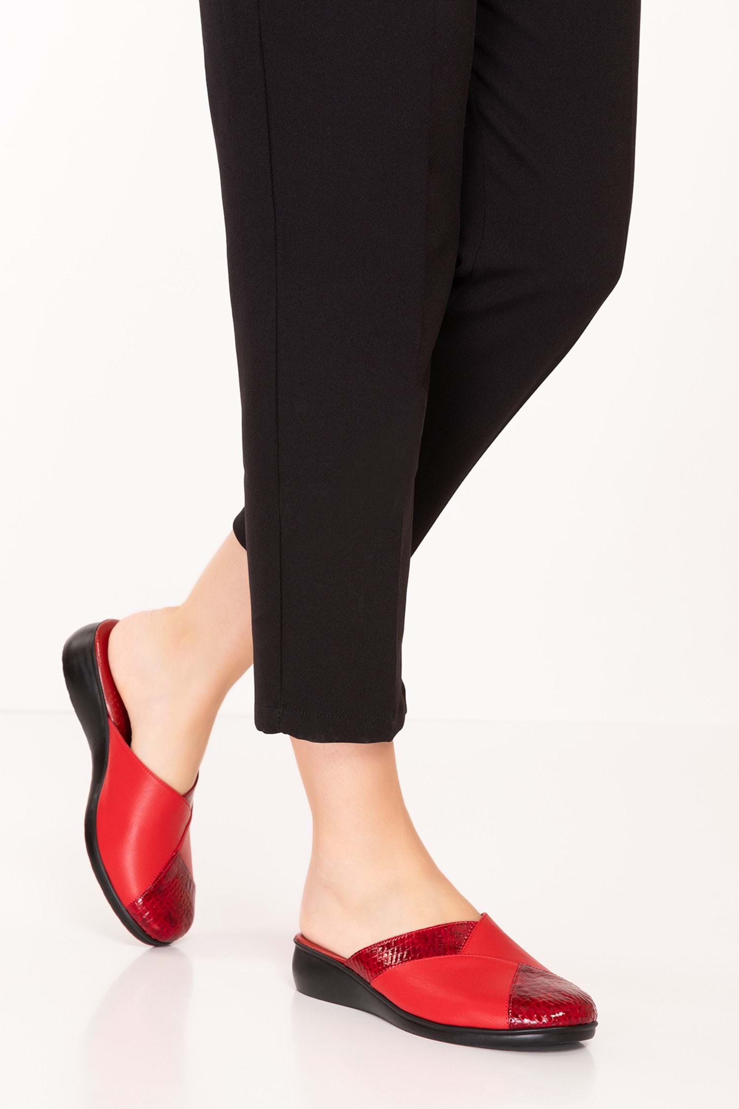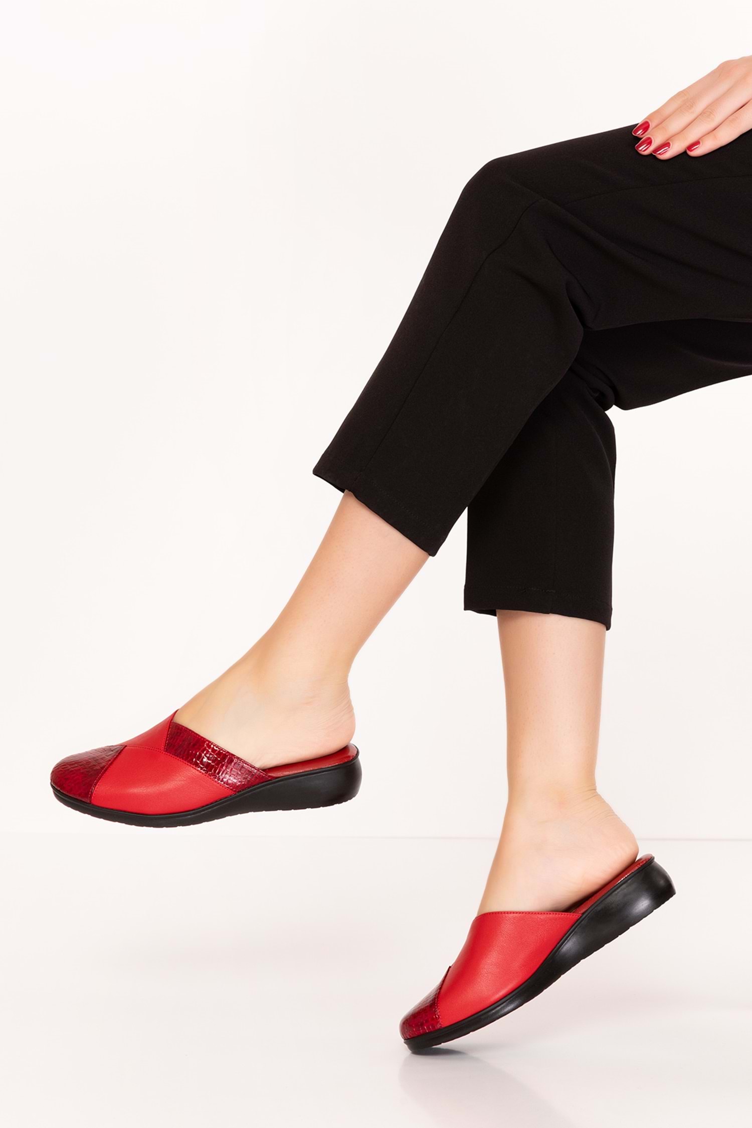 Gondol Hakiki Deri Ev Terliği özl.450 - Kırmızı Kombin - 36