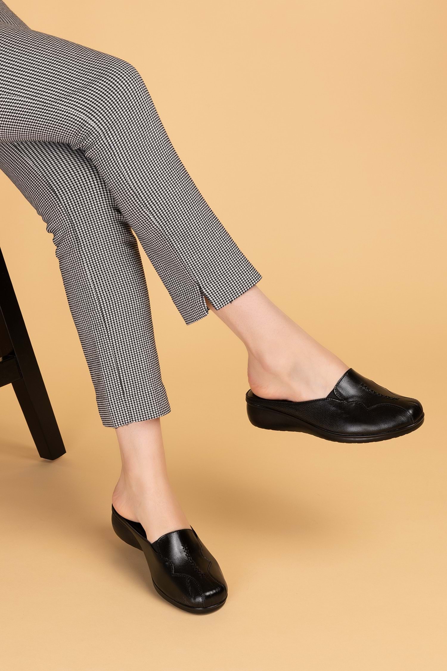 Gondol Hakiki Deri Ev Terliği Siyah 40 ÖZL.324