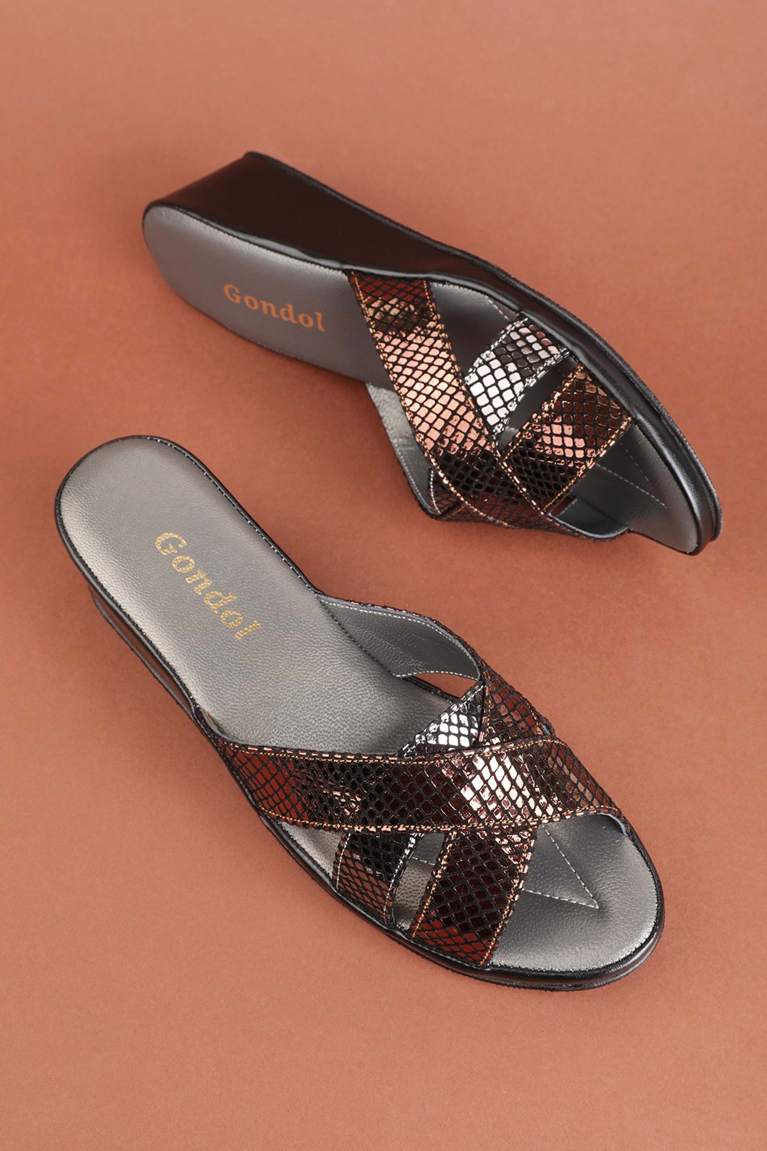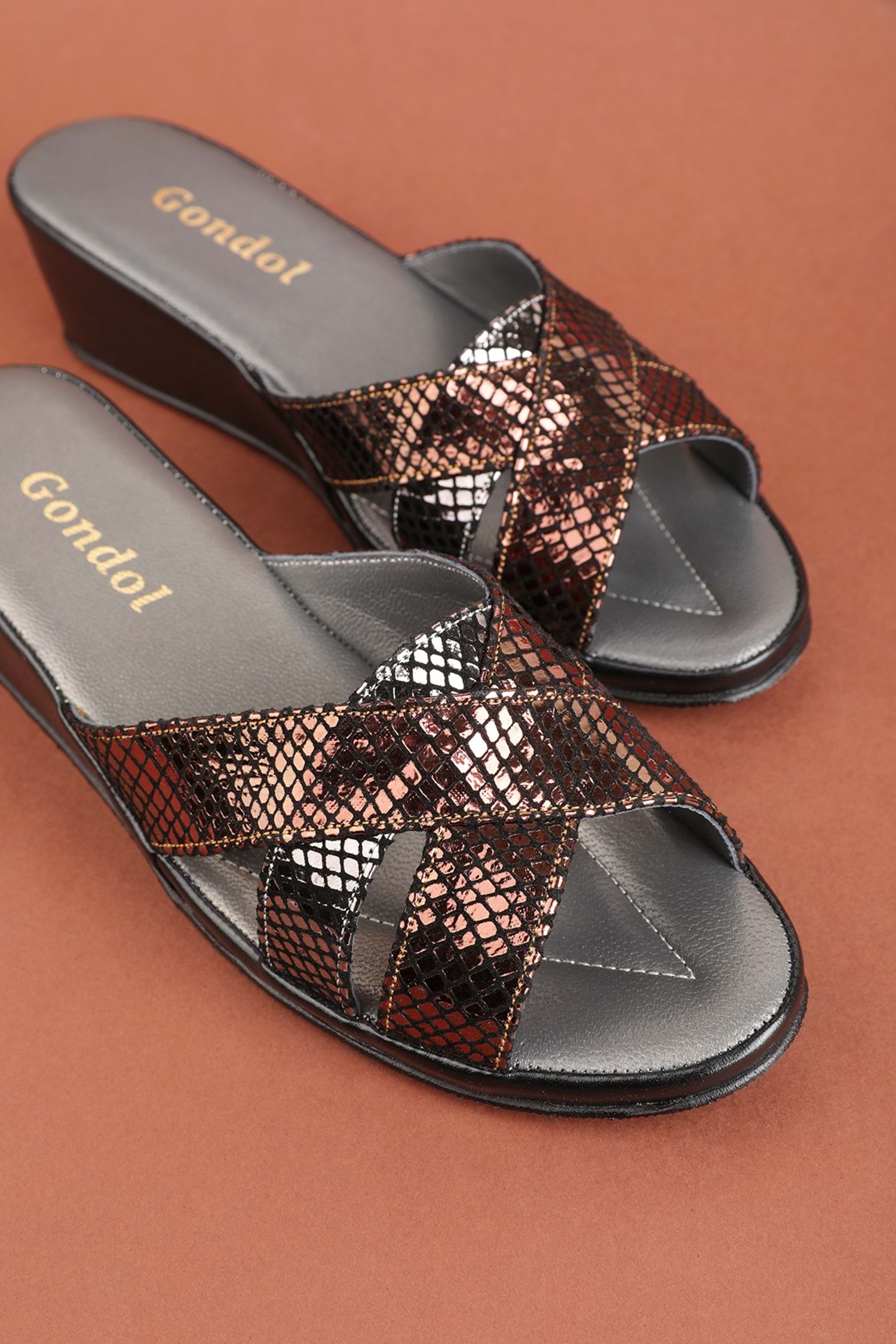 Gondol Hakiki Deri Şık Atom Ev Terliği Blc.33 - Bronz - 35