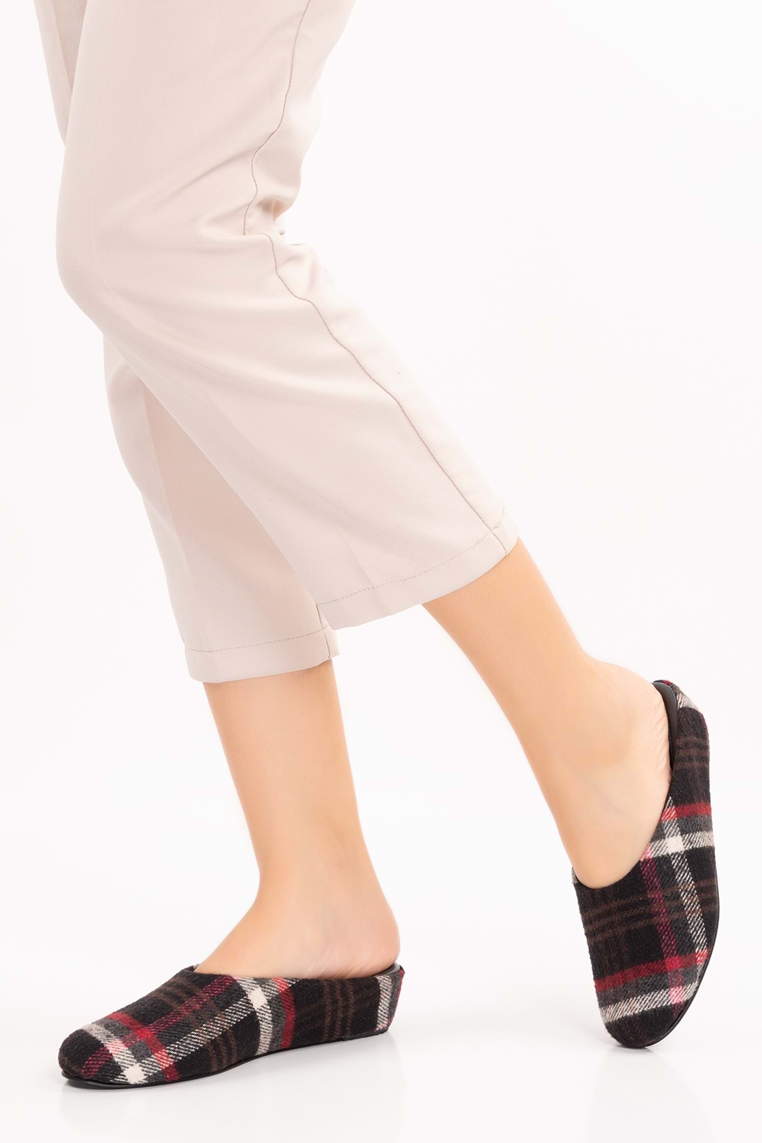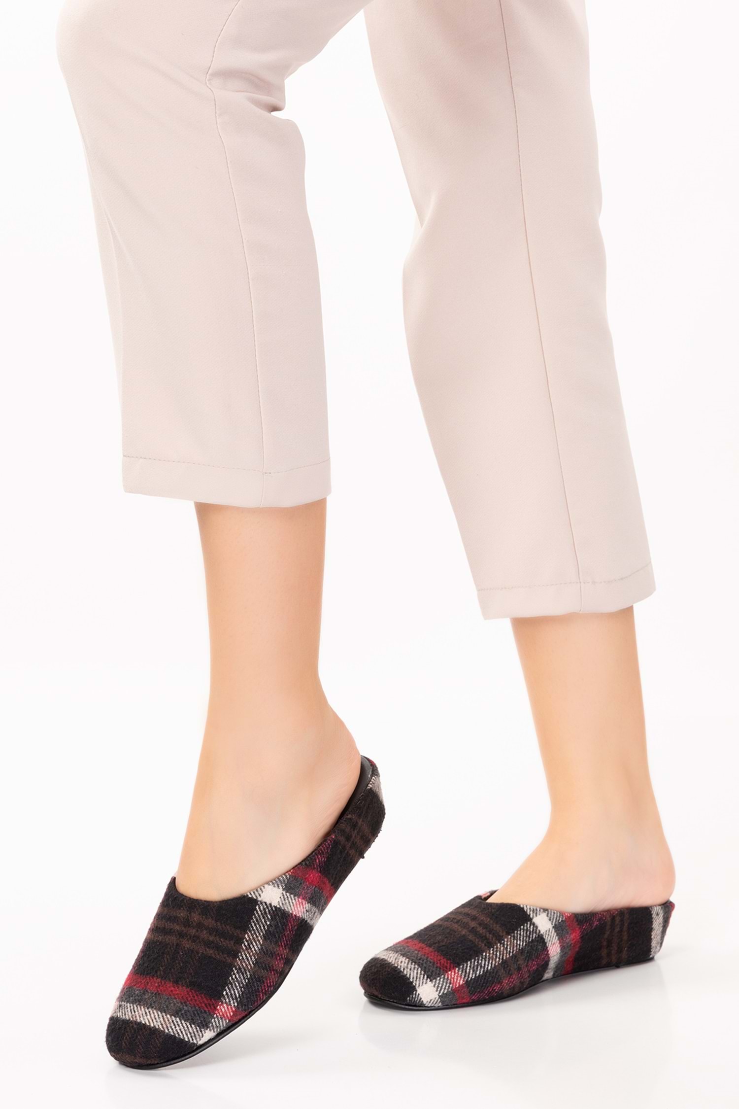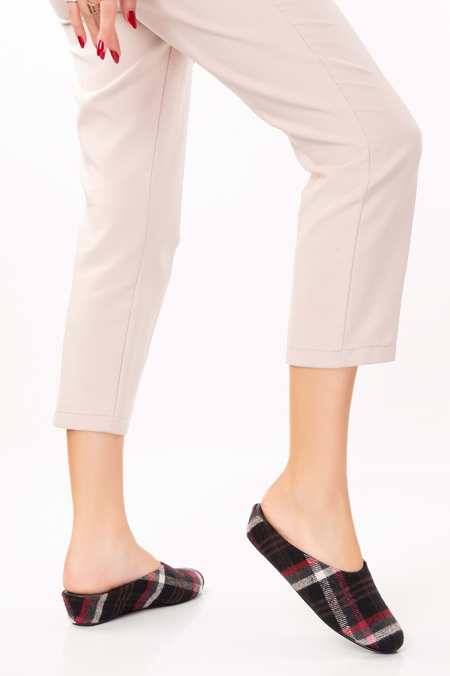 Dış Materyal : Kumaş İç Materyal : Hakiki Deri Ekose Desen Kaymaz Taban Topuk Boyu 3 cm Ev Ayakkabısı