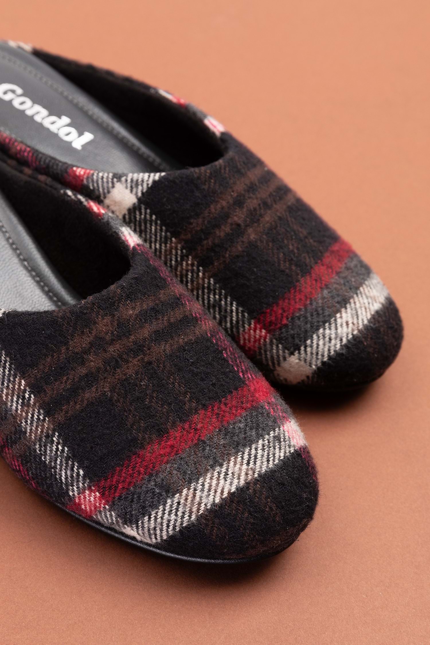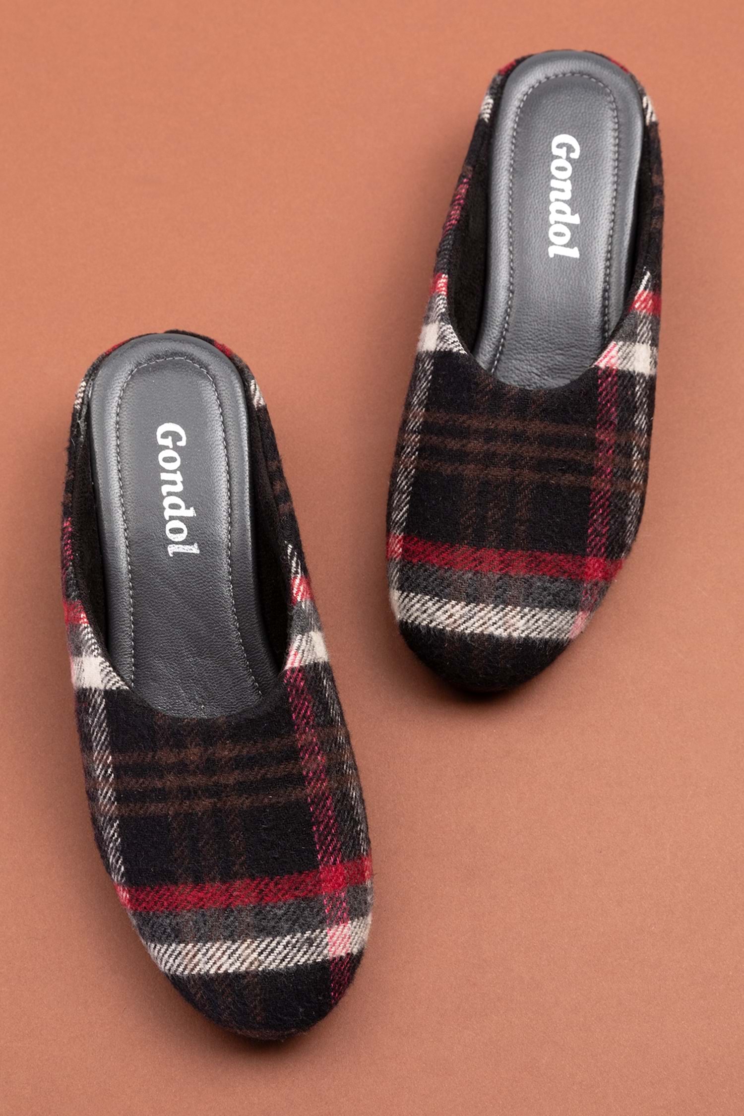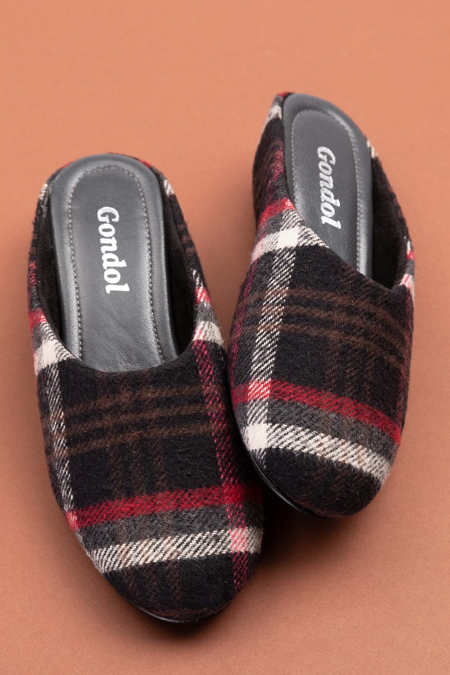 Dış Materyal : Kumaş İç Materyal : Hakiki Deri Ekose Desen Kaymaz Taban Topuk Boyu 3 cm Ev Ayakkabısı