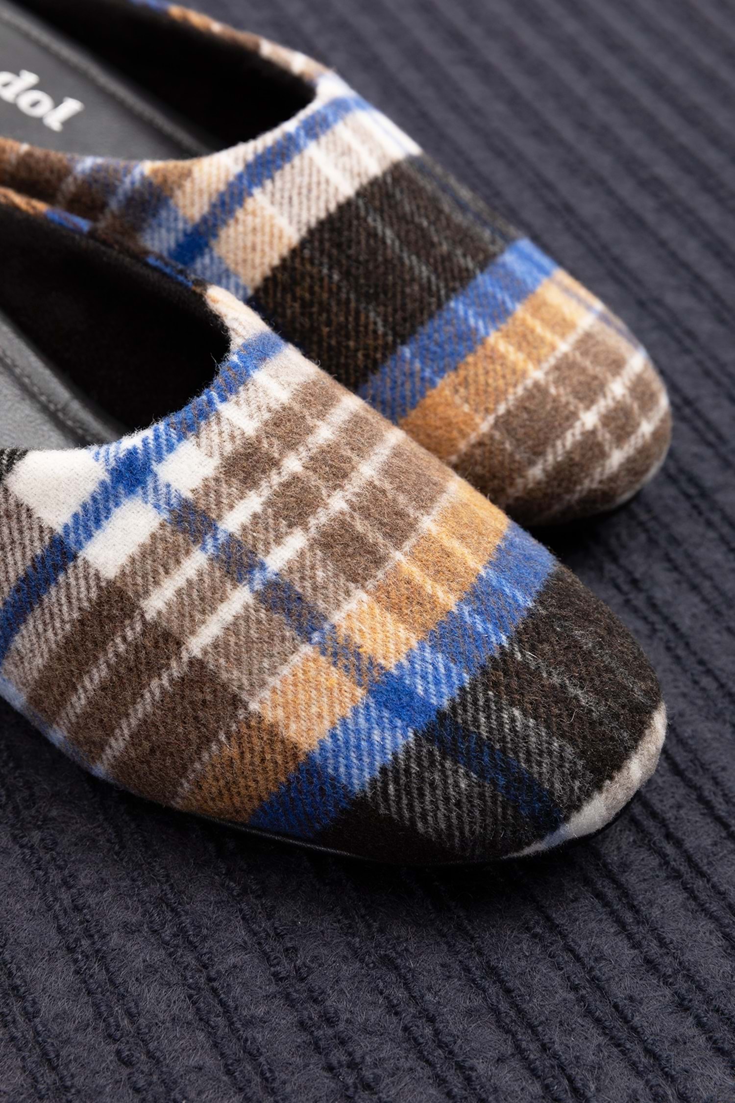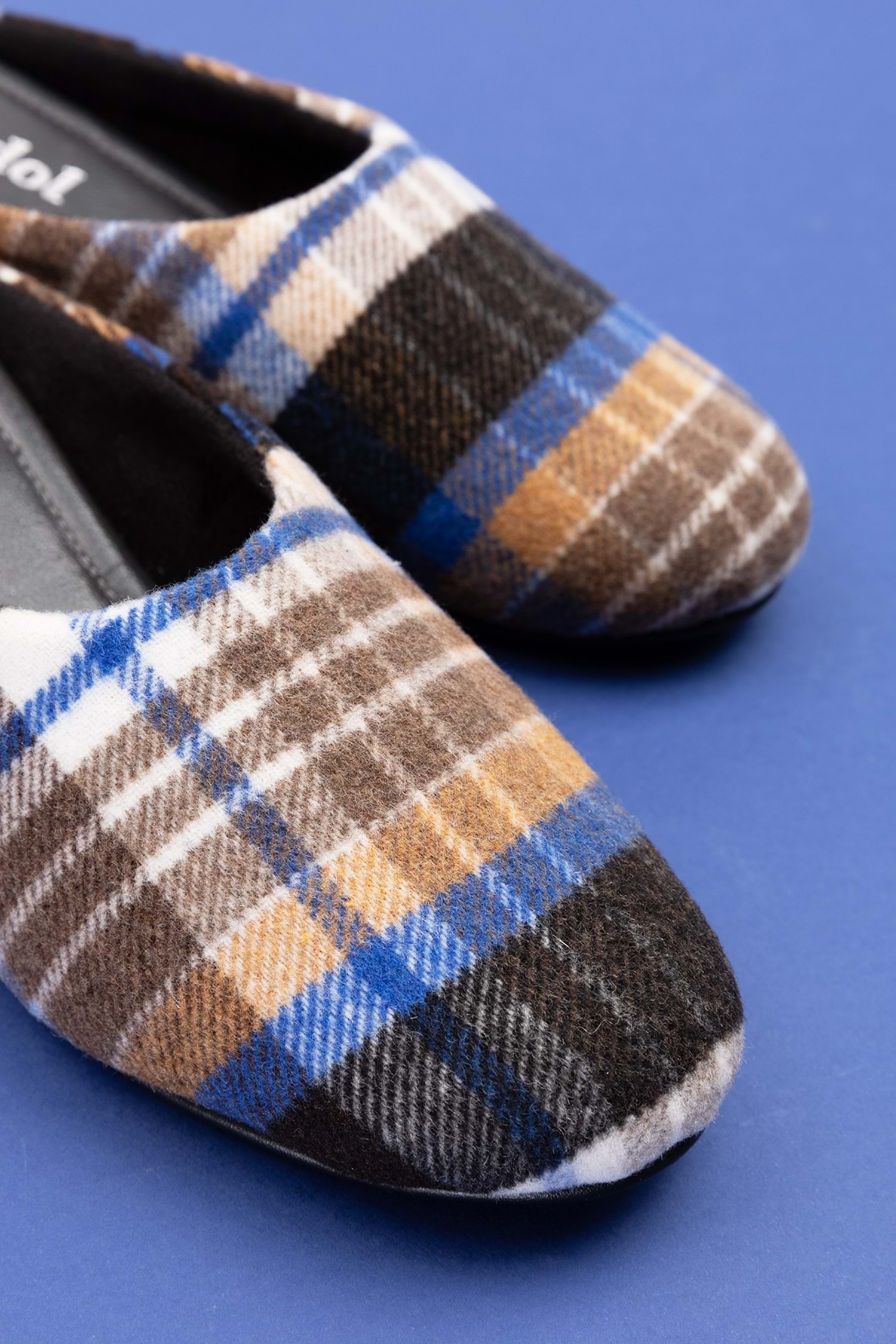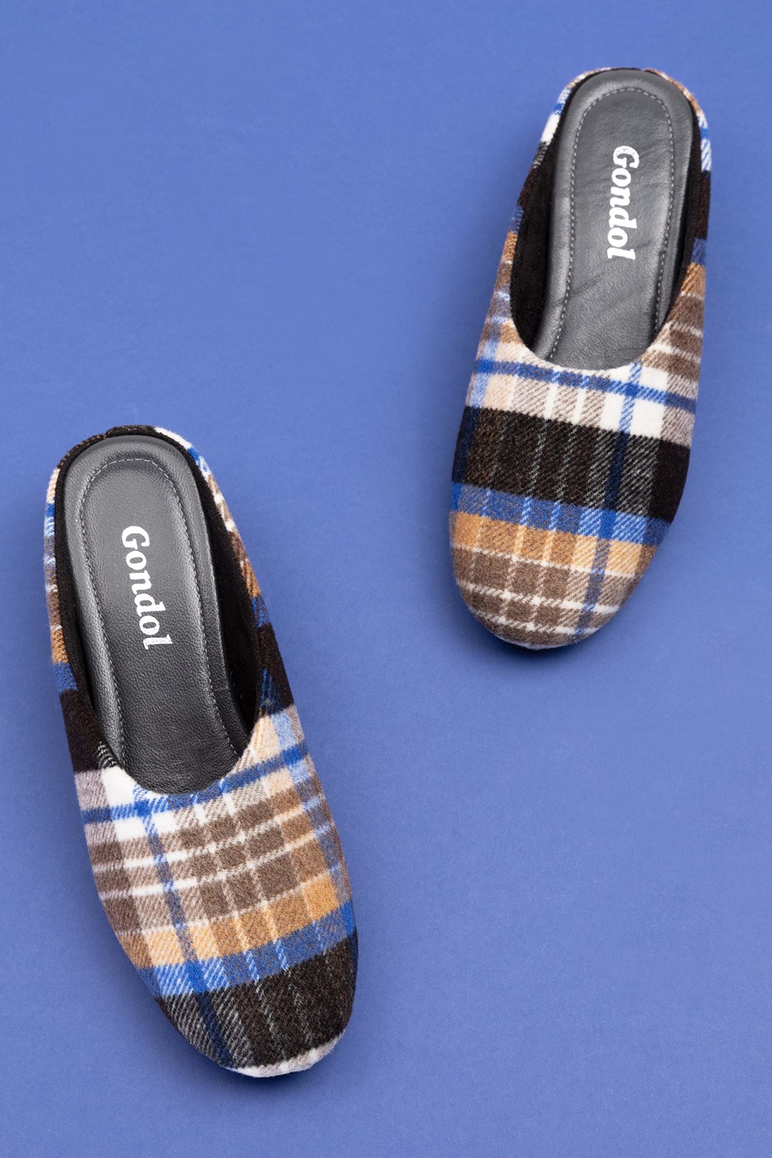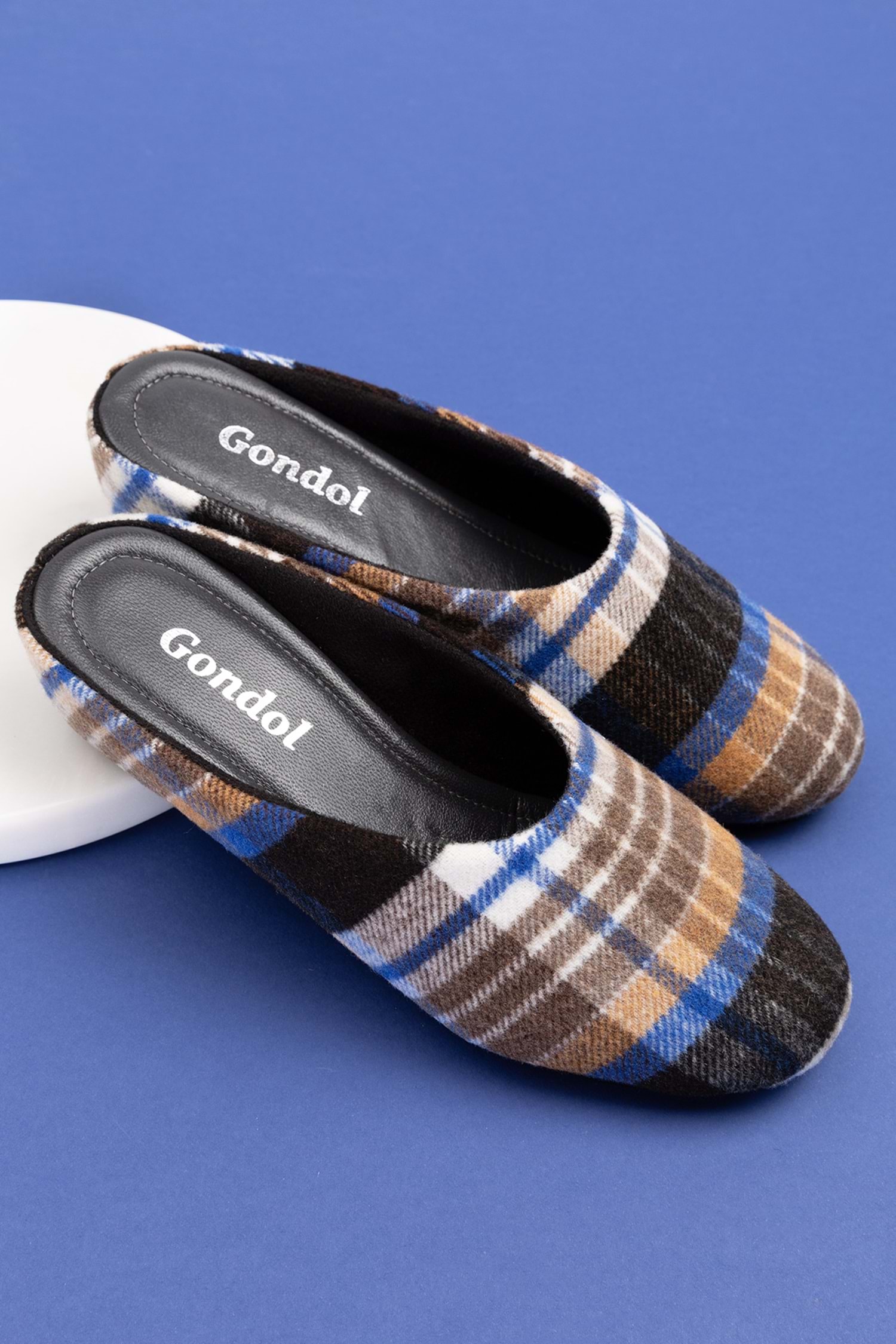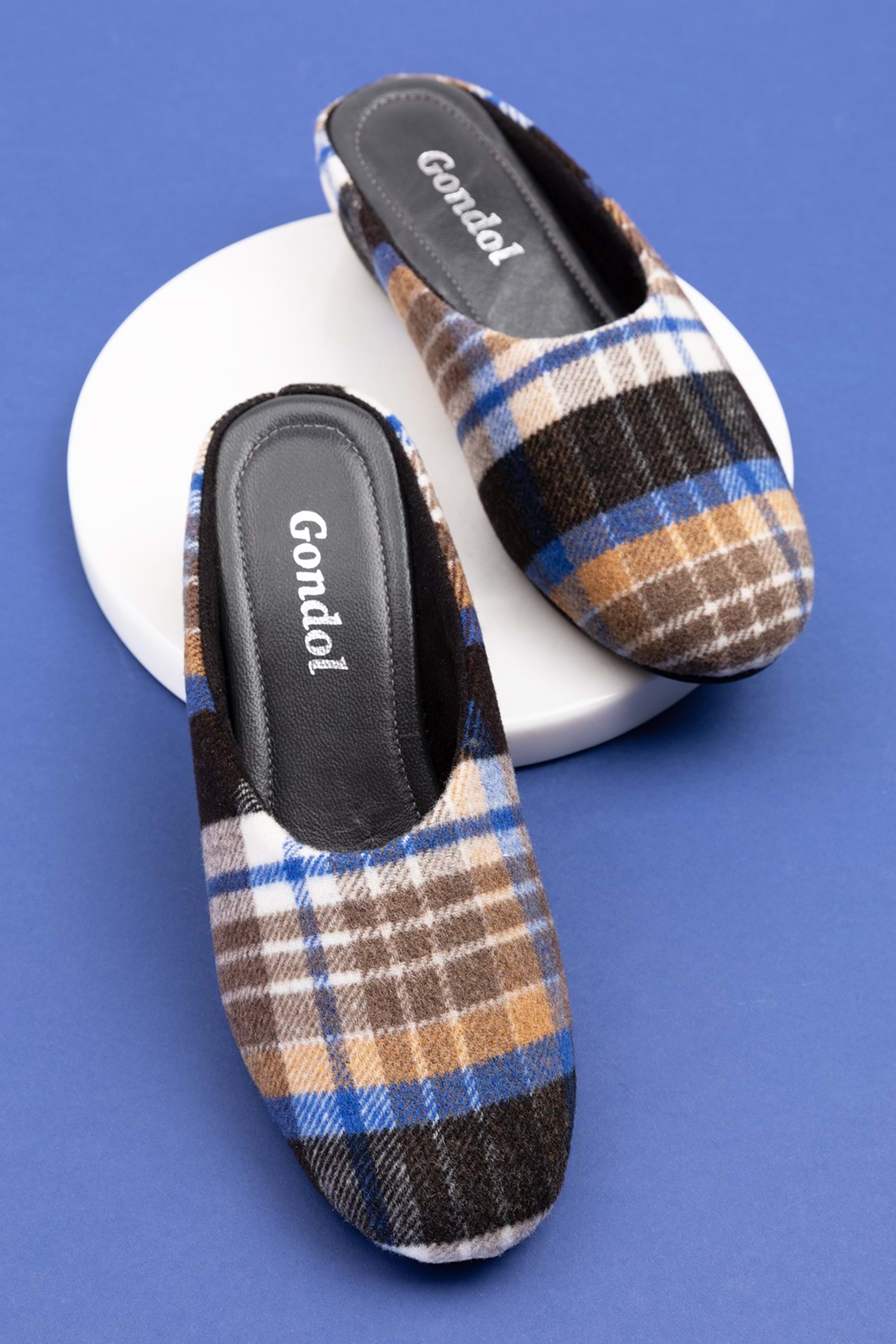 Gondol İçi Deri Ekose Desenli Ev Terliği mik.580 - Mavi - 41
