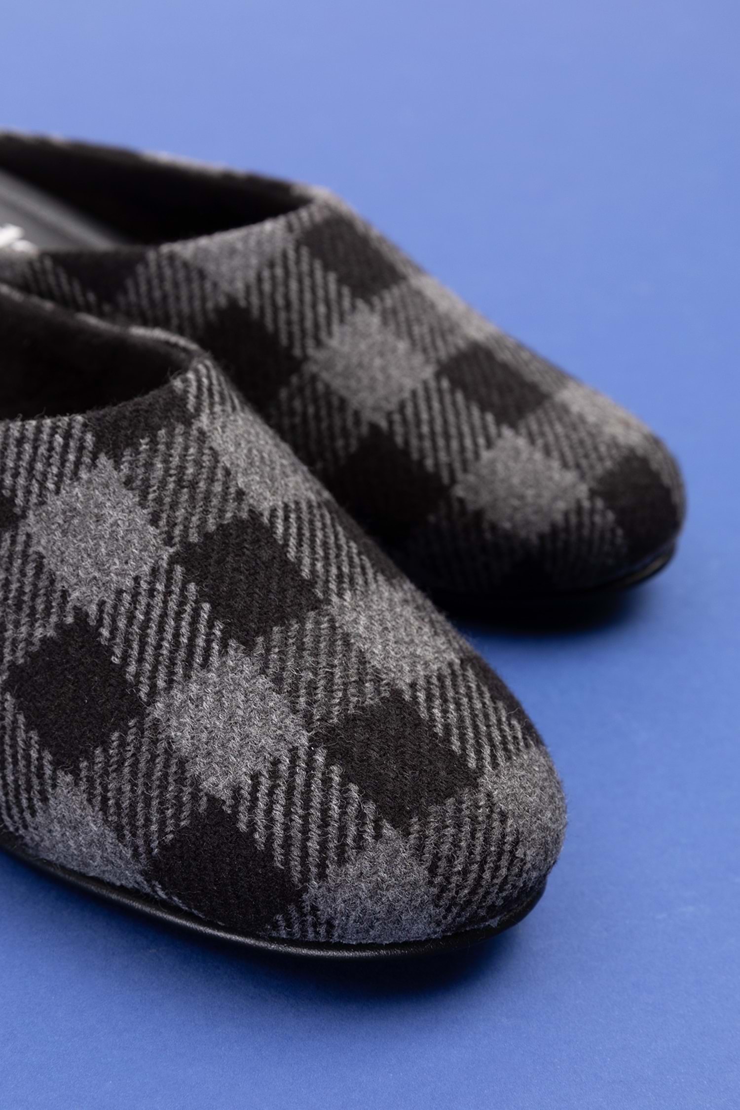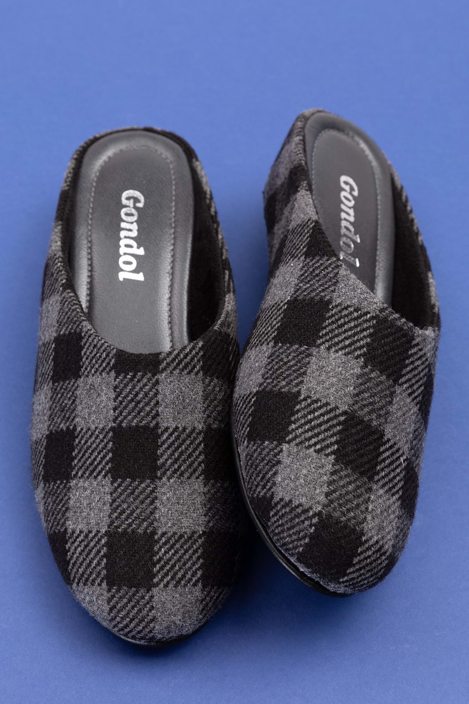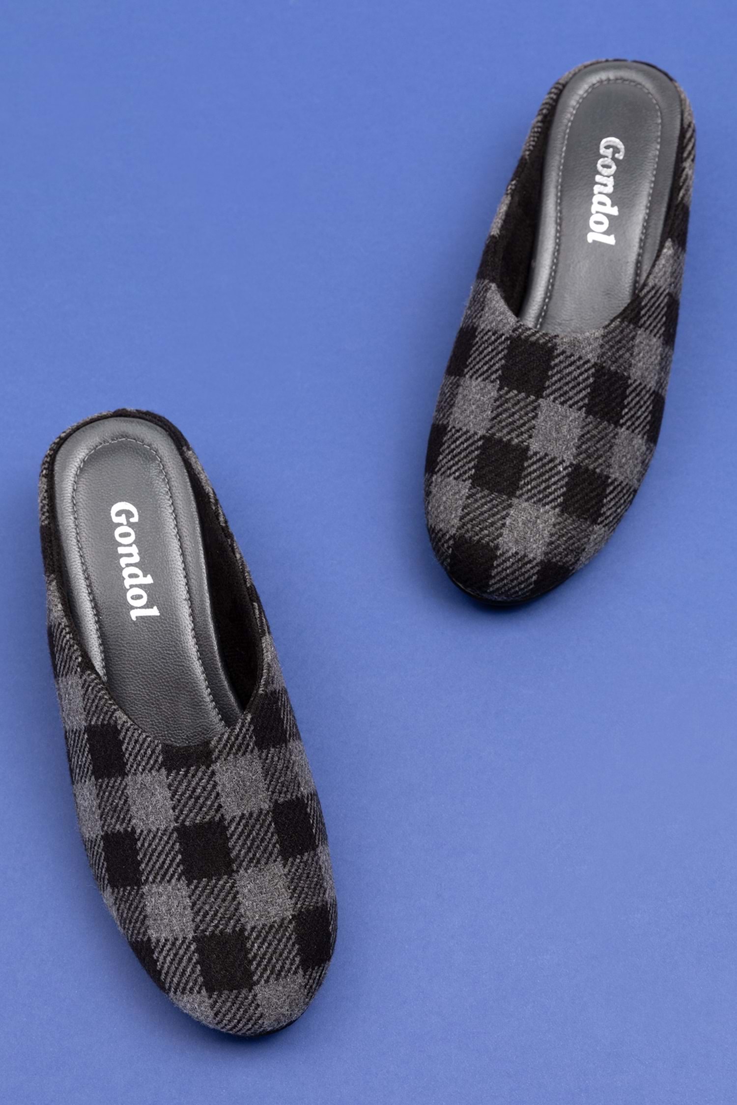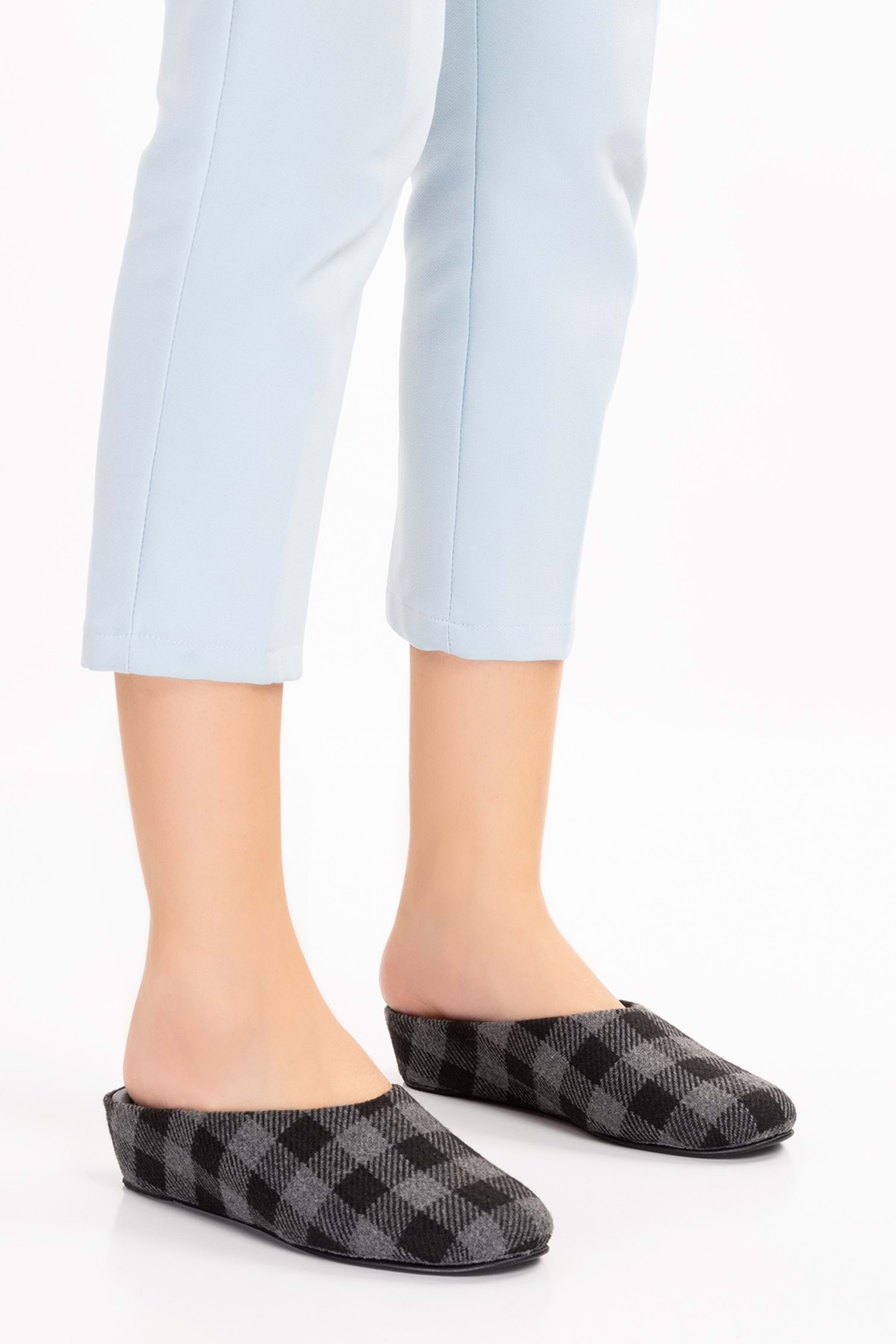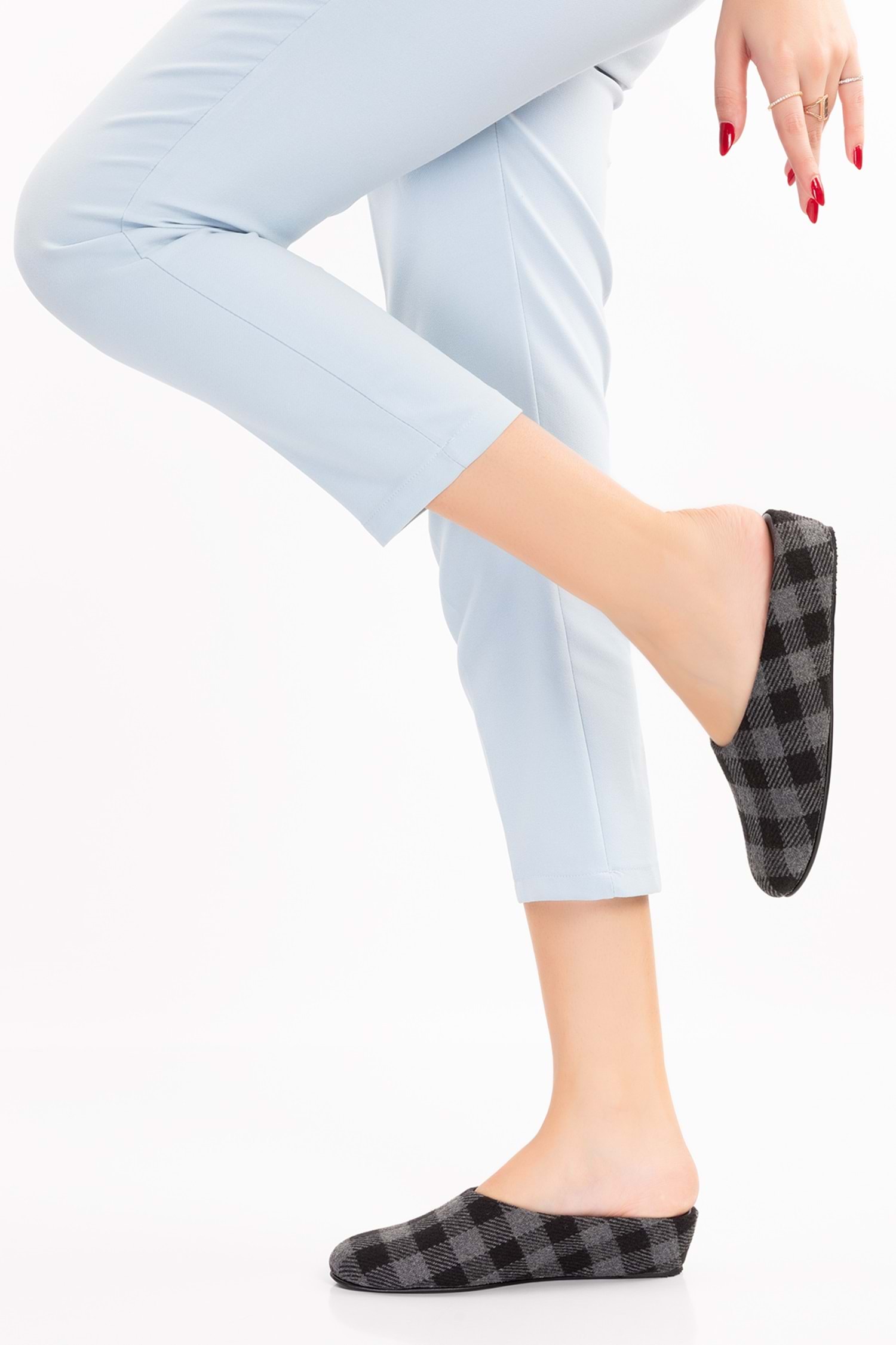 Dış Materyal : Kumaş İç Materyal : Hakiki Deri Ekose Desen Kaymaz Taban Topuk Boyu 3 cm Ev Ayakkabısı