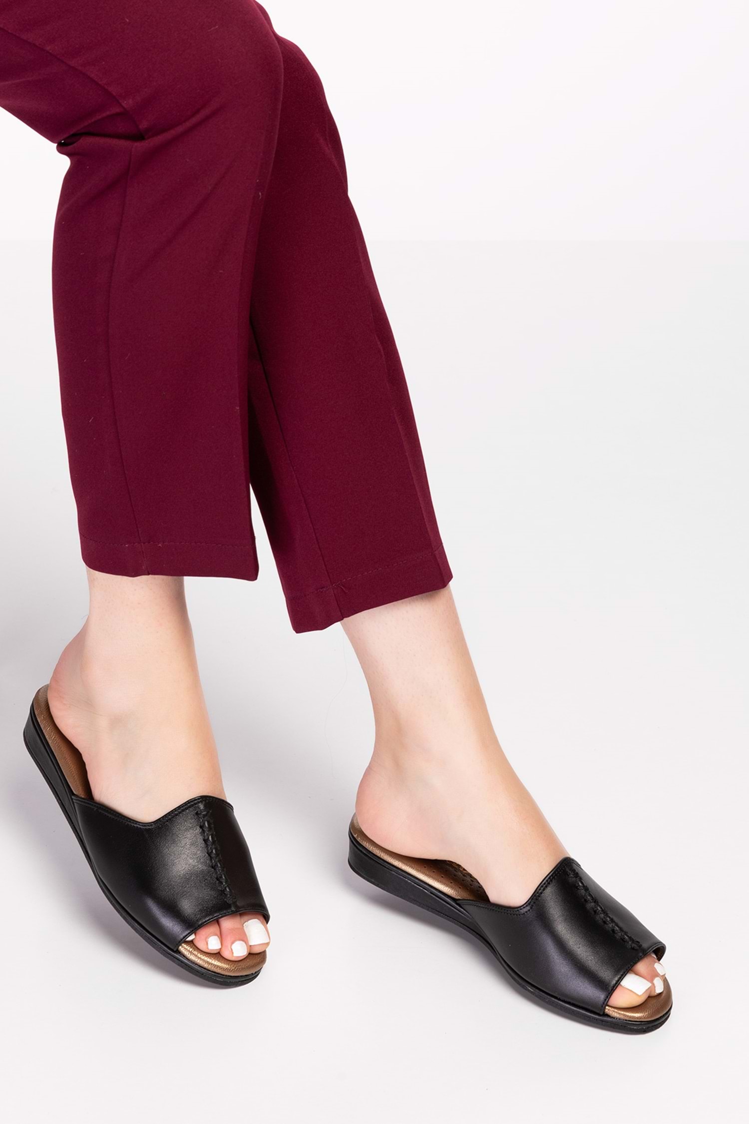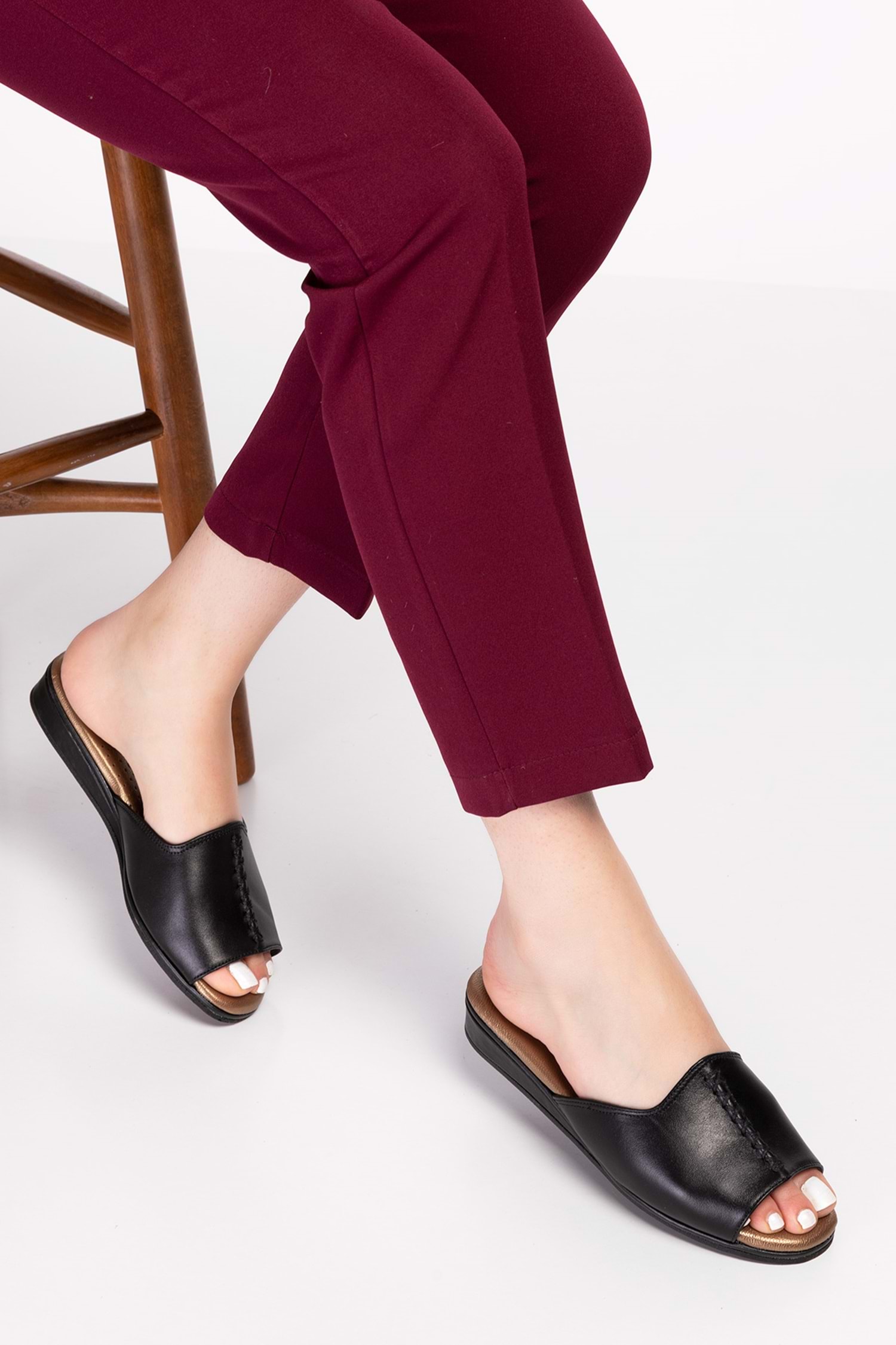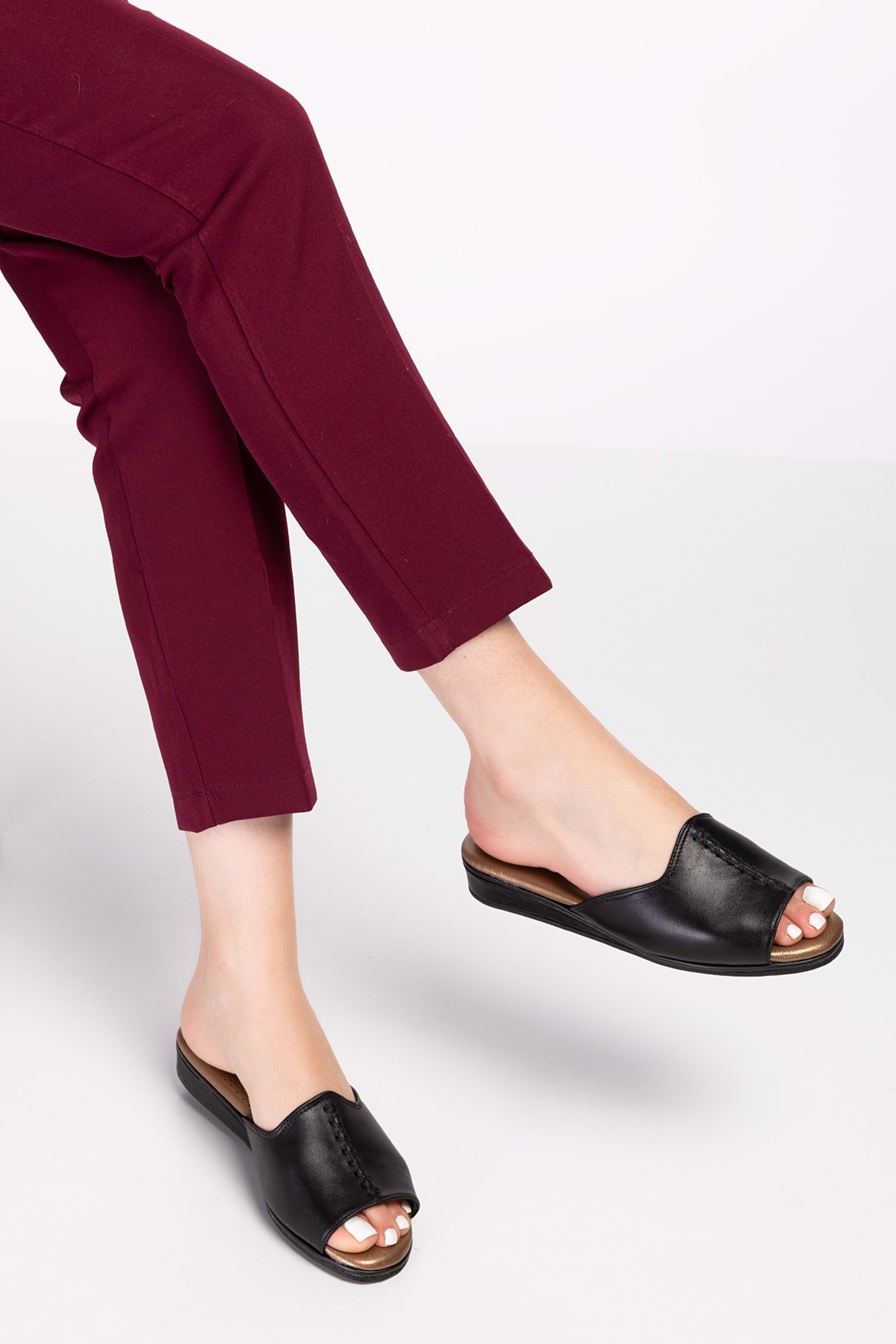 Gondol Kadın Hakiki Deri Şık Rahat Ev Terliği kayaş.132 - Siyah Cilt - 34