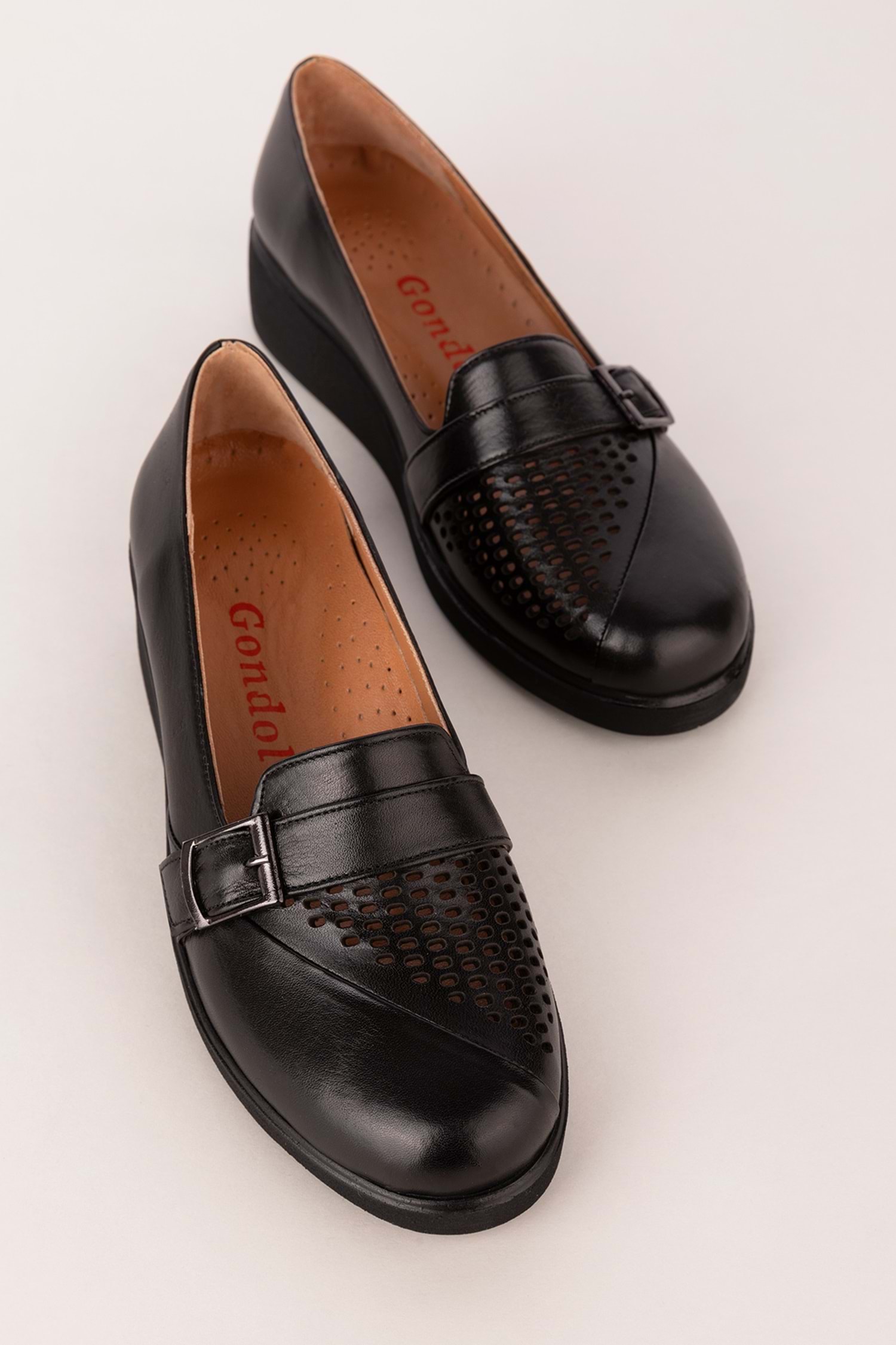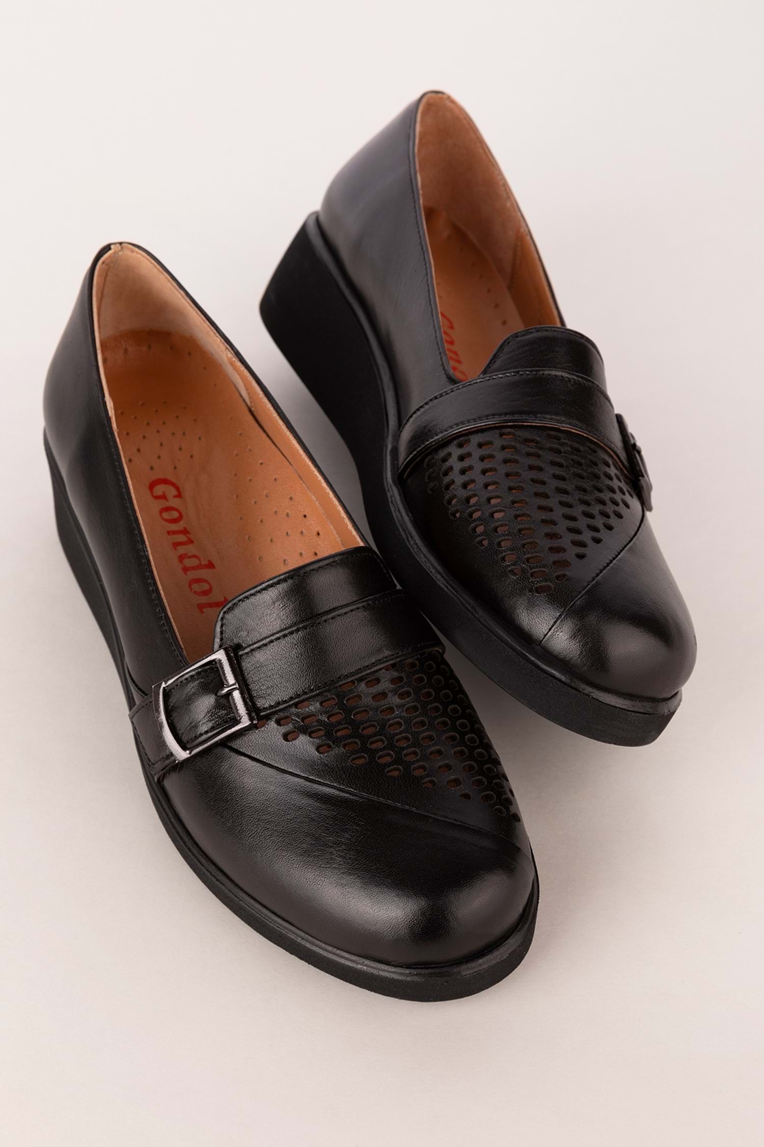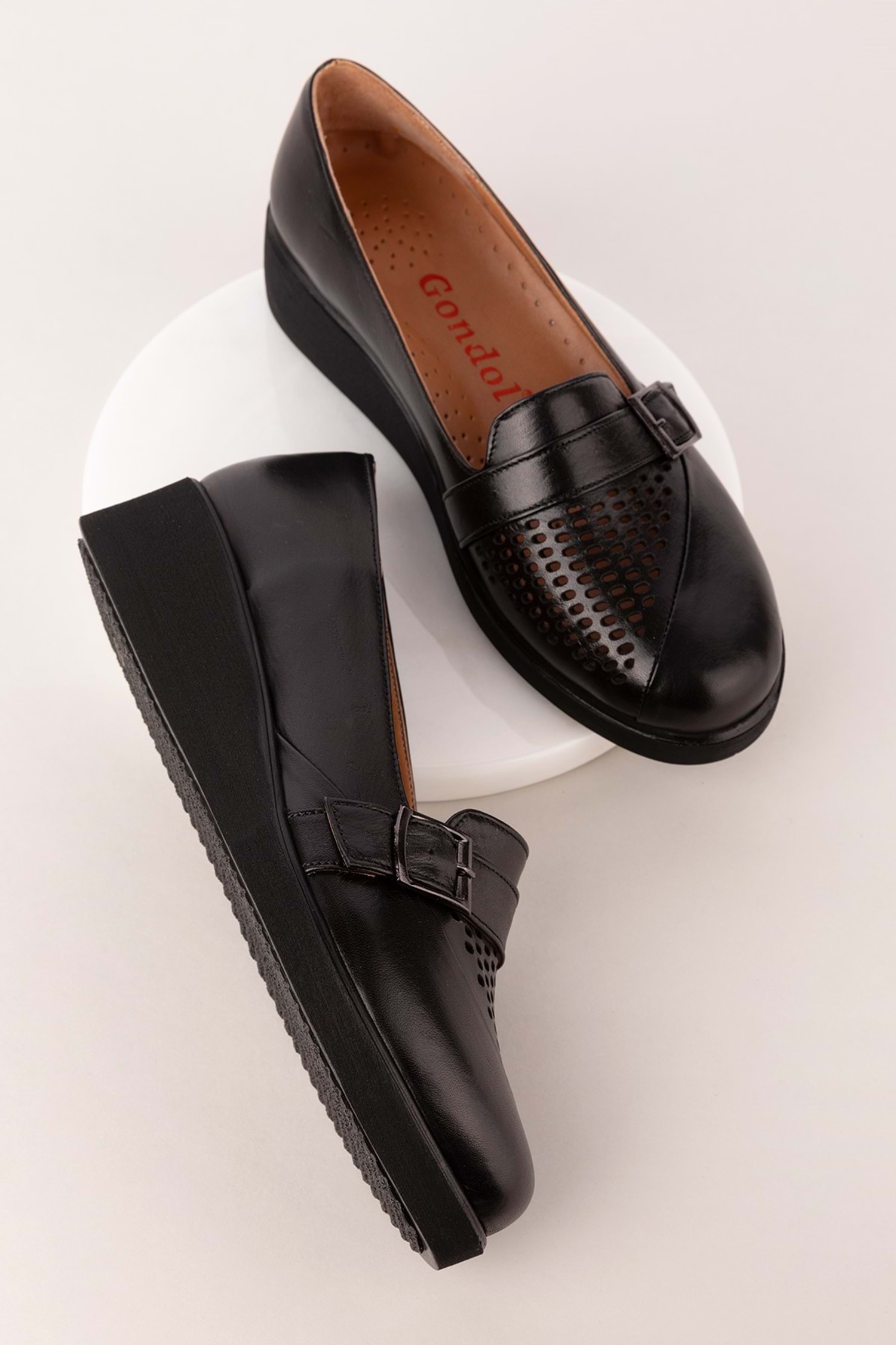 Gondol Hakiki Deri Anatomik Taban Bant Detaylı Rahat Ayakkabı mlk.5471 - Siyah - 40