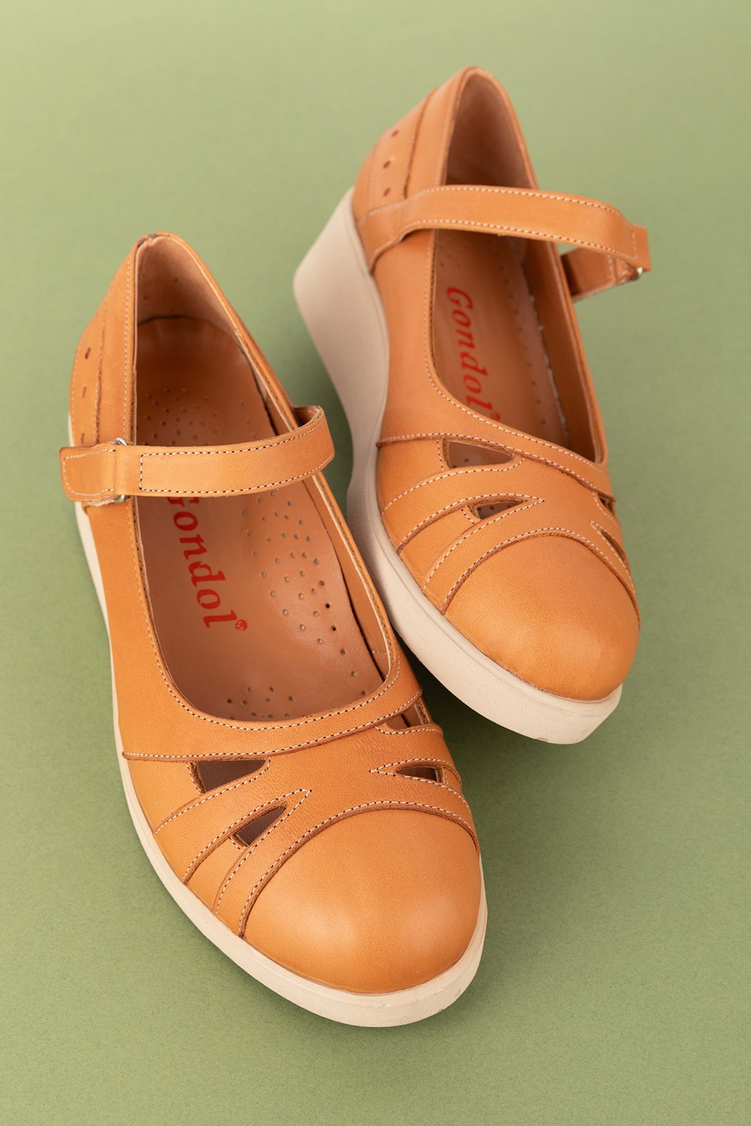 Hakiki Deri Anatomik Taban Rahat Ayakkabı Topuk Boyu 4 cm Cırtlı Kolay Giyim
