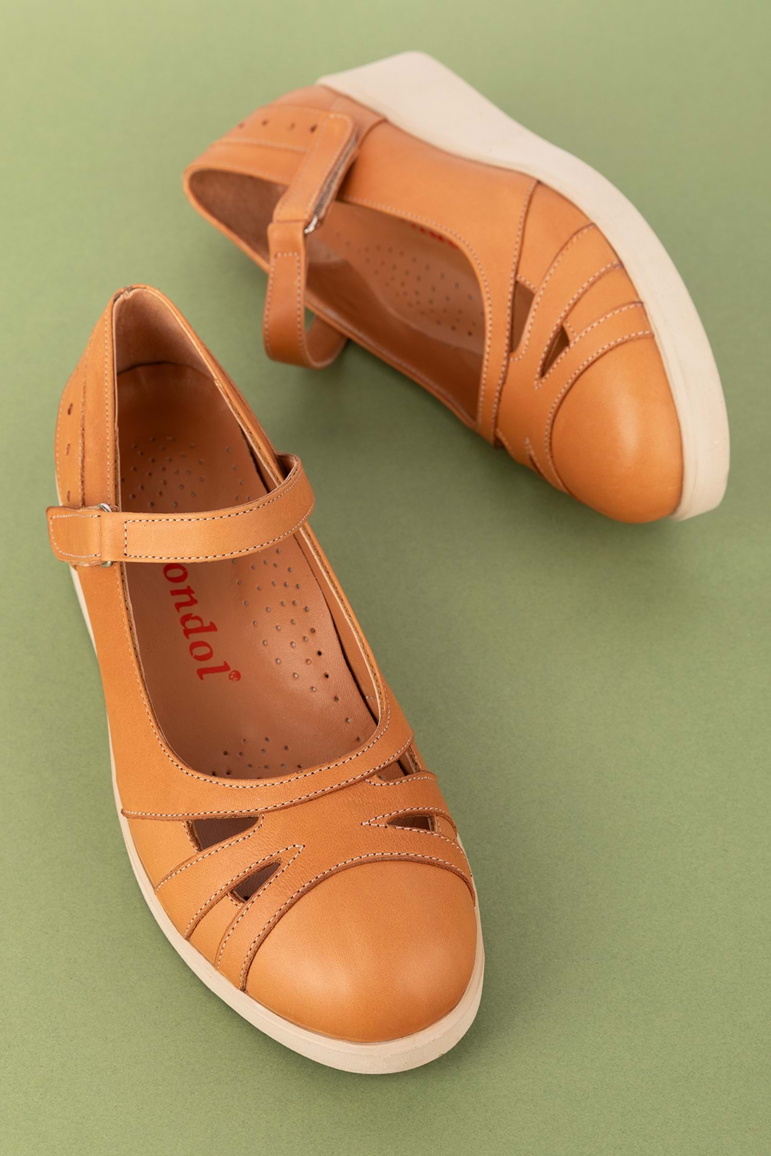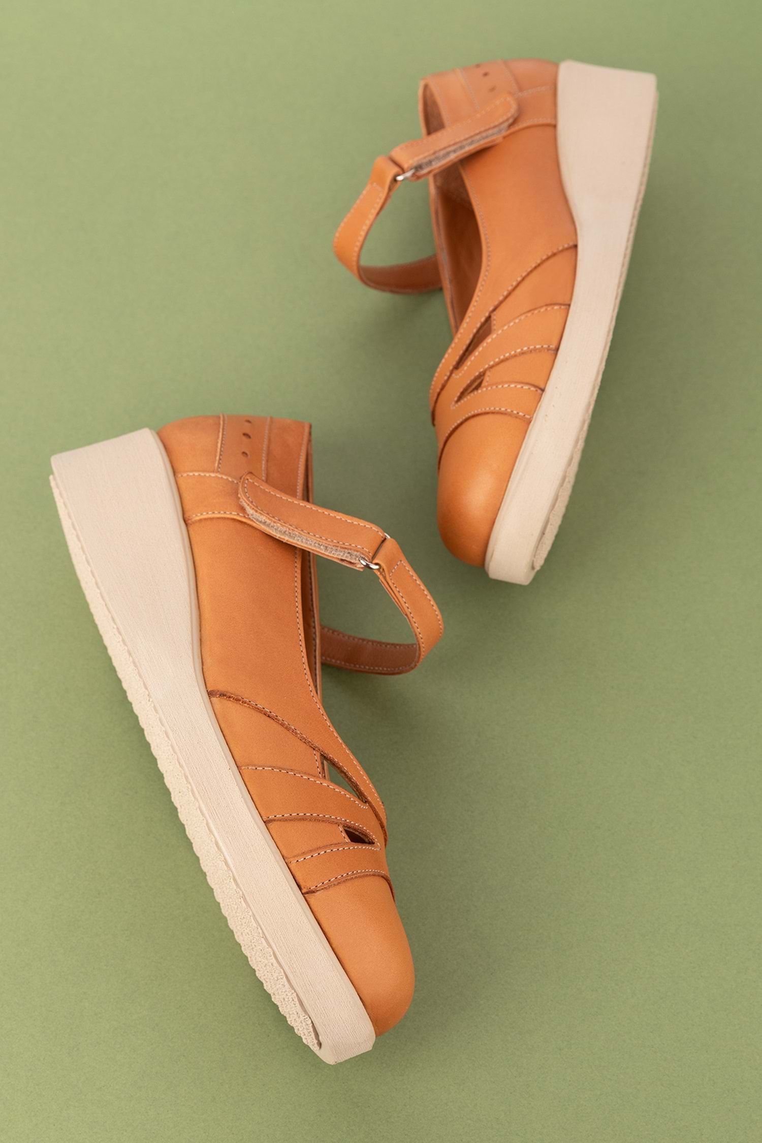 Hakiki Deri Anatomik Taban Rahat Ayakkabı Topuk Boyu 4 cm Cırtlı Kolay Giyim