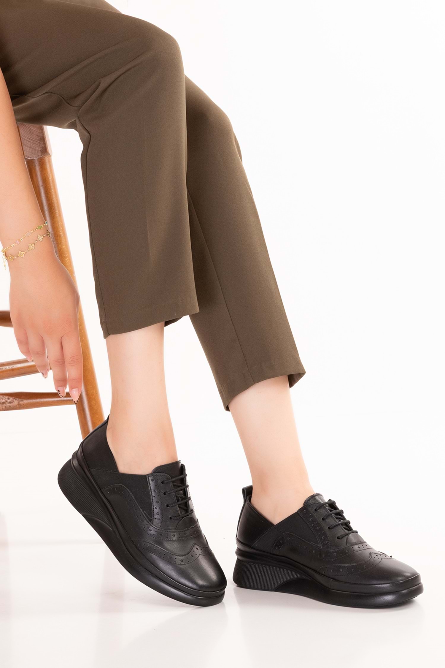 Gondol Hakiki Deri Anatomik Taban Rahat Ayakkabı elnr.3803 - Siyah - 36