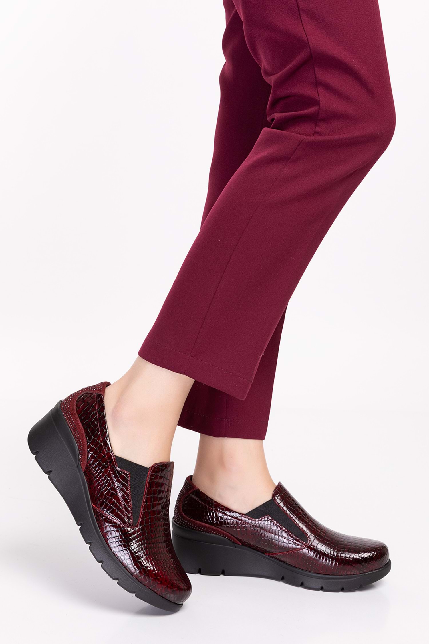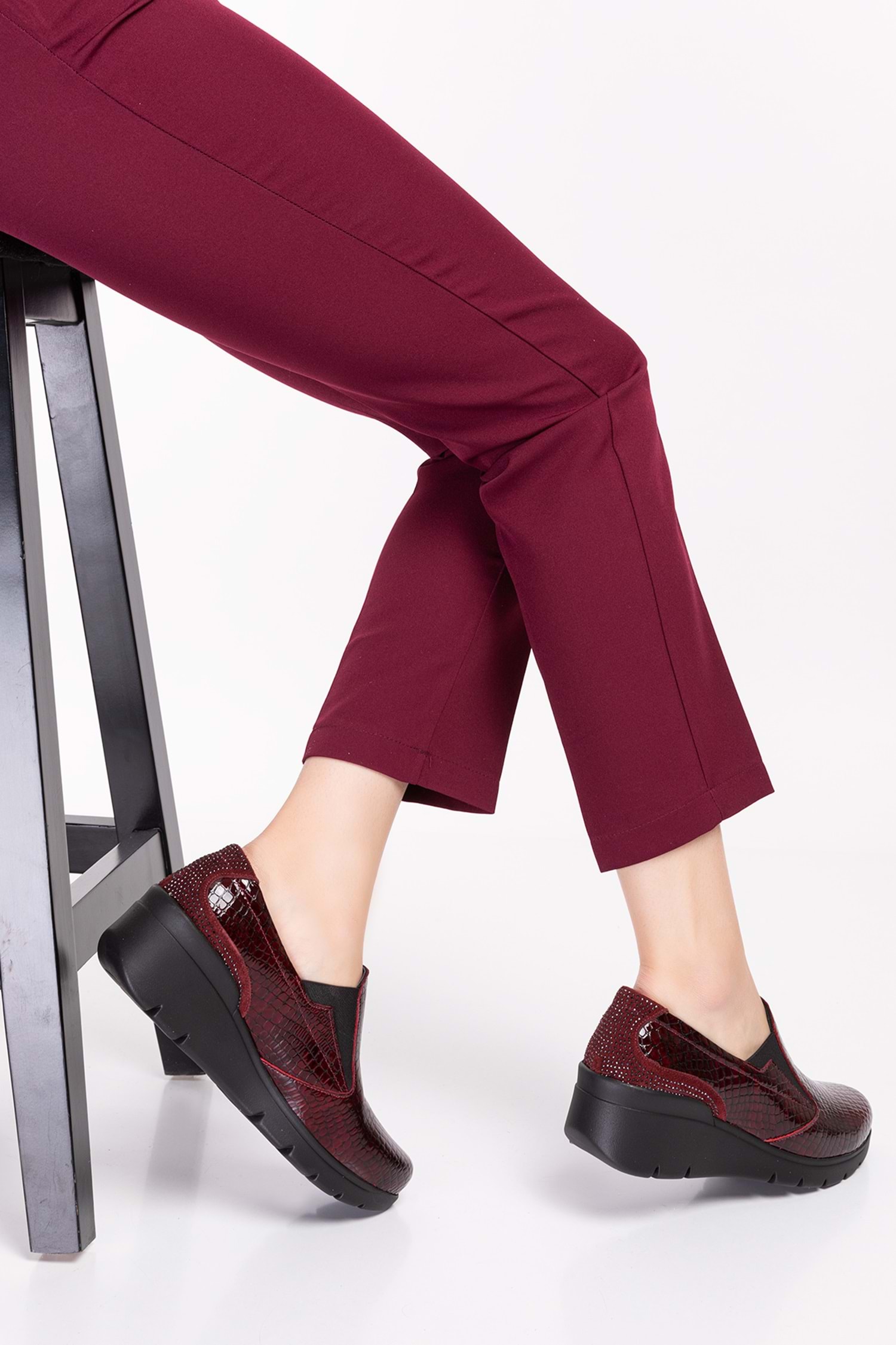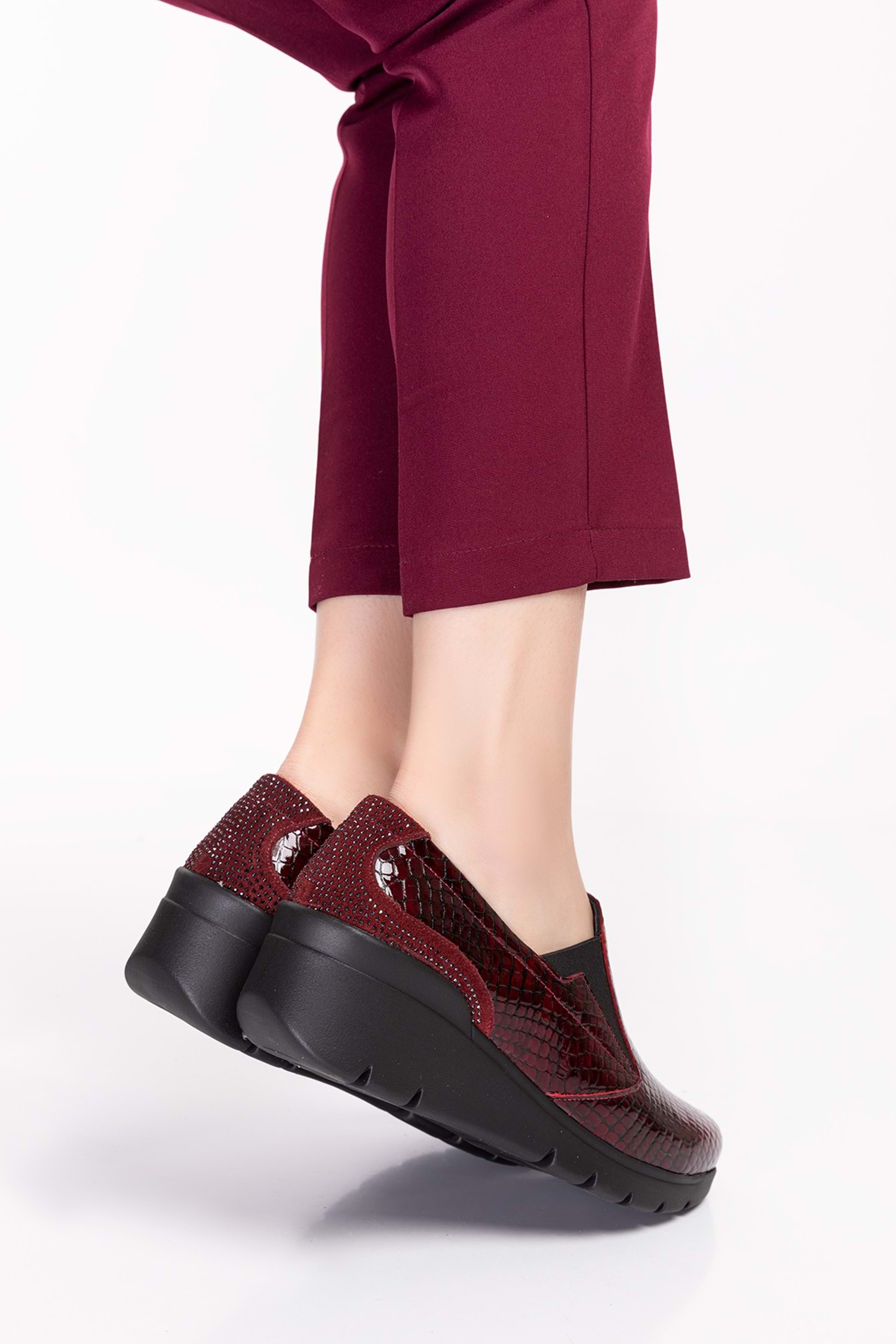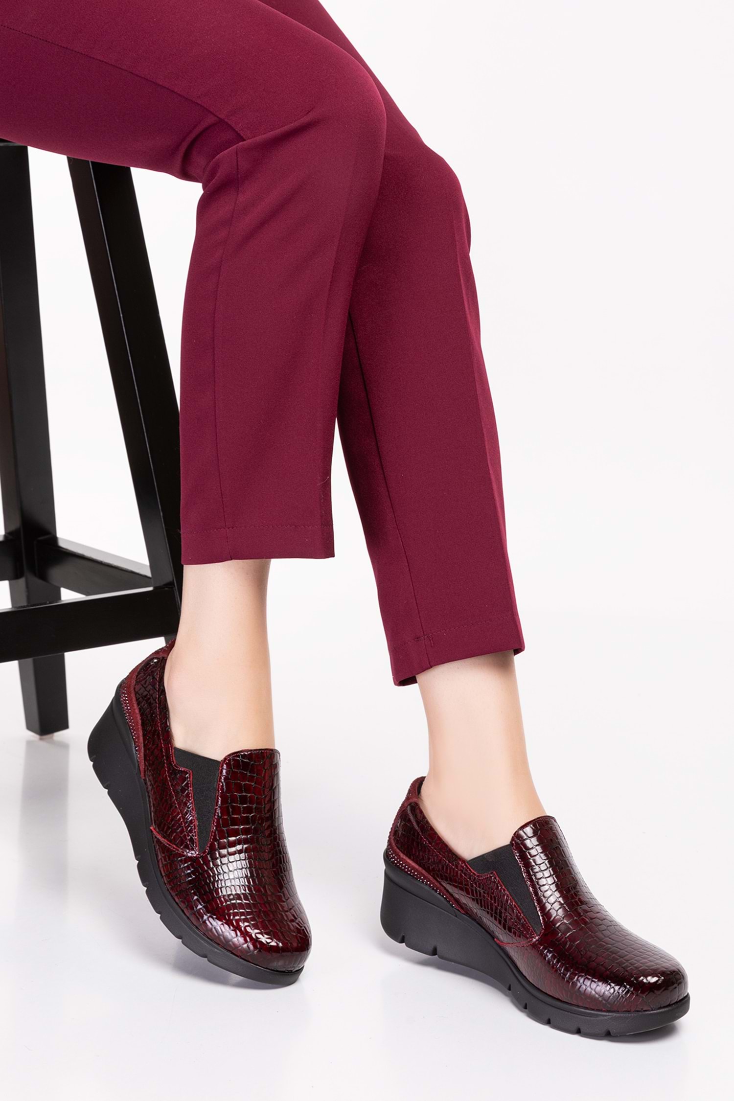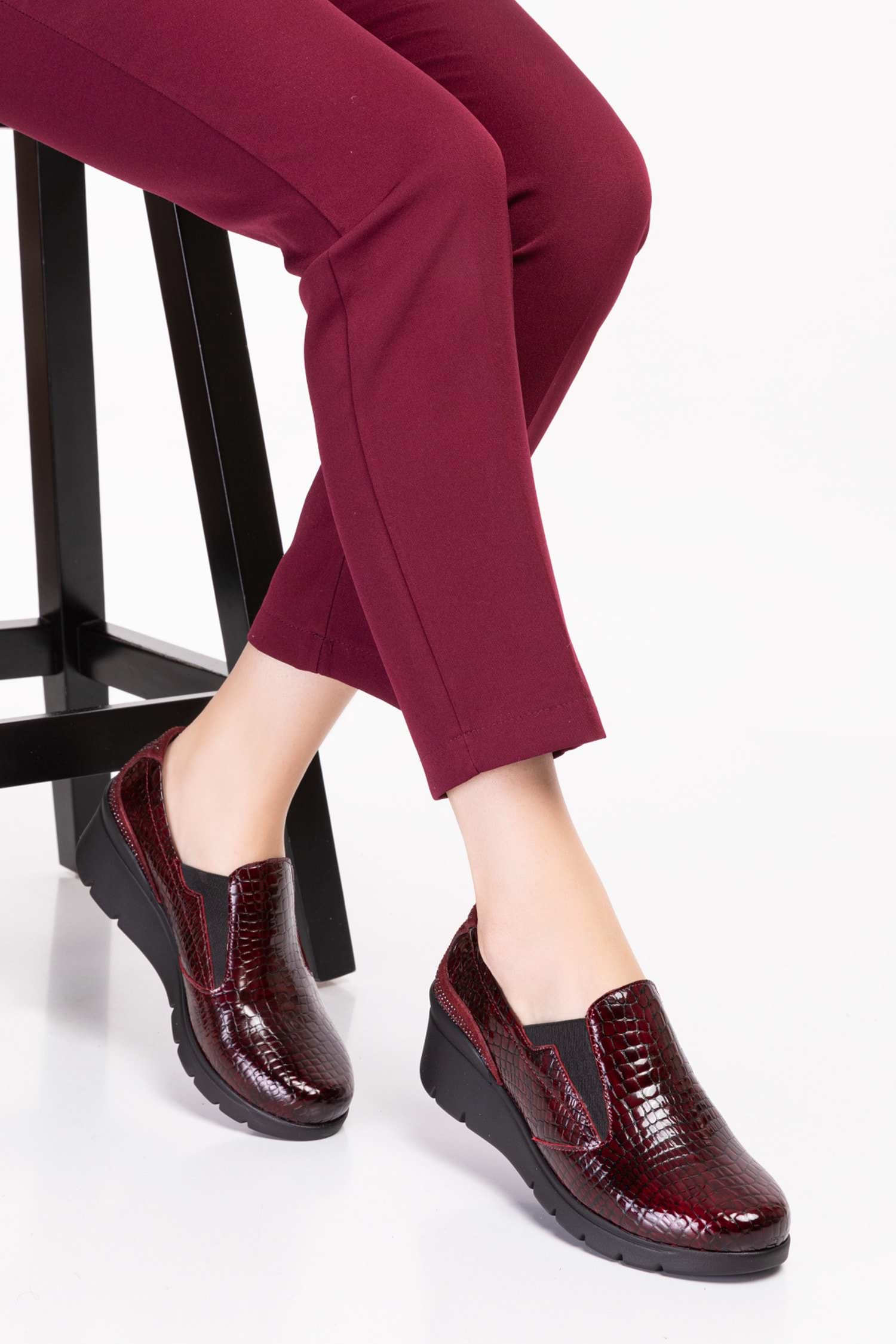 Gondol Hakiki Deri Anatomik Taban Rahat Ayakkabı esfa.4052 - Bordo Croco - 35