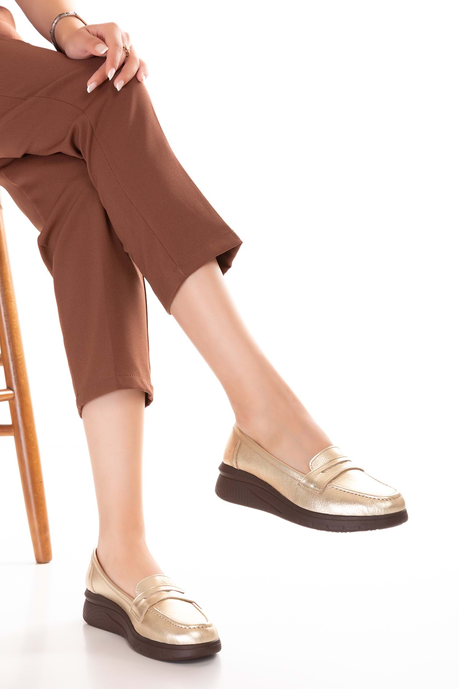 Hakiki Deri Anatomik Taban Rahat Ayakkabı Topuk Boyu 4 cm Rahat Günlük Standart Kalıp