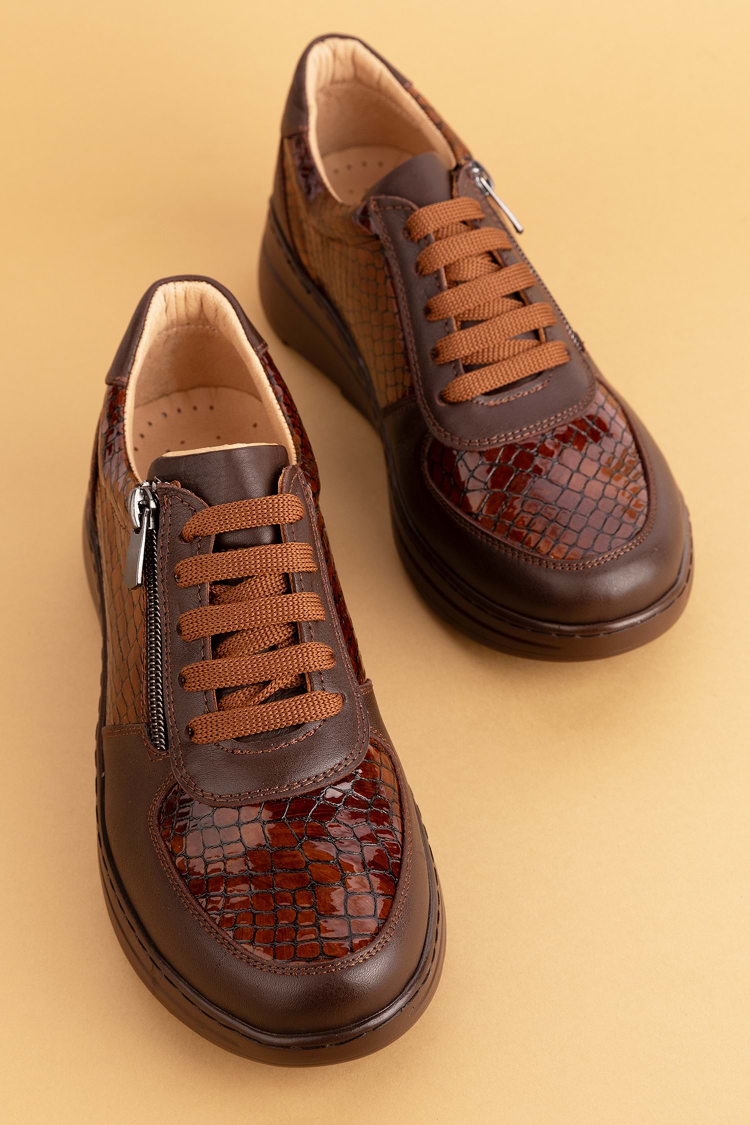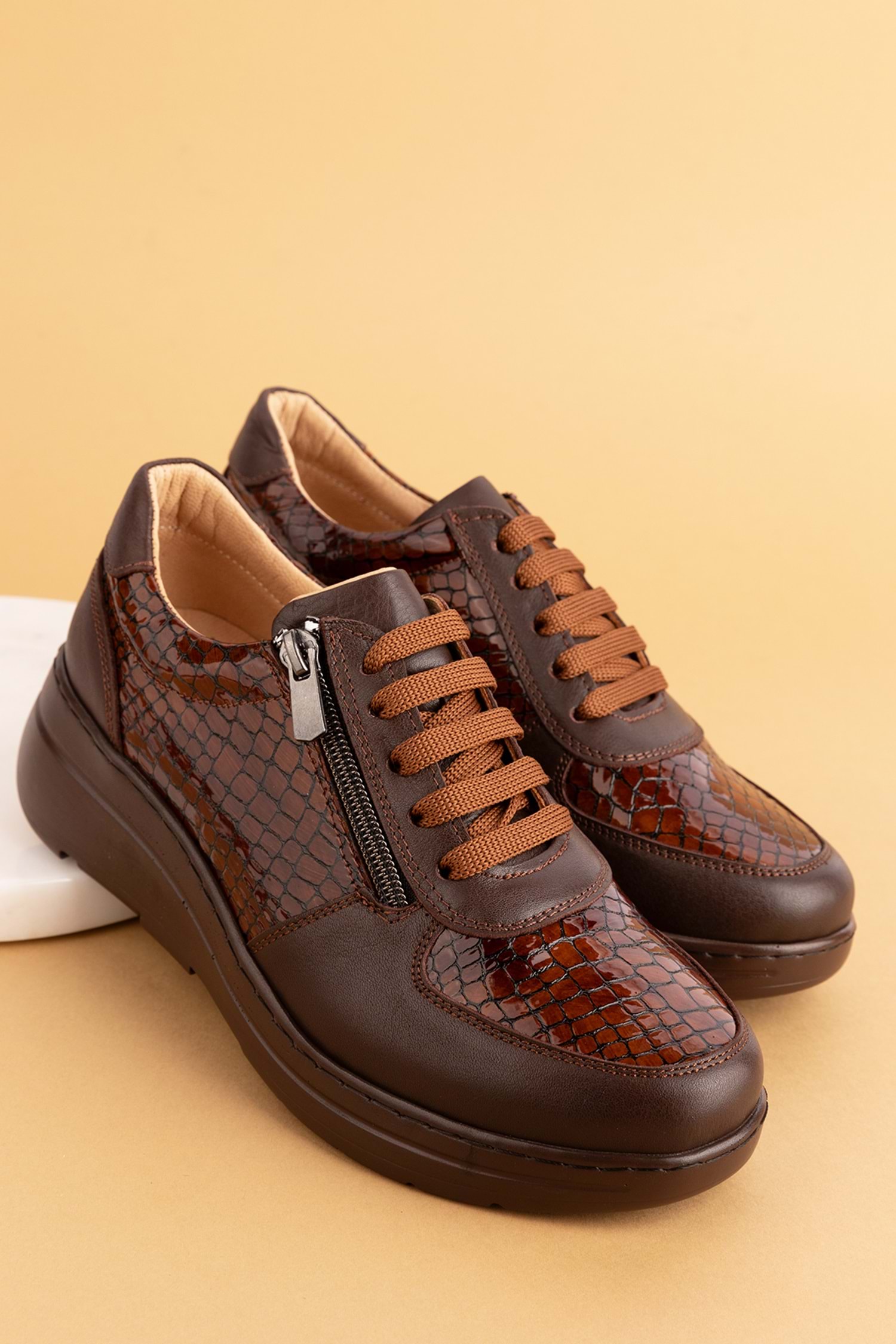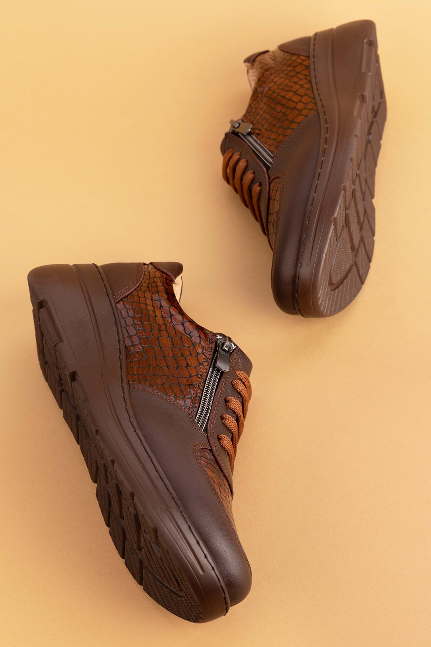 Gondol Hakiki Deri Anatomik Taban Rahat Fermuarlı Ayakkabı ndr.3802 - Kahve Croco - 36