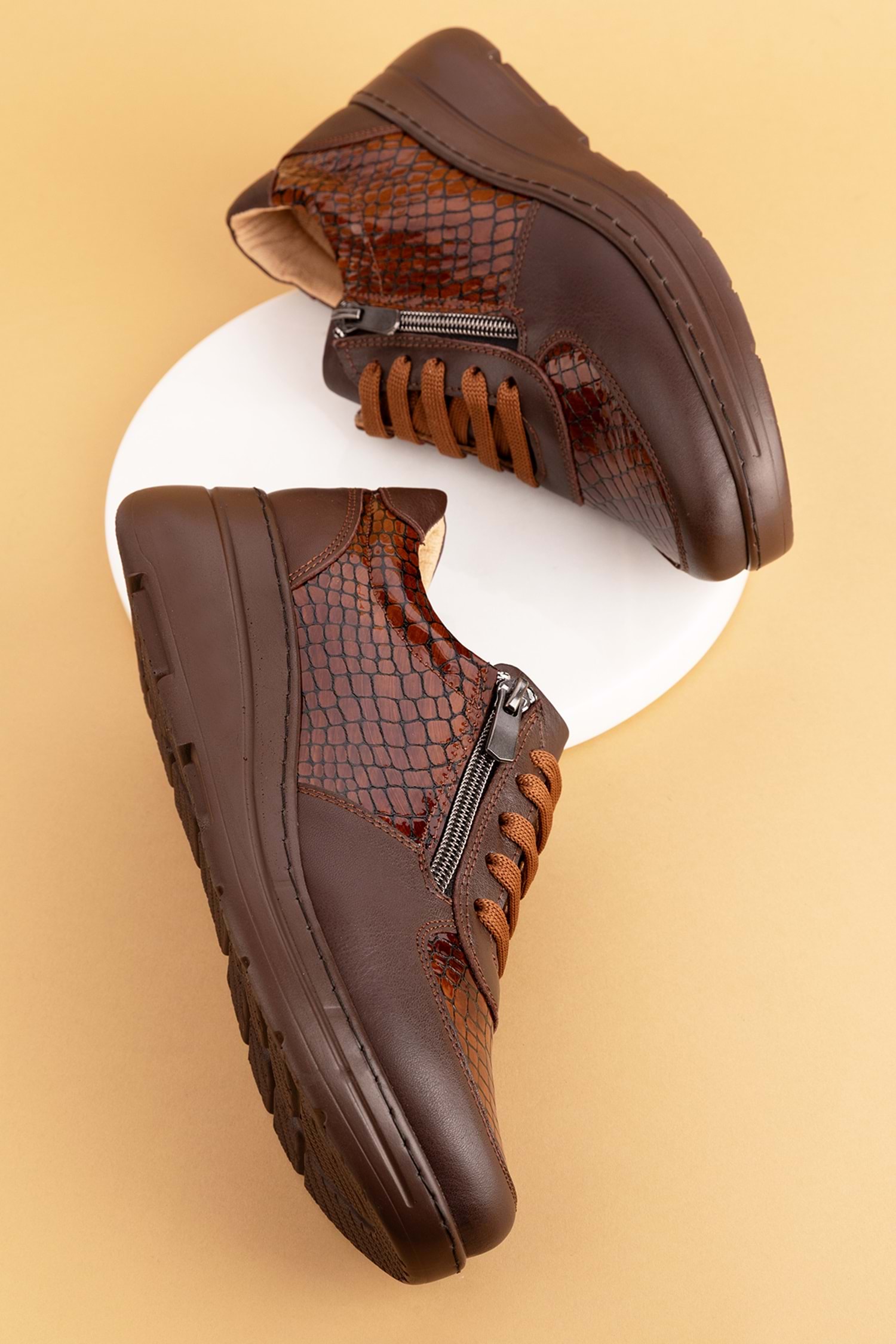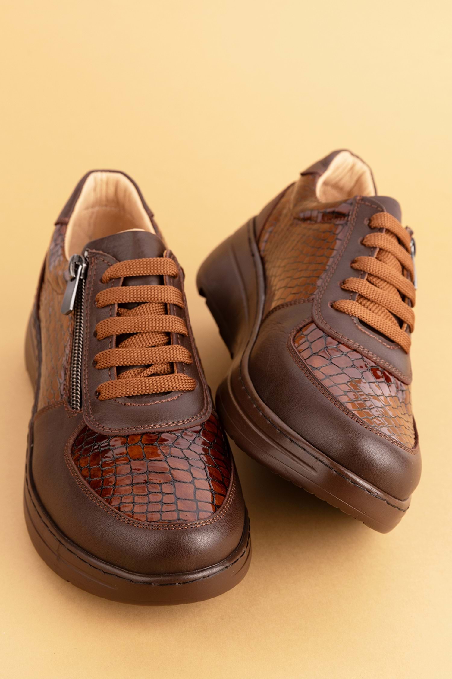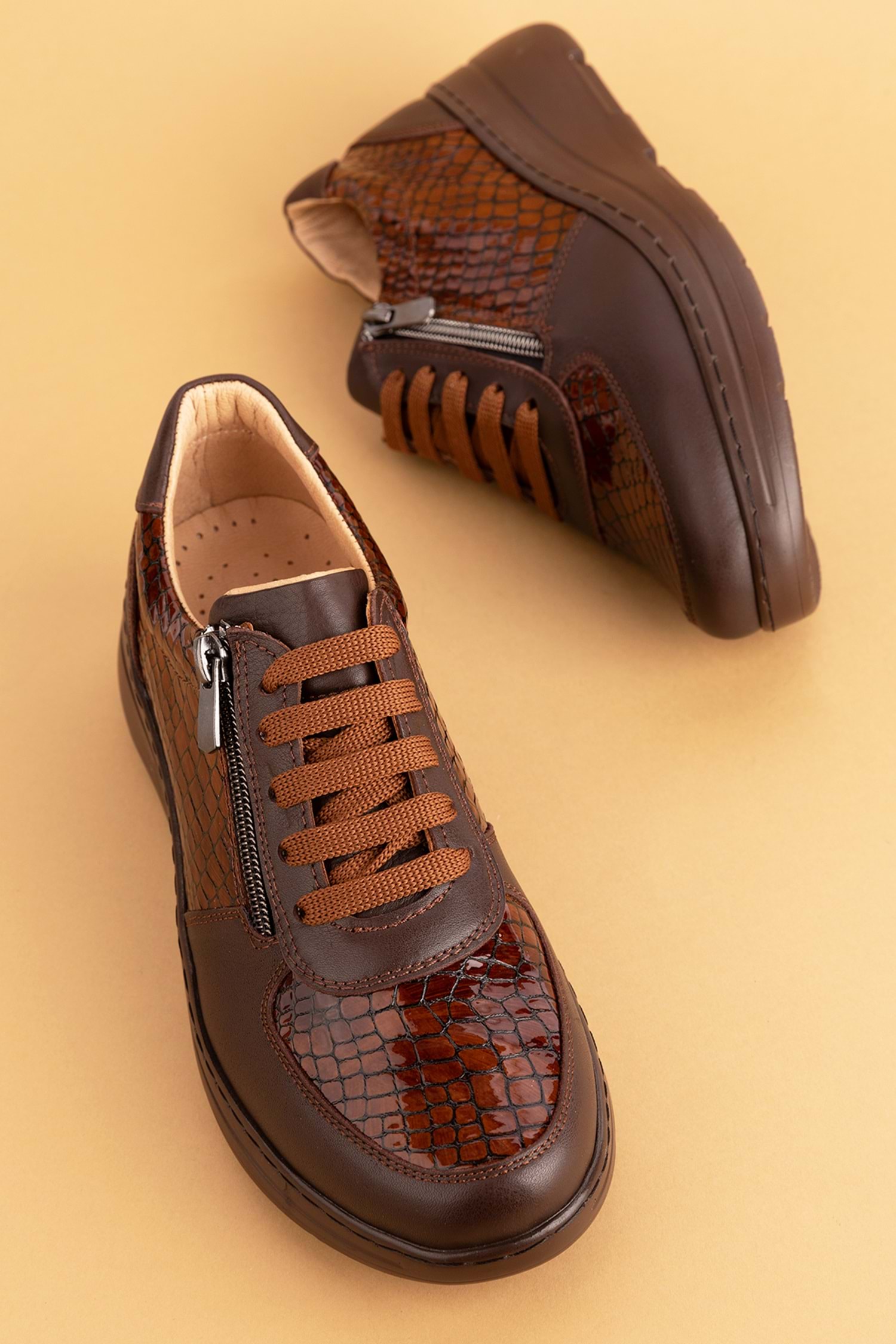 Gondol Hakiki Deri Anatomik Taban Rahat Fermuarlı Ayakkabı ndr.3802 - Kahve Croco - 40
