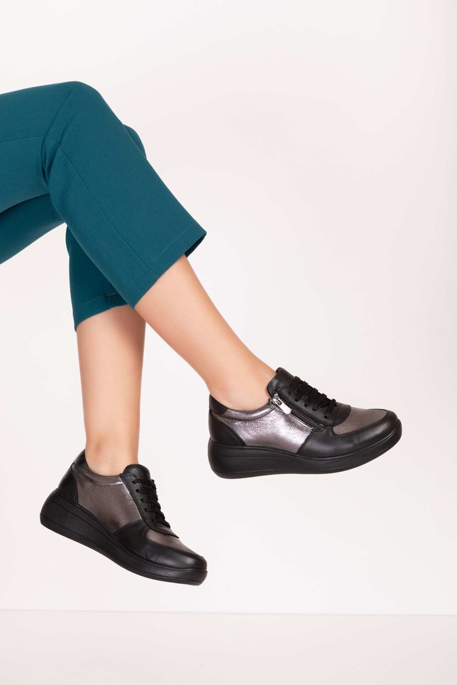 Hakiki Deri Anatomik Taban Rahat Ayakkabı Taraklı ve Şiş Ayaklar için Uygundur. Topuk Boyu 4 cm Fermuarlı Kolay Giyim