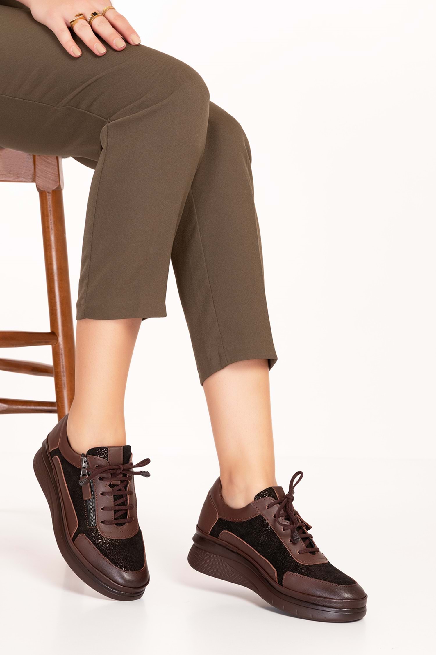 Hakiki Deri Anatomik Taban Rahat Ayakkabı Taraklı ve Şiş Ayaklar için Uygundur. Topuk Boyu 4 cm Fermuarlı Kolay Giyim