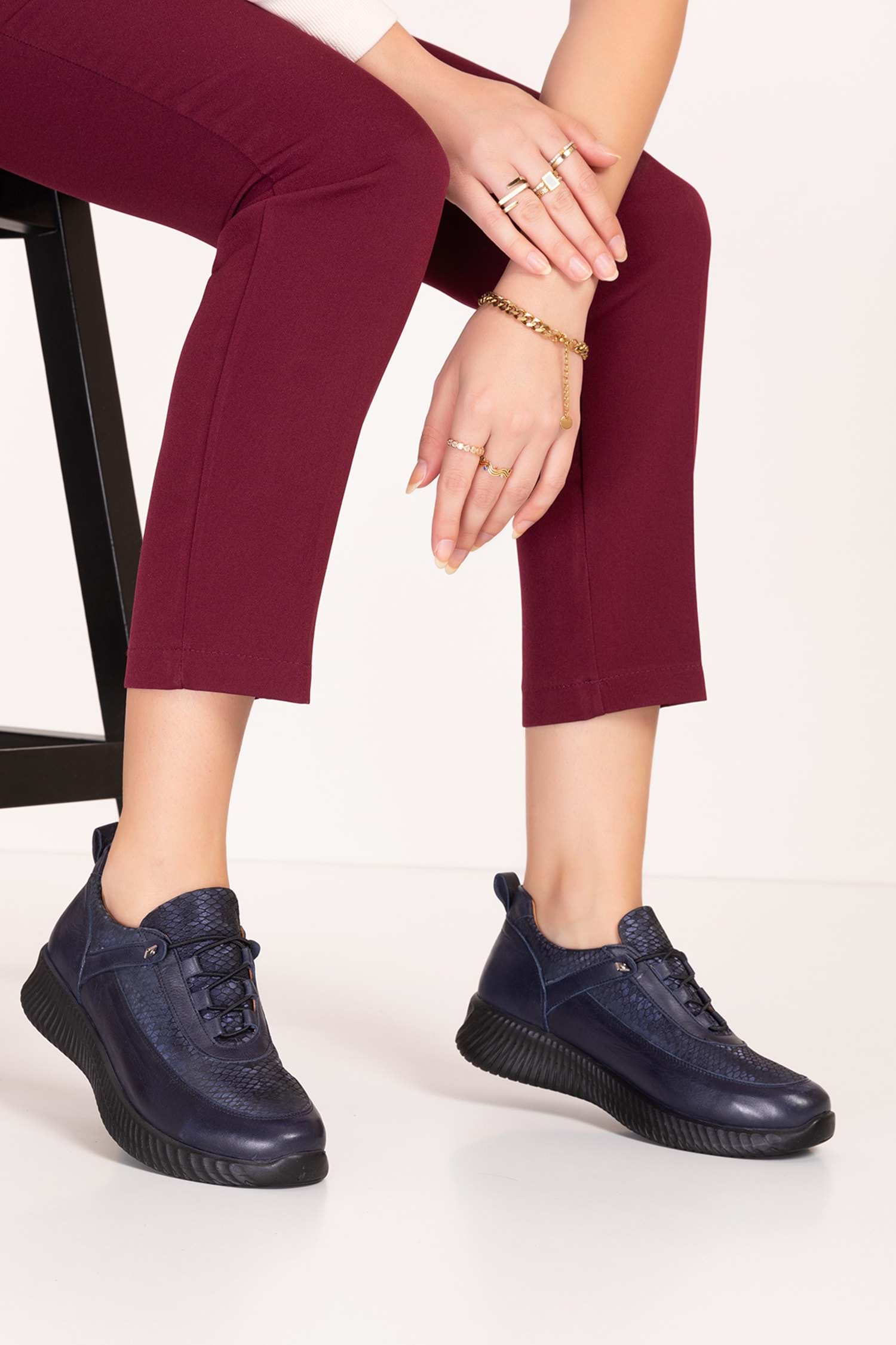 Hakiki Deri Anatomik Taban Rahat Ayakkabı Taraklı ve Şiş Ayaklar için Uygundur. Topuk Boyu 4 cm Lastik Bağcıklı Rahat Günlük Standart Kalıp