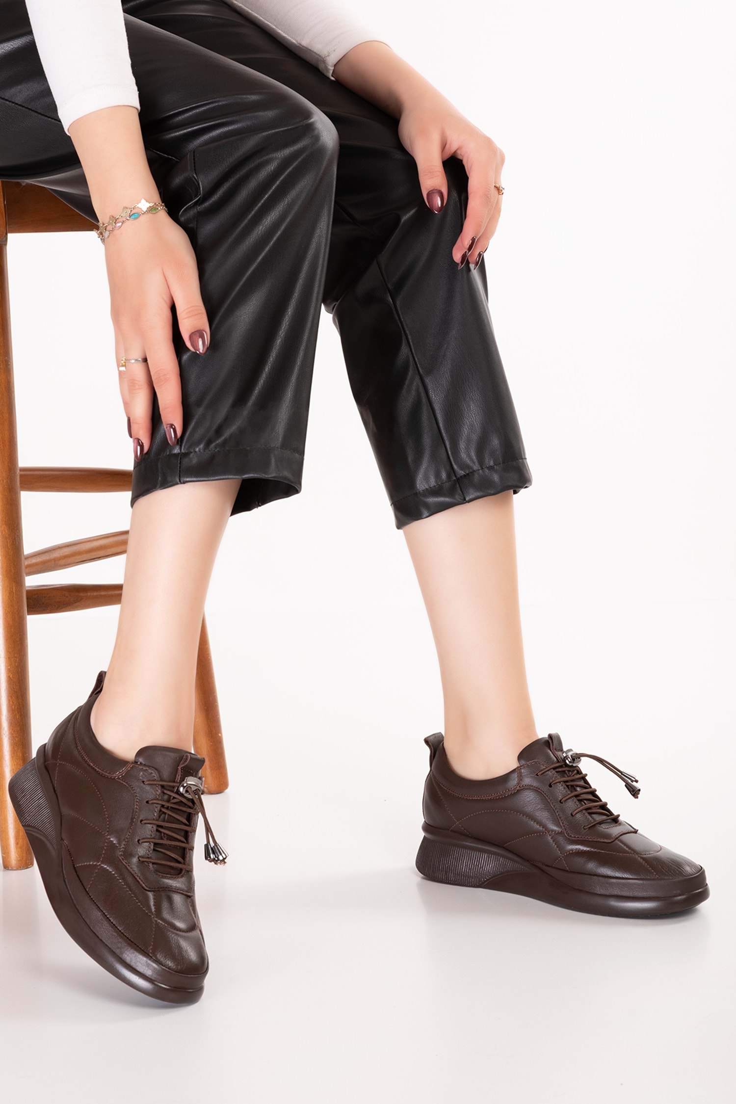 Hakiki Deri Anatomik Taban Rahat Ayakkabı Taraklı ve Şiş Ayaklar için Uygundur. Topuk Boyu 4 cm Lastik Bağcıklı