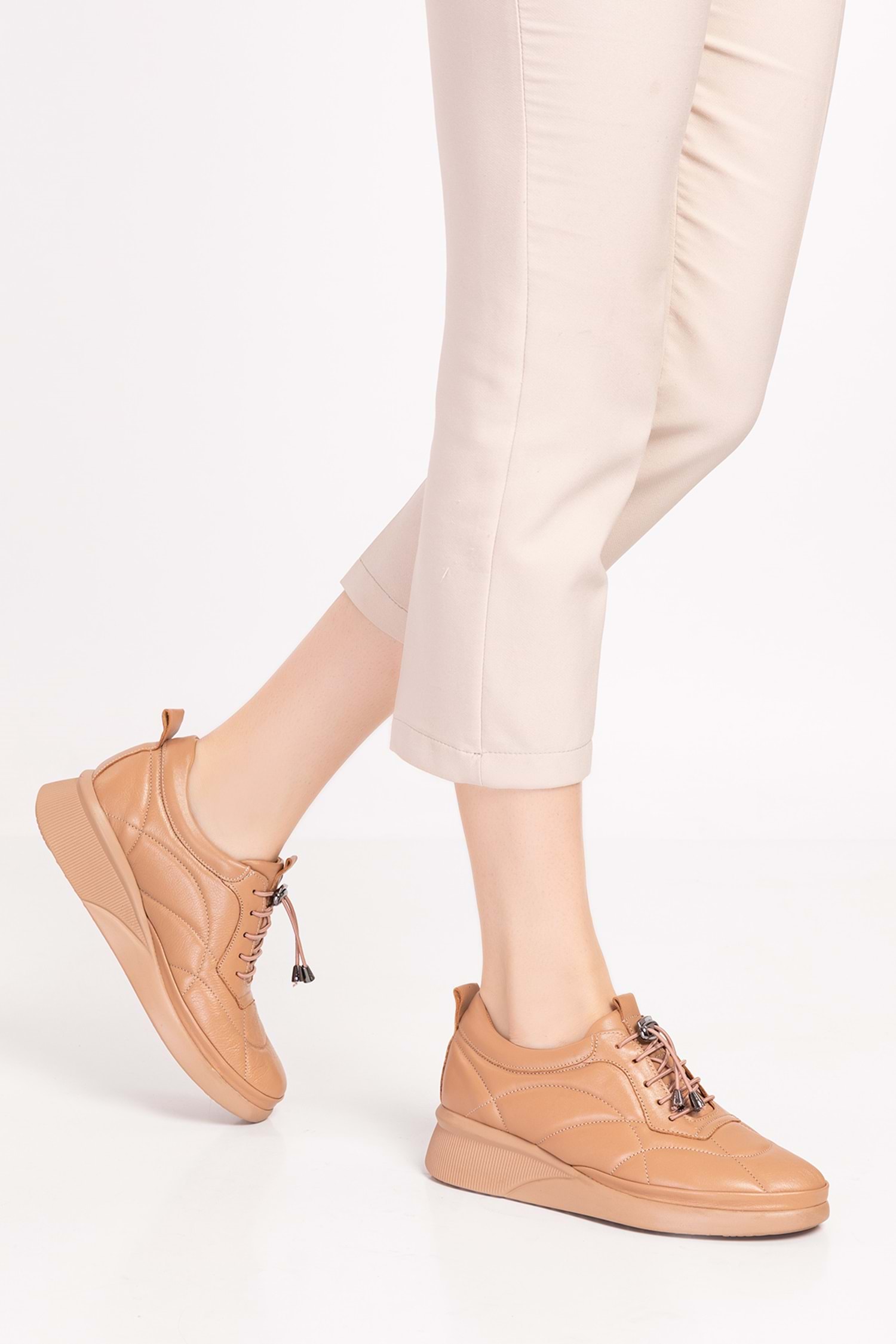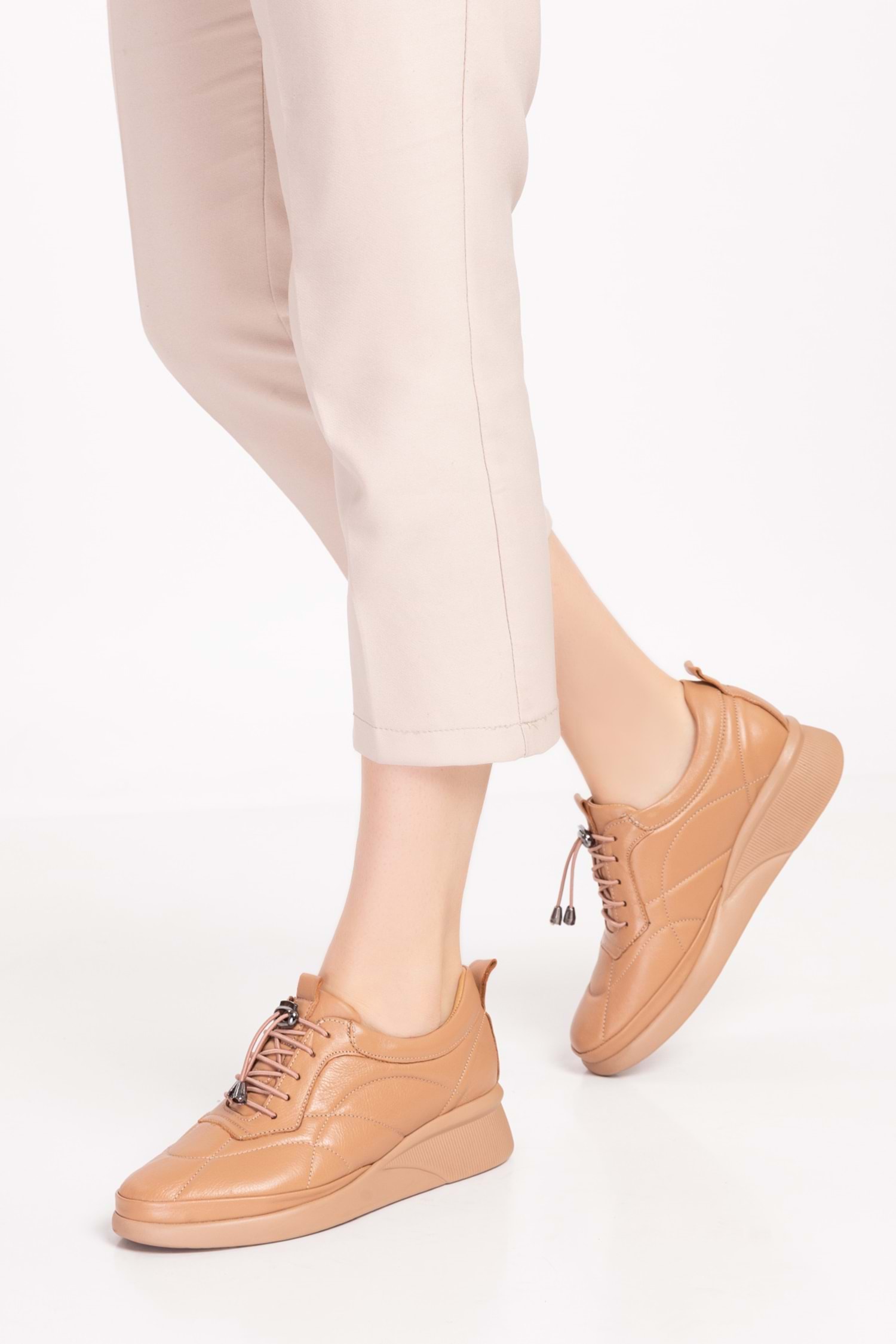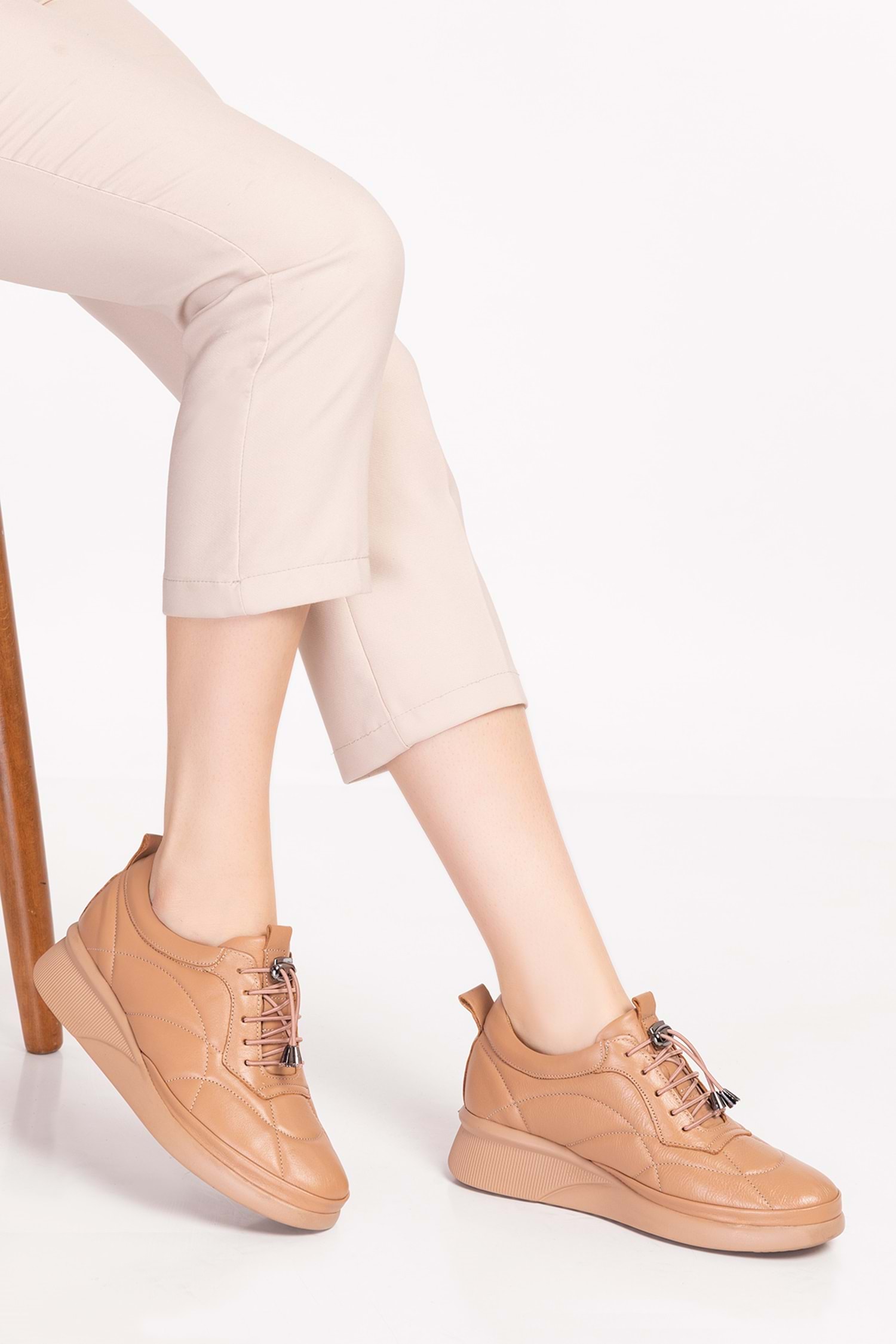 Hakiki Deri Anatomik Taban Rahat Ayakkabı Taraklı ve Şiş Ayaklar için Uygundur. Topuk Boyu 4 cm Lastik Bağcıklı