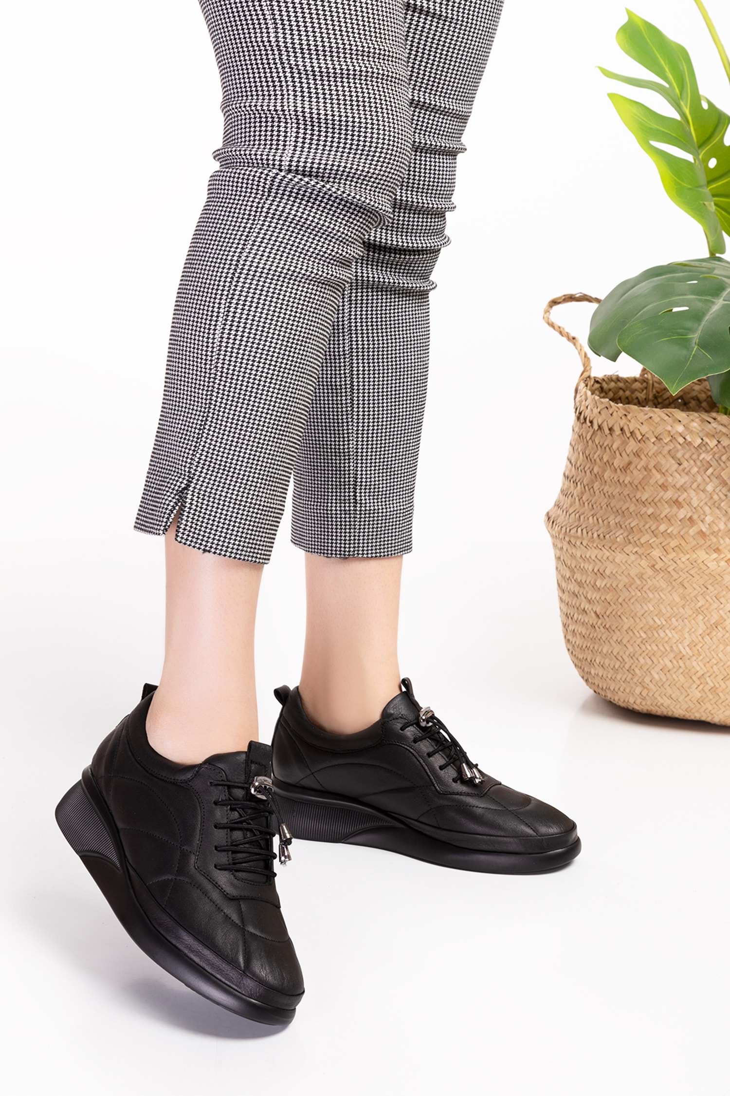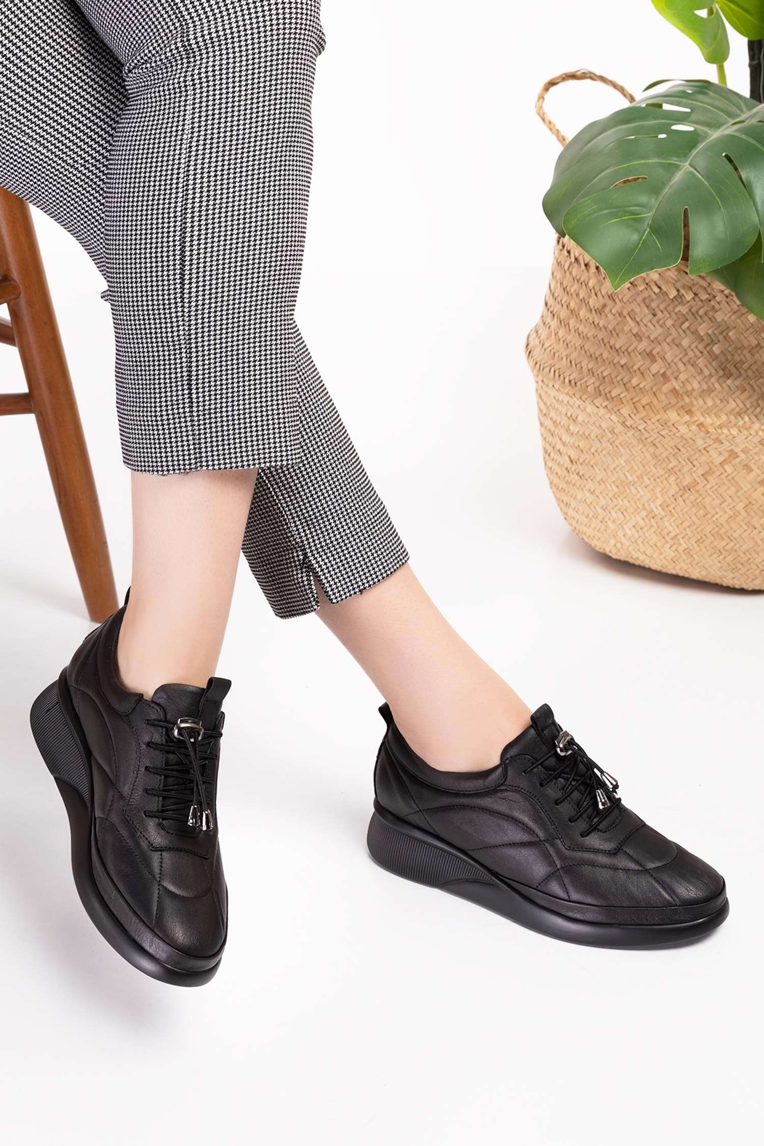 Hakiki Deri Anatomik Taban Rahat Ayakkabı Taraklı ve Şiş Ayaklar için Uygundur. Topuk Boyu 4 cm Lastik Bağcıklı