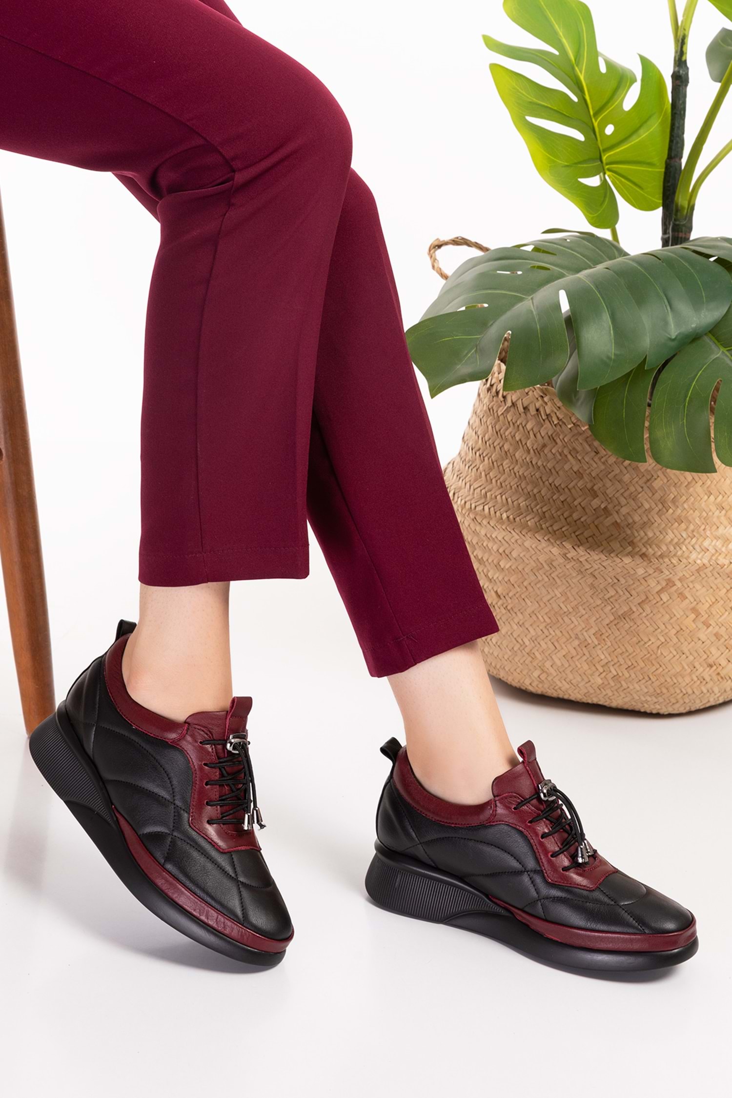 Hakiki Deri Anatomik Taban Rahat Ayakkabı Taraklı ve Şiş Ayaklar için Uygundur. Topuk Boyu 4 cm Lastik Bağcıklı