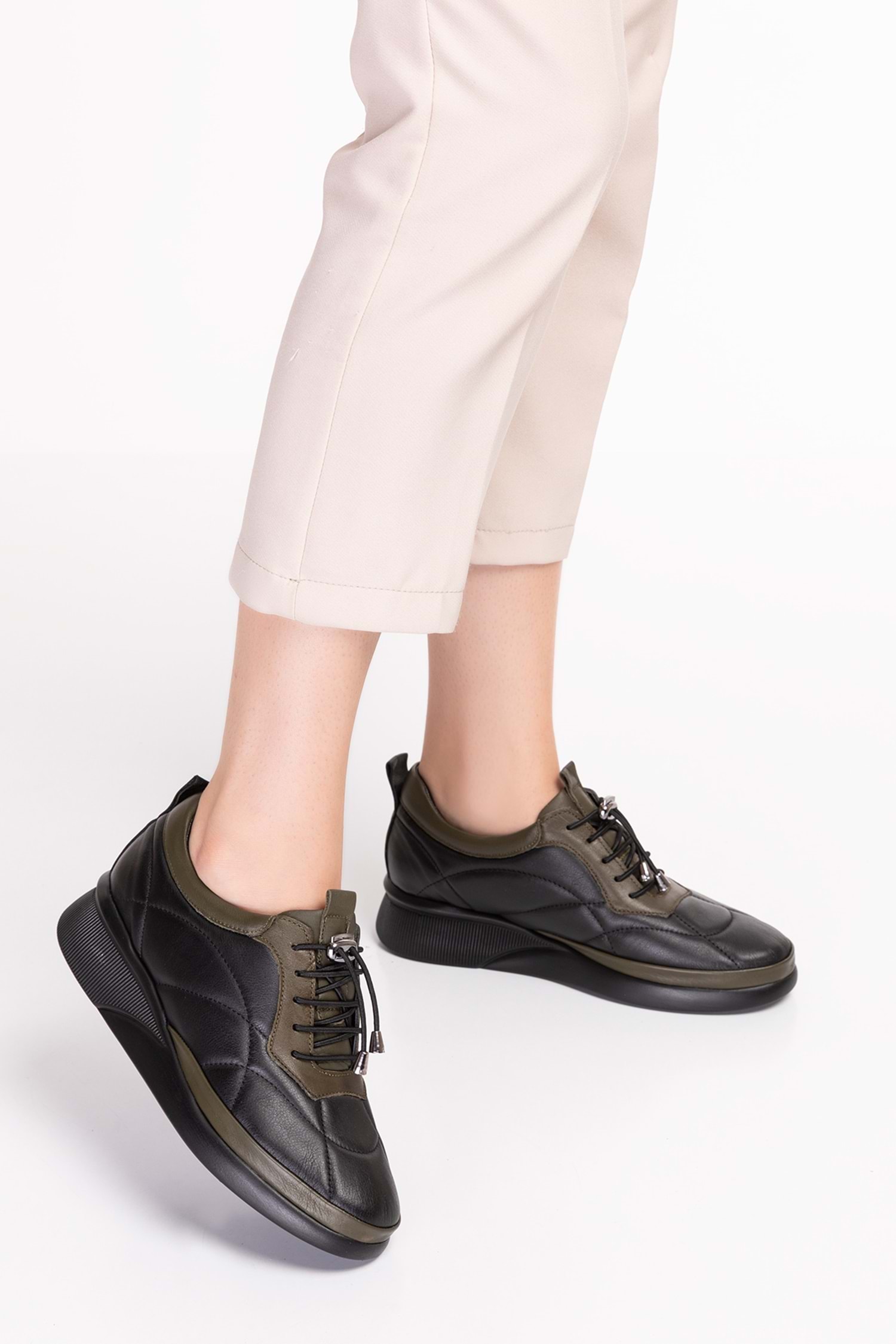 Gondol Hakiki Deri Anatomik Taban Rahat Lastik Bağcıklı Ayakkabı ndr.5506 - Siyah-Haki - 36