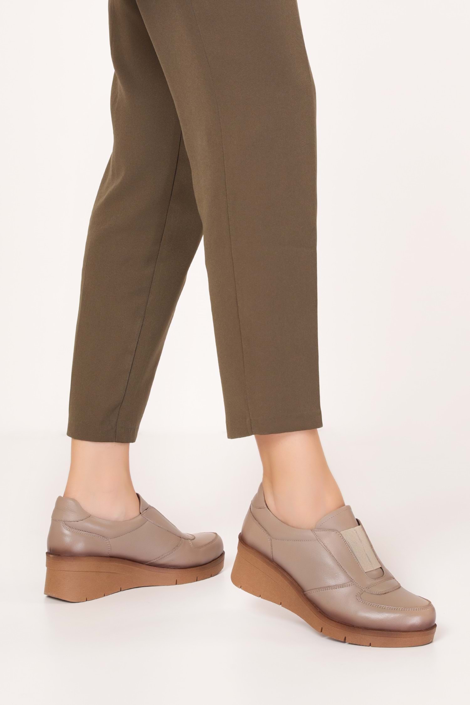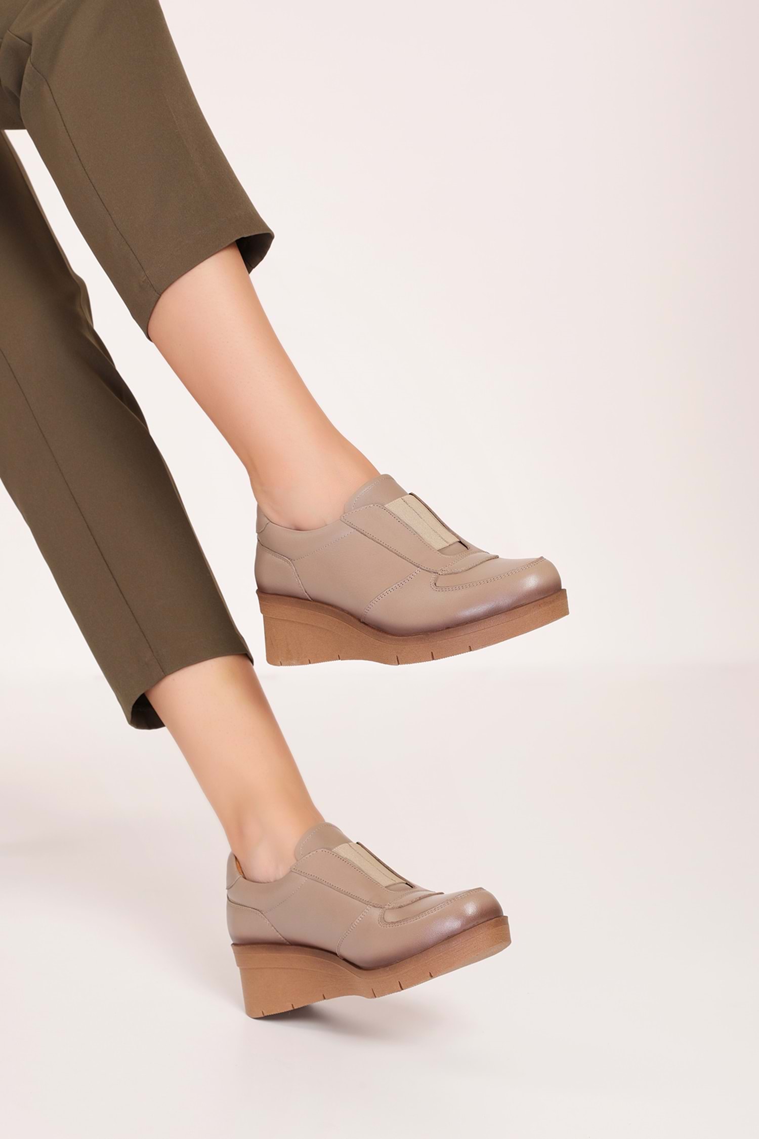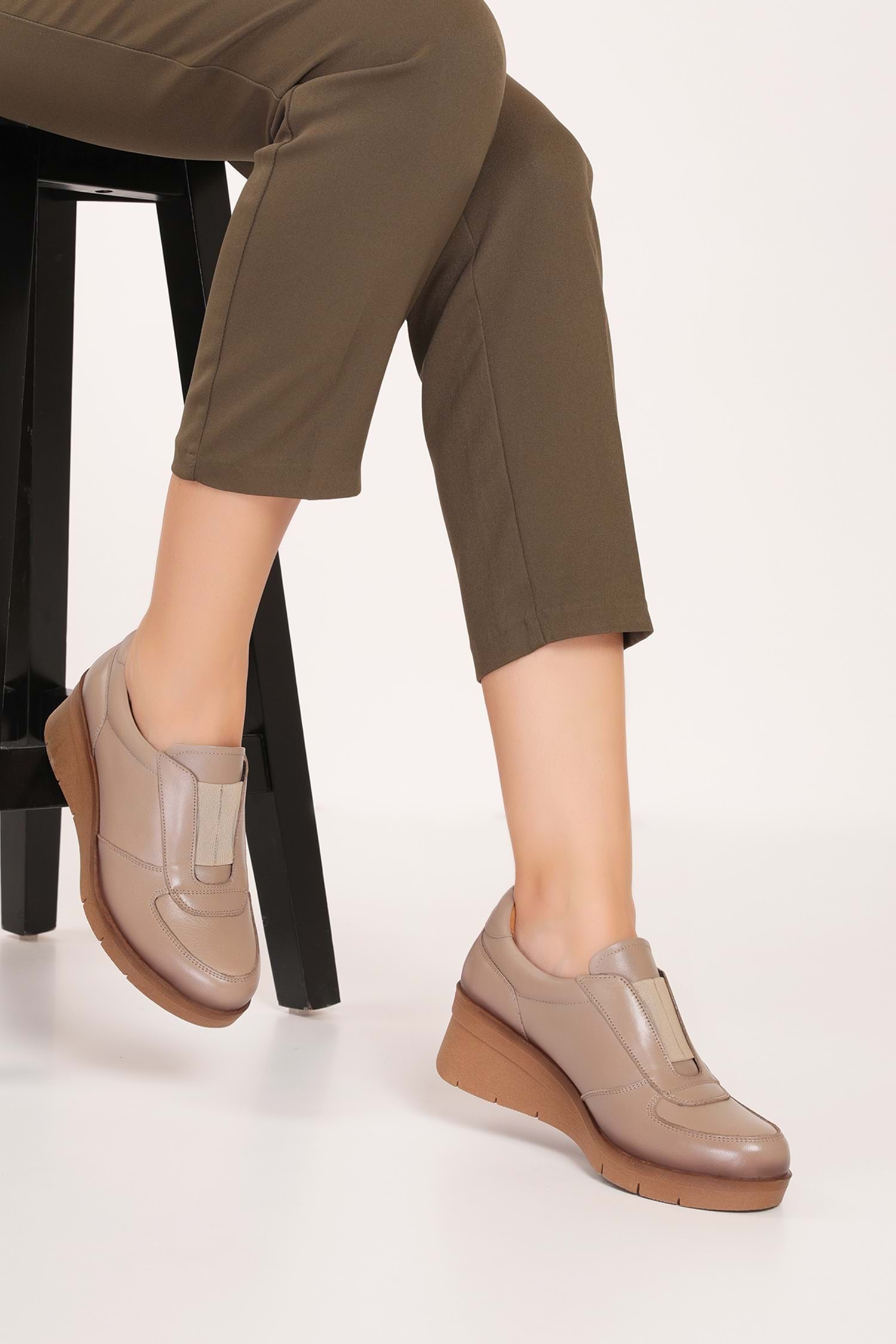 Gondol Hakiki Deri Anatomik Taban Rahat Lastik Detaylı Ayakkabı elnr.5866 - Vizon - 36