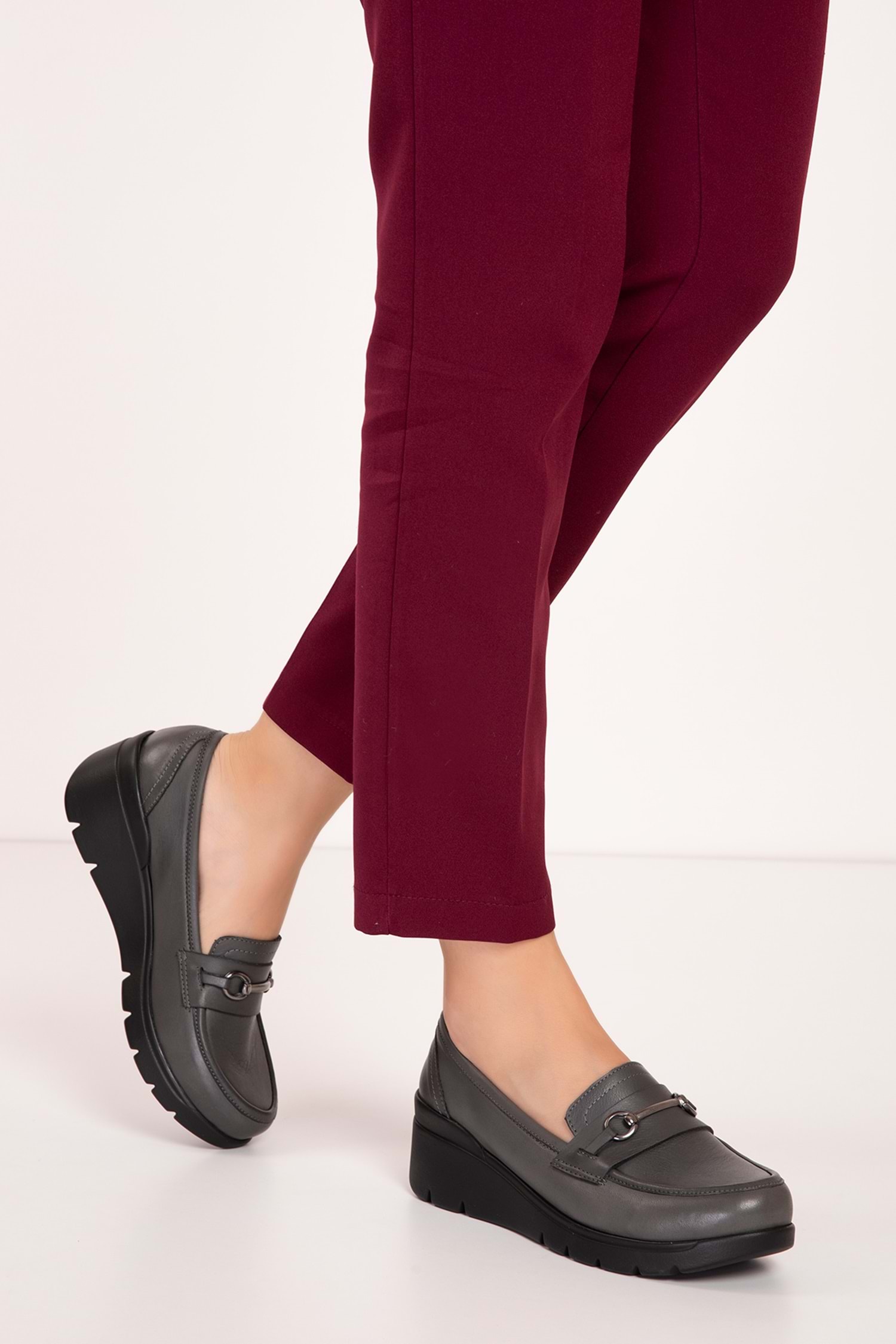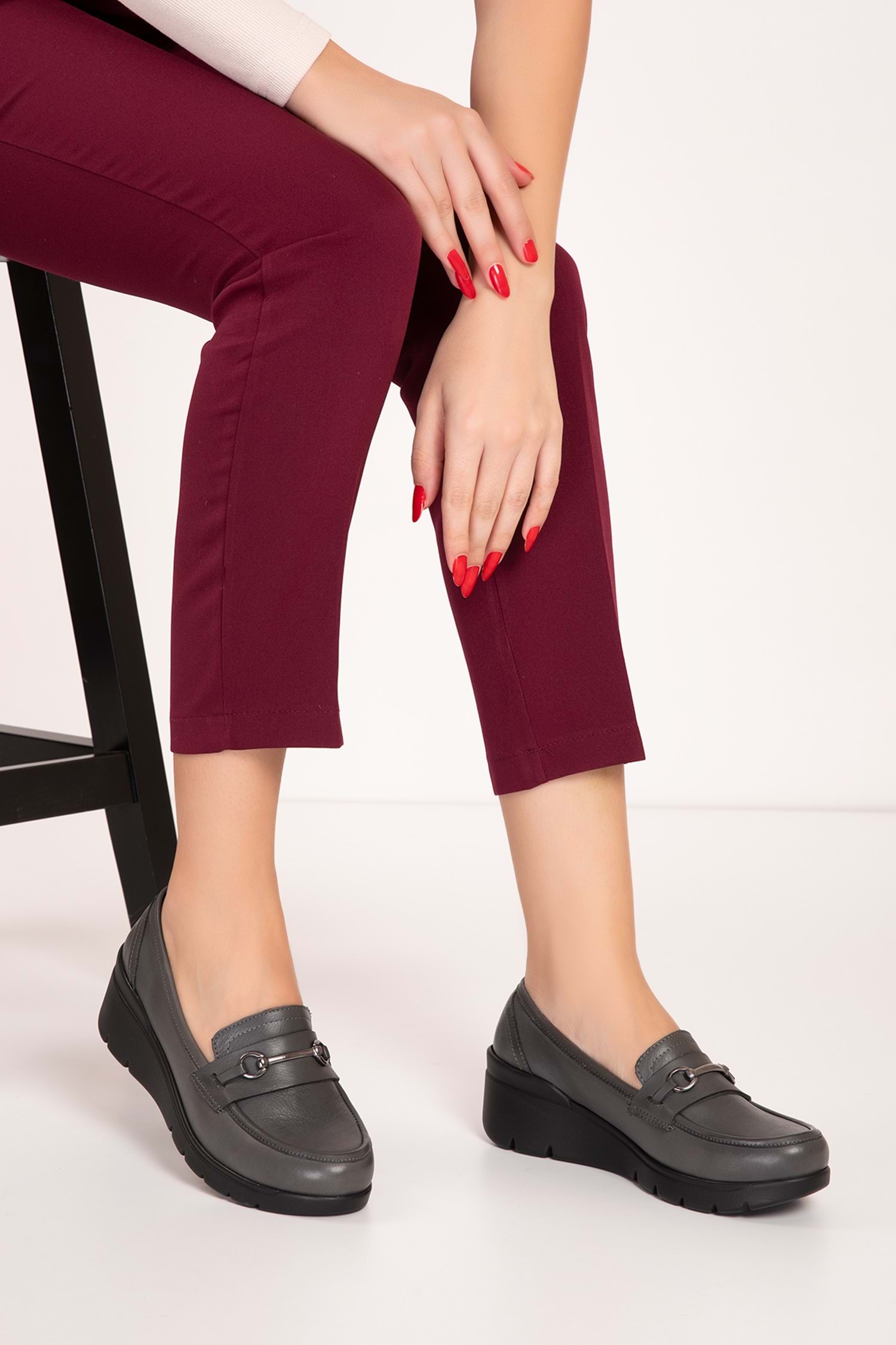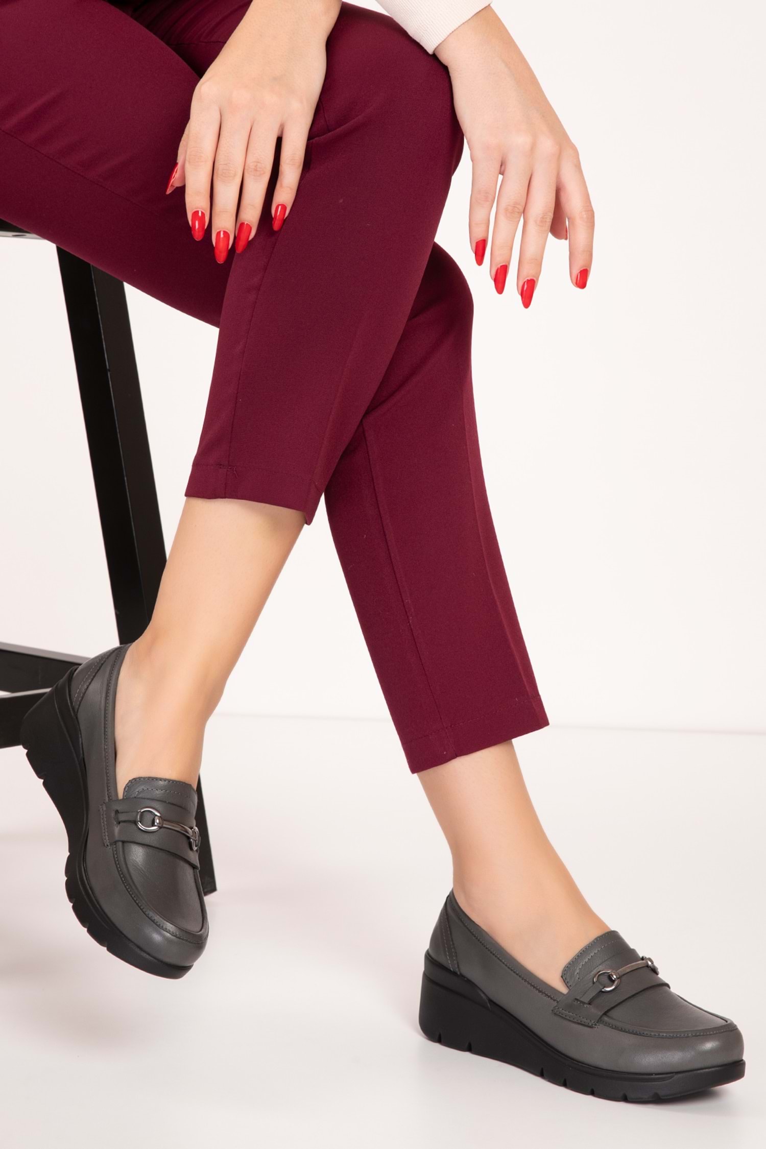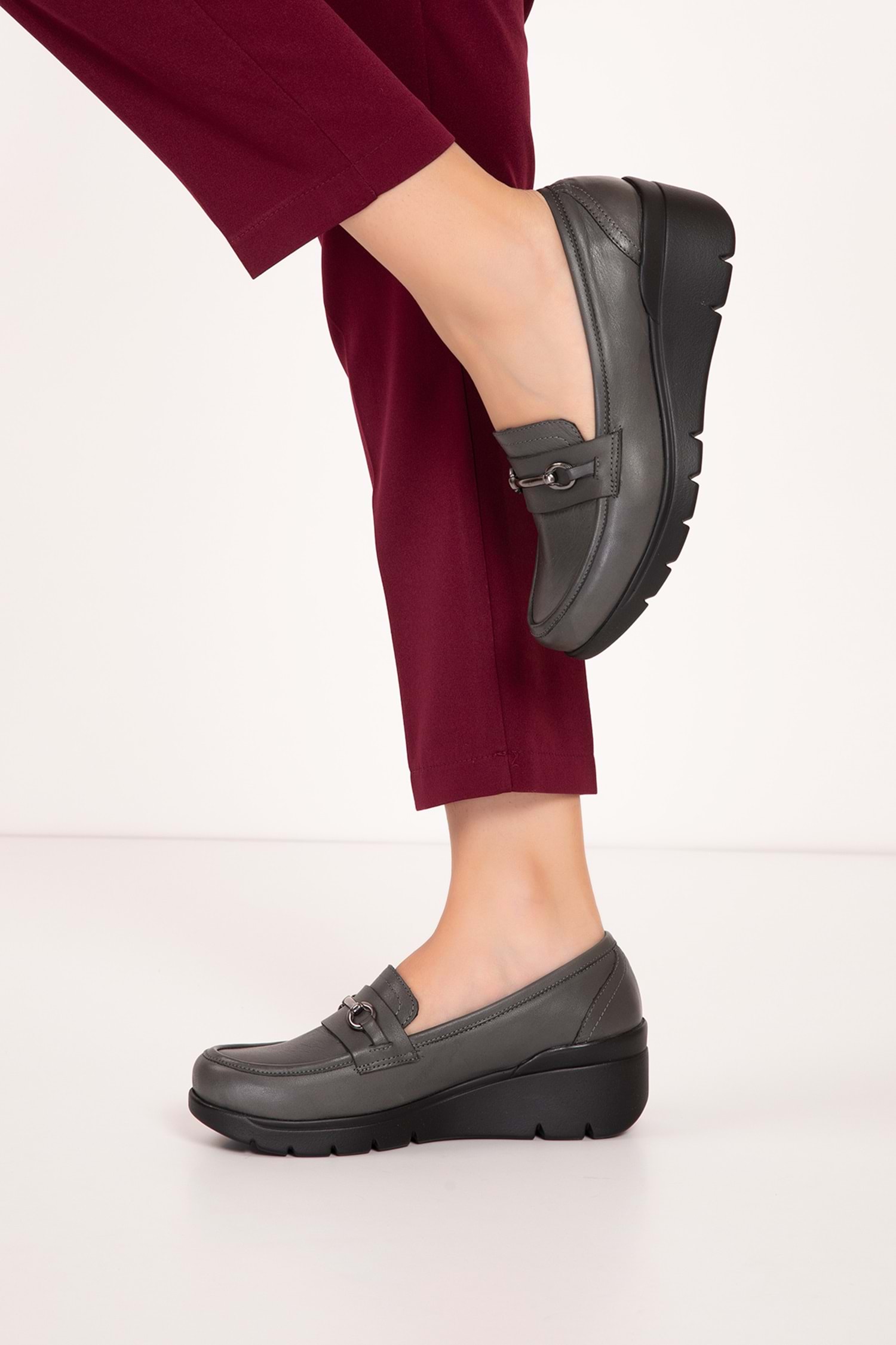 Hakiki Deri Anatomik Taban Rahat Ayakkabı Topuk boyu 5 cm Toka Detaylı