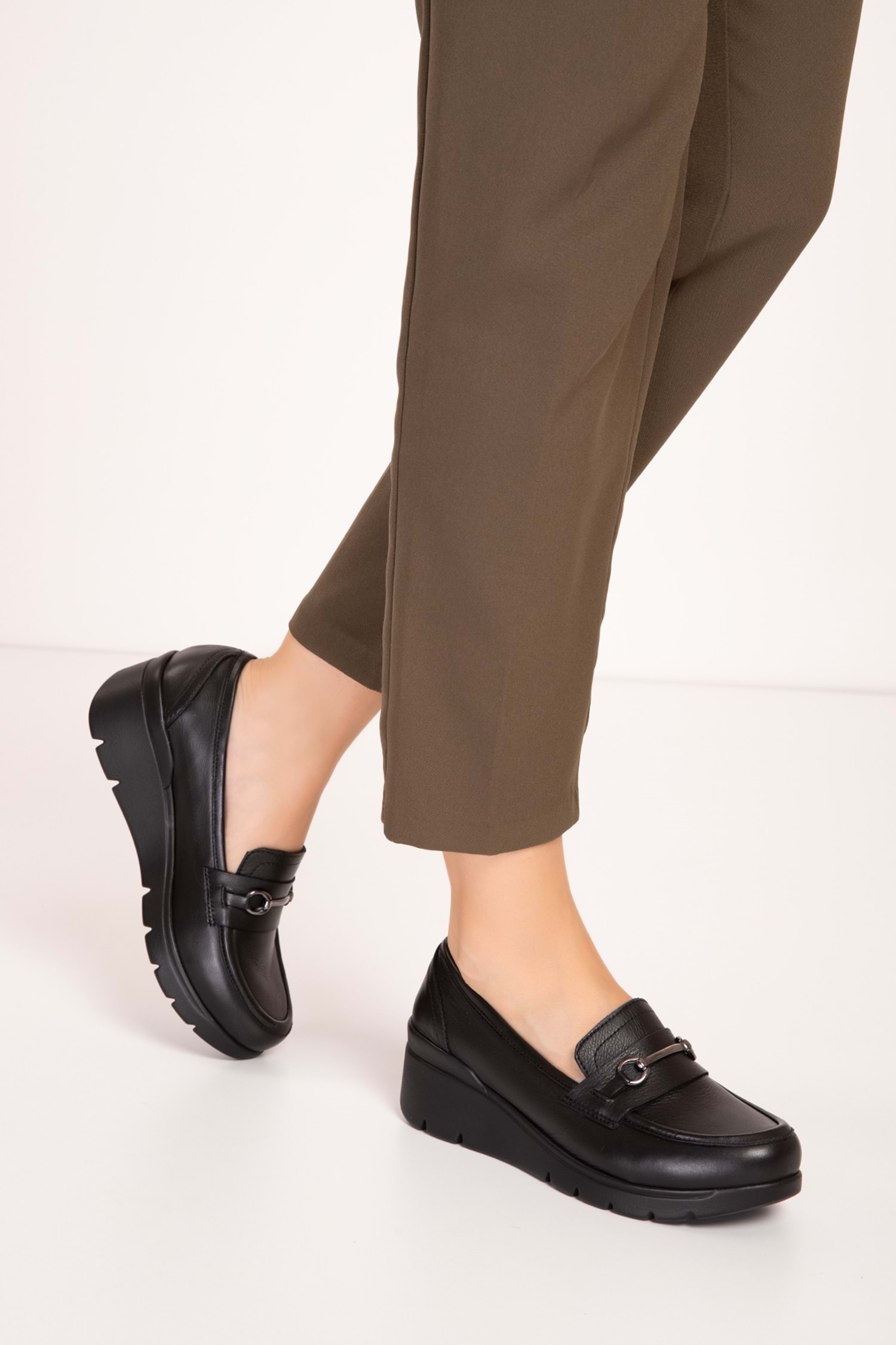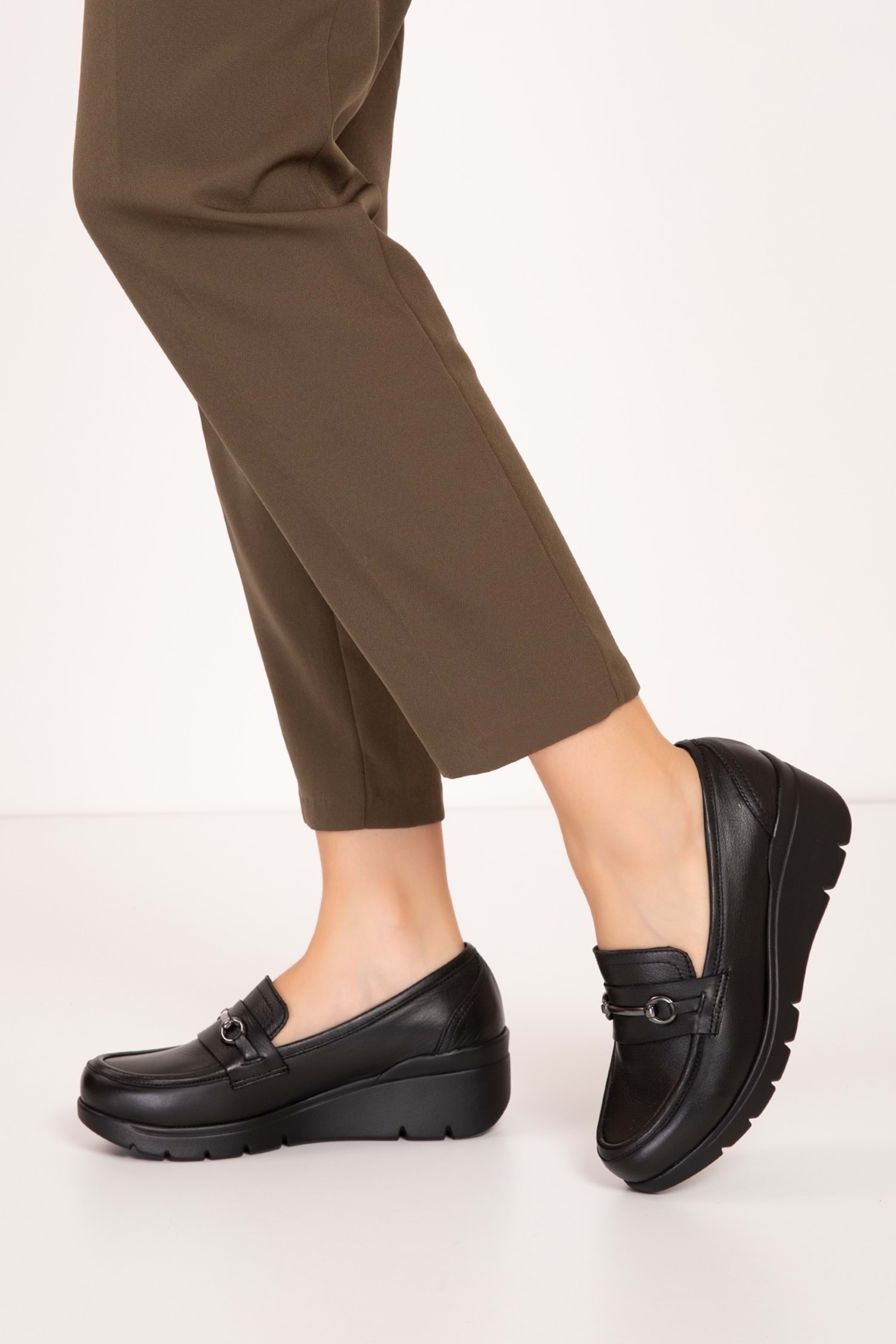 Hakiki Deri Anatomik Taban Rahat Ayakkabı Topuk boyu 5 cm Toka Detaylı
