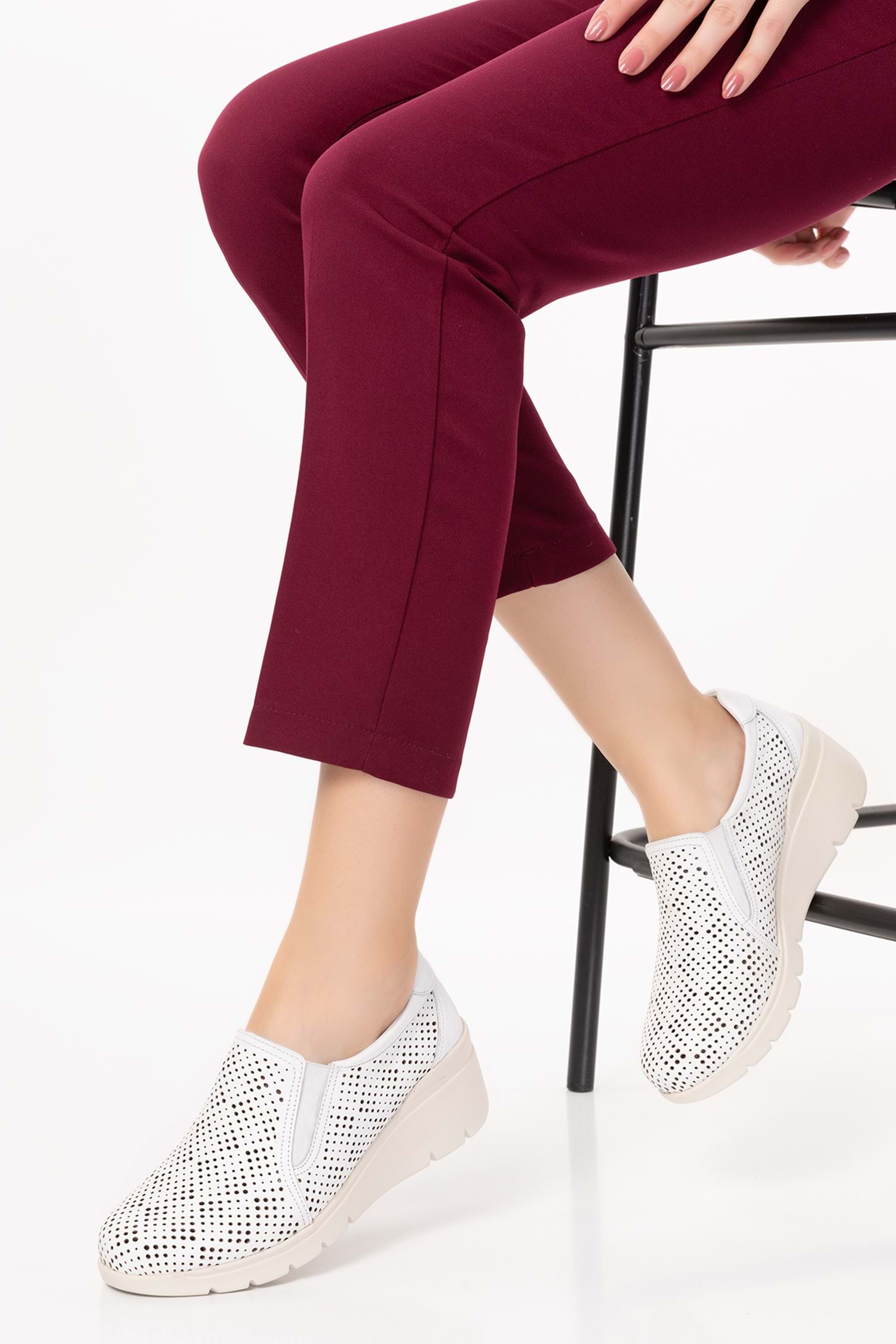 Gondol Hakiki Deri Dolgu Taban Rahat Günlük Ayakkabı esfa.4003 - Beyaz - 41