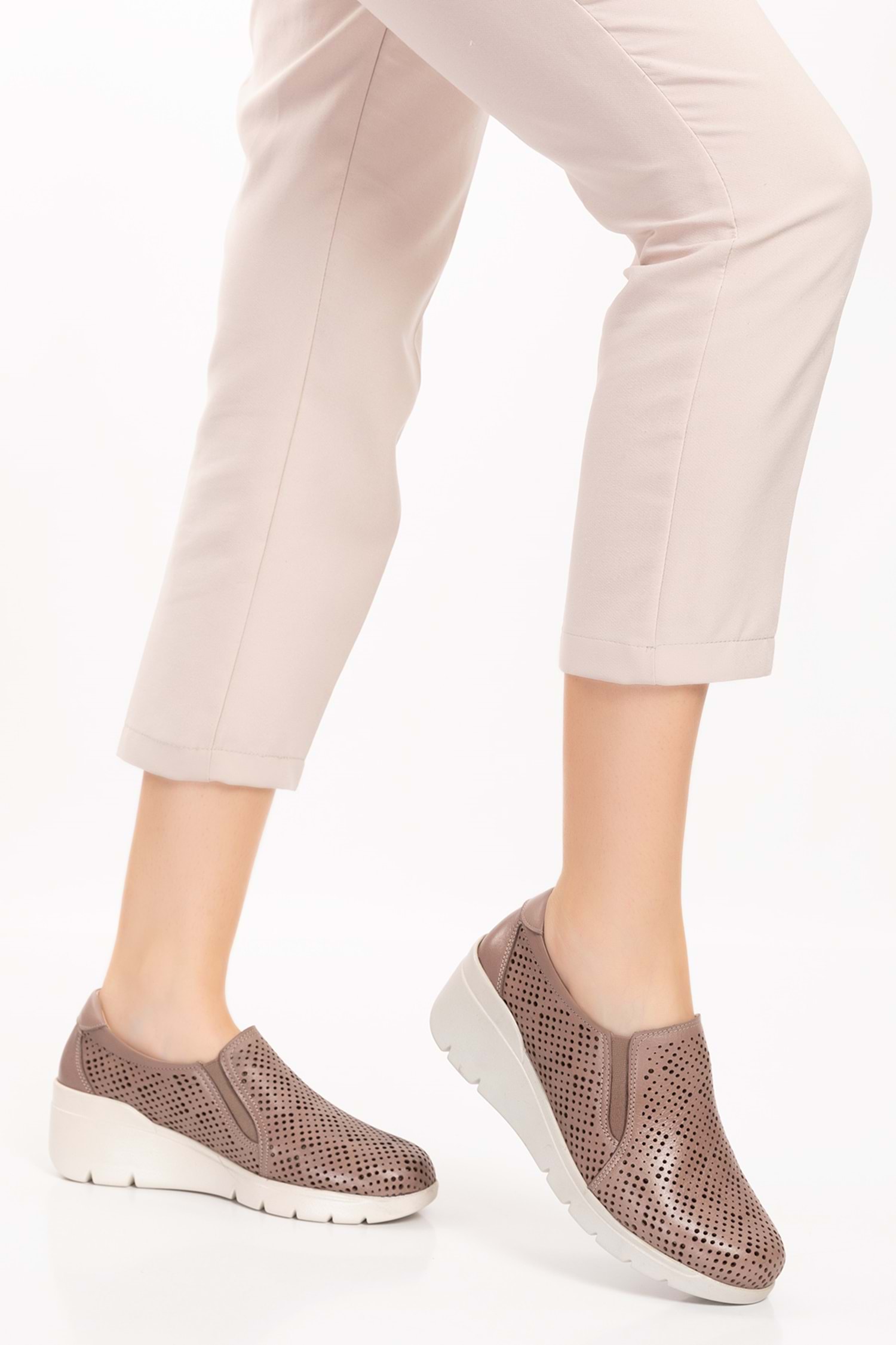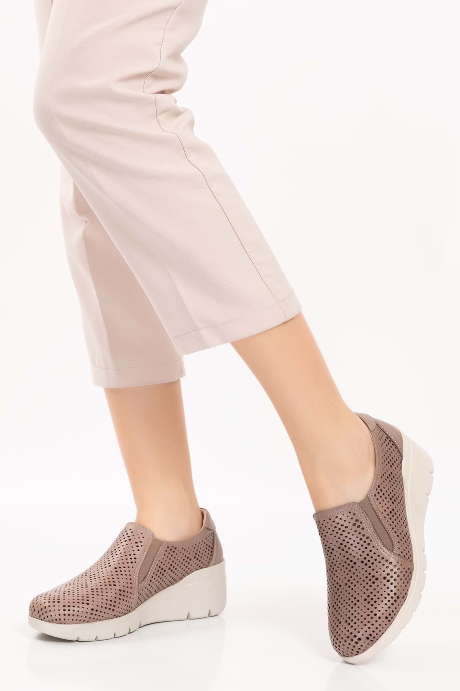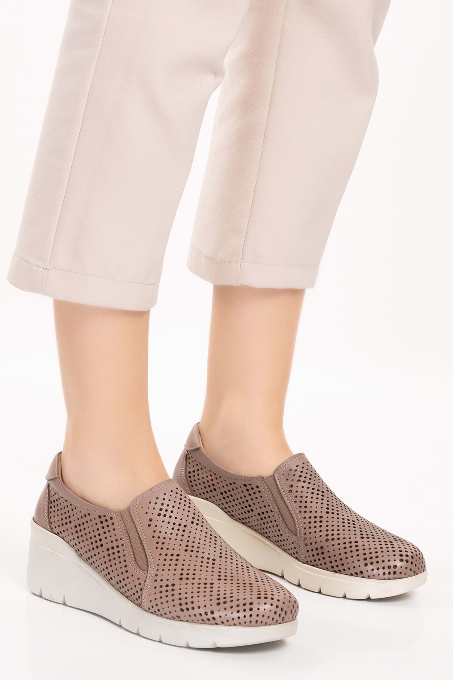 Gondol Hakiki Deri Dolgu Taban Rahat Günlük Ayakkabı esfa.4003 - Vizon - 35