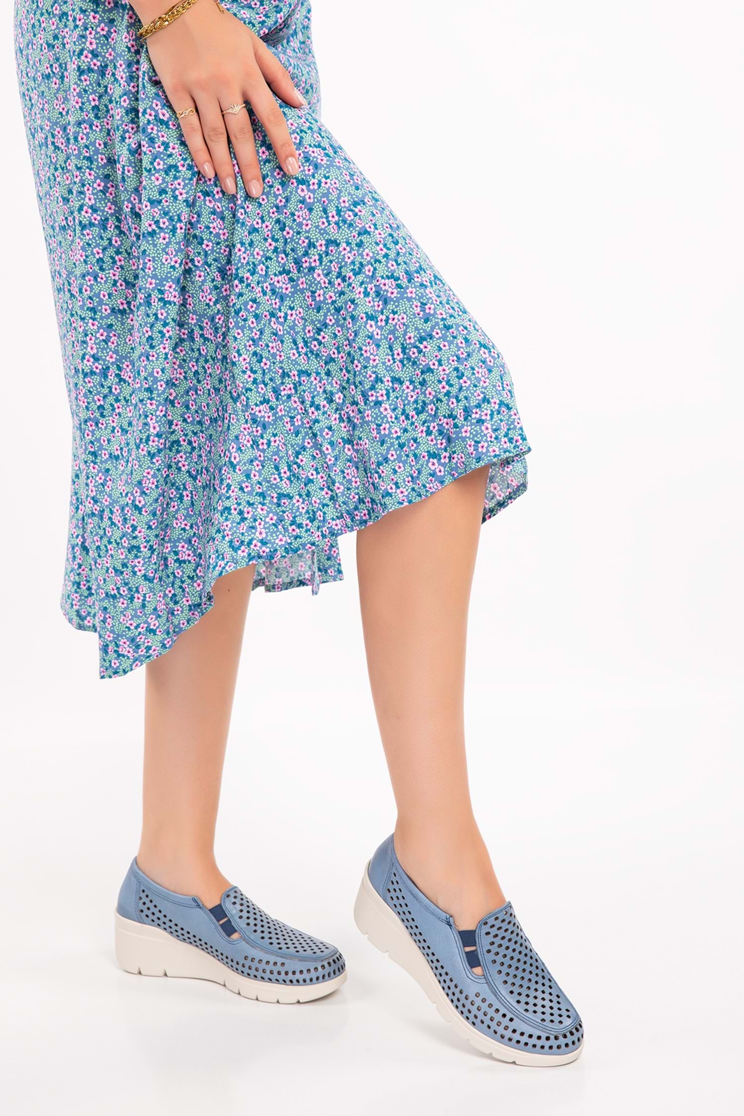 Gondol Hakiki Deri Dolgu Taban Rahat Yazlık Ayakkabı esfa.4001 - Mavi - 35