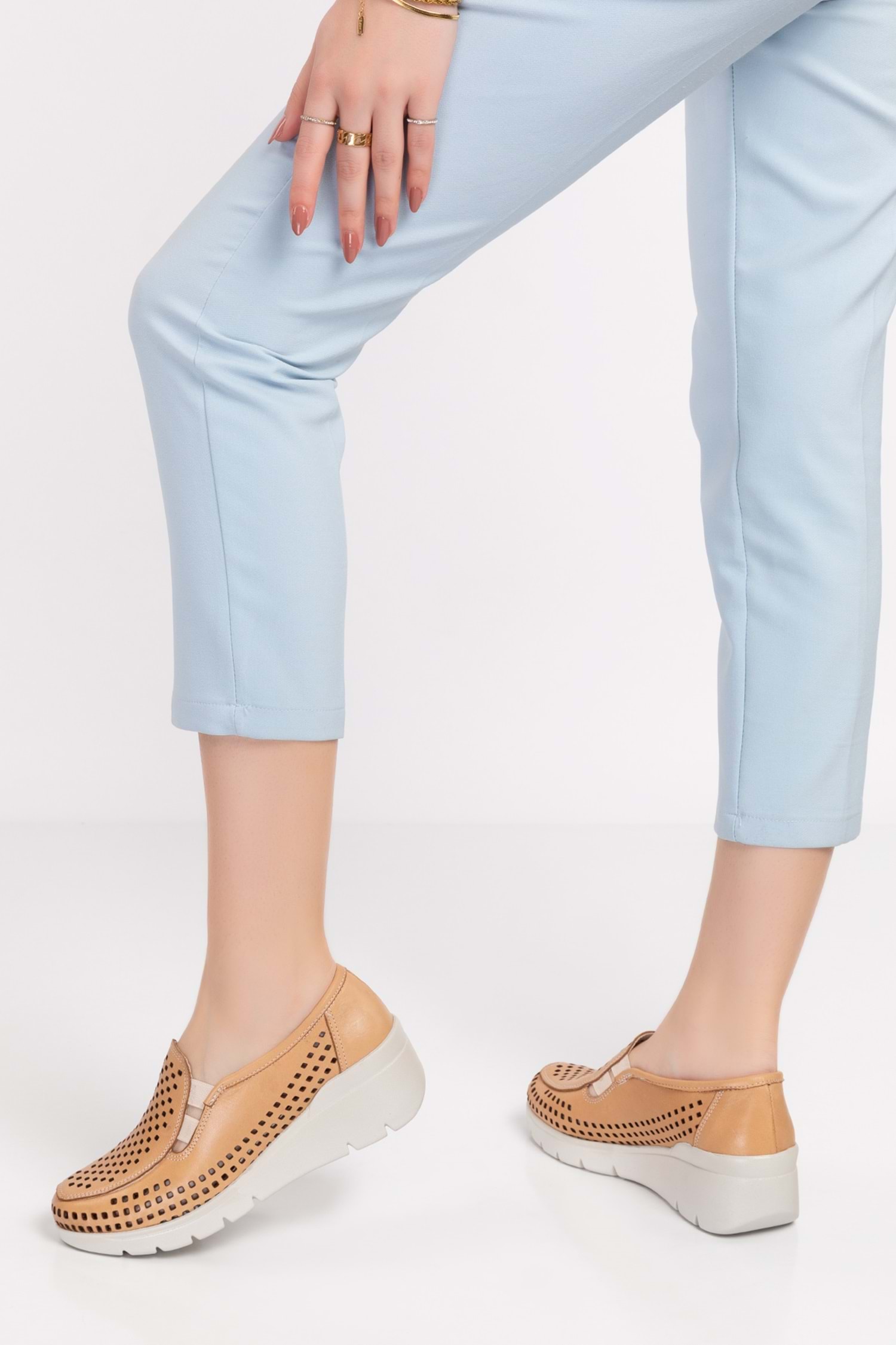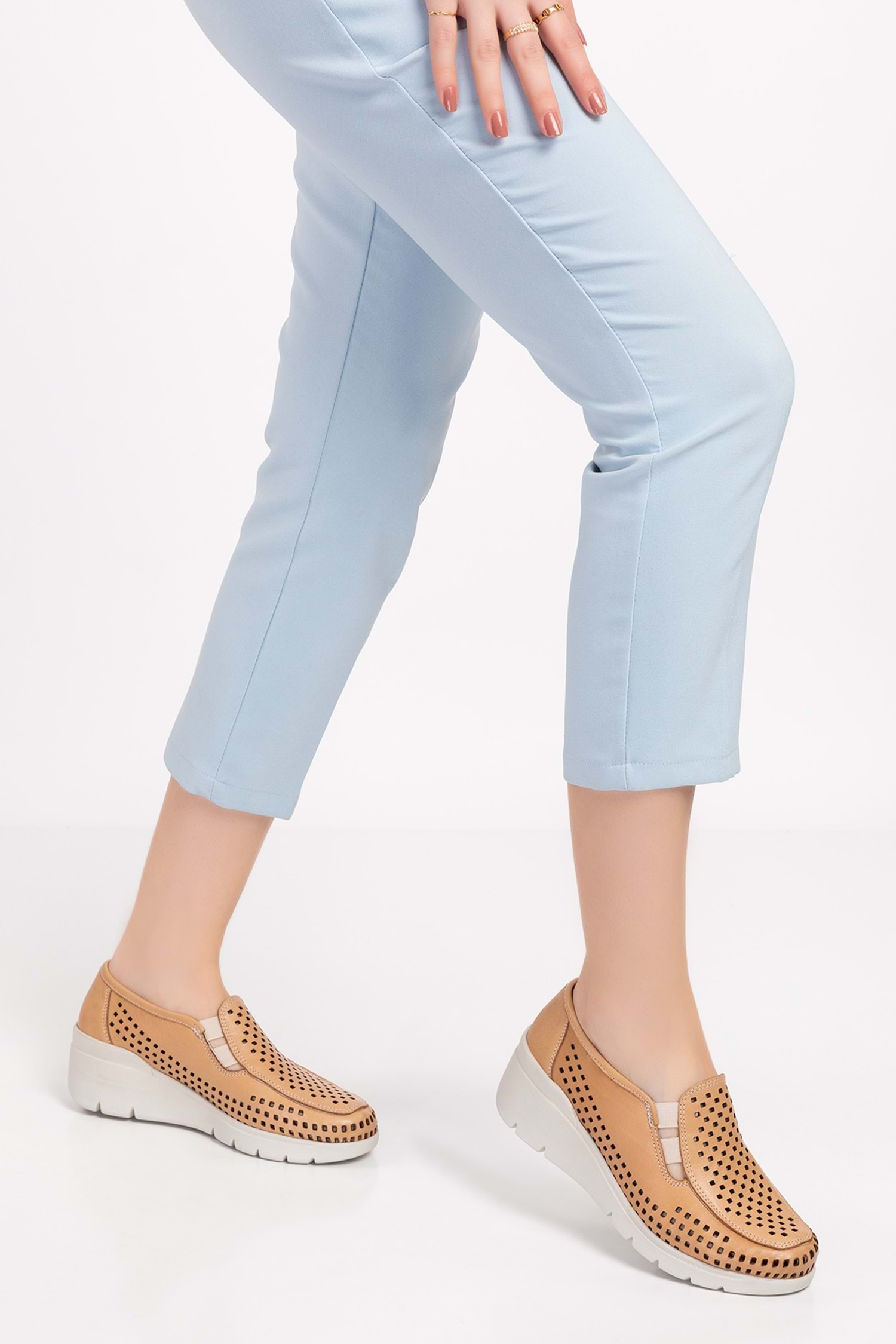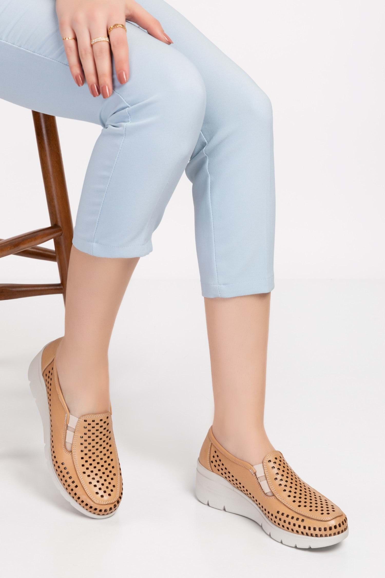 Gondol Hakiki Deri Dolgu Taban Rahat Yazlık Ayakkabı esfa.4001 - Nude - 40