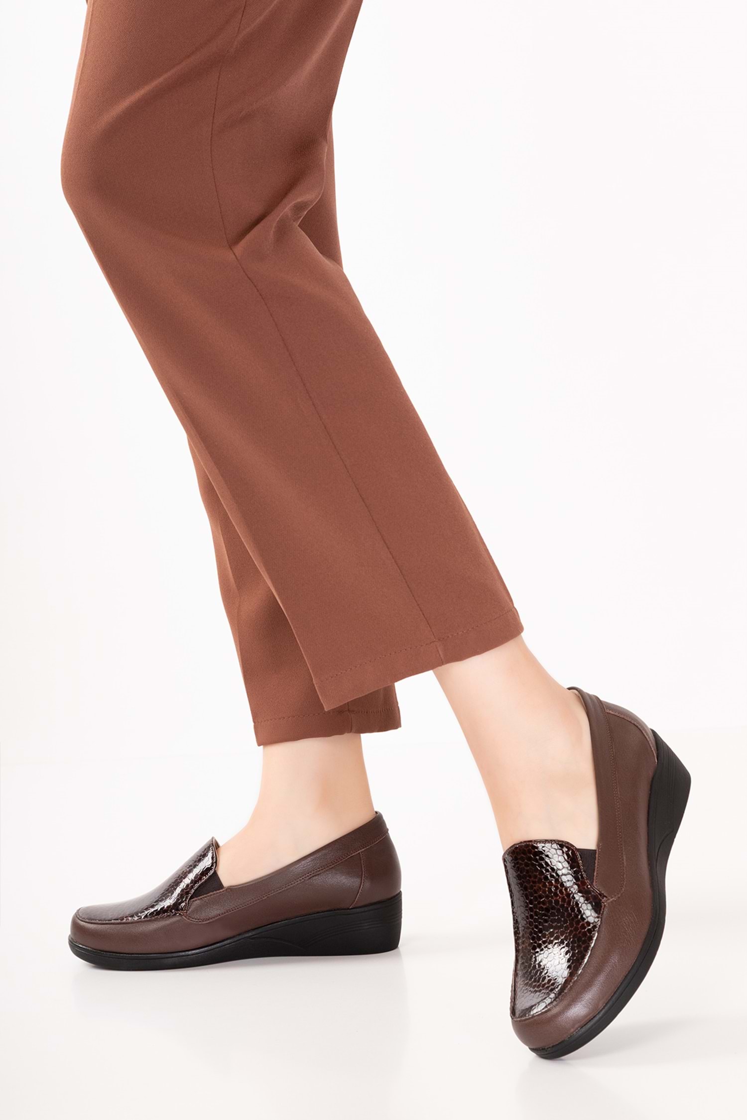 Gondol Hakiki Deri Ortopedik Taban Ayakkabı vdt.2606 - Kahve Petek - 40