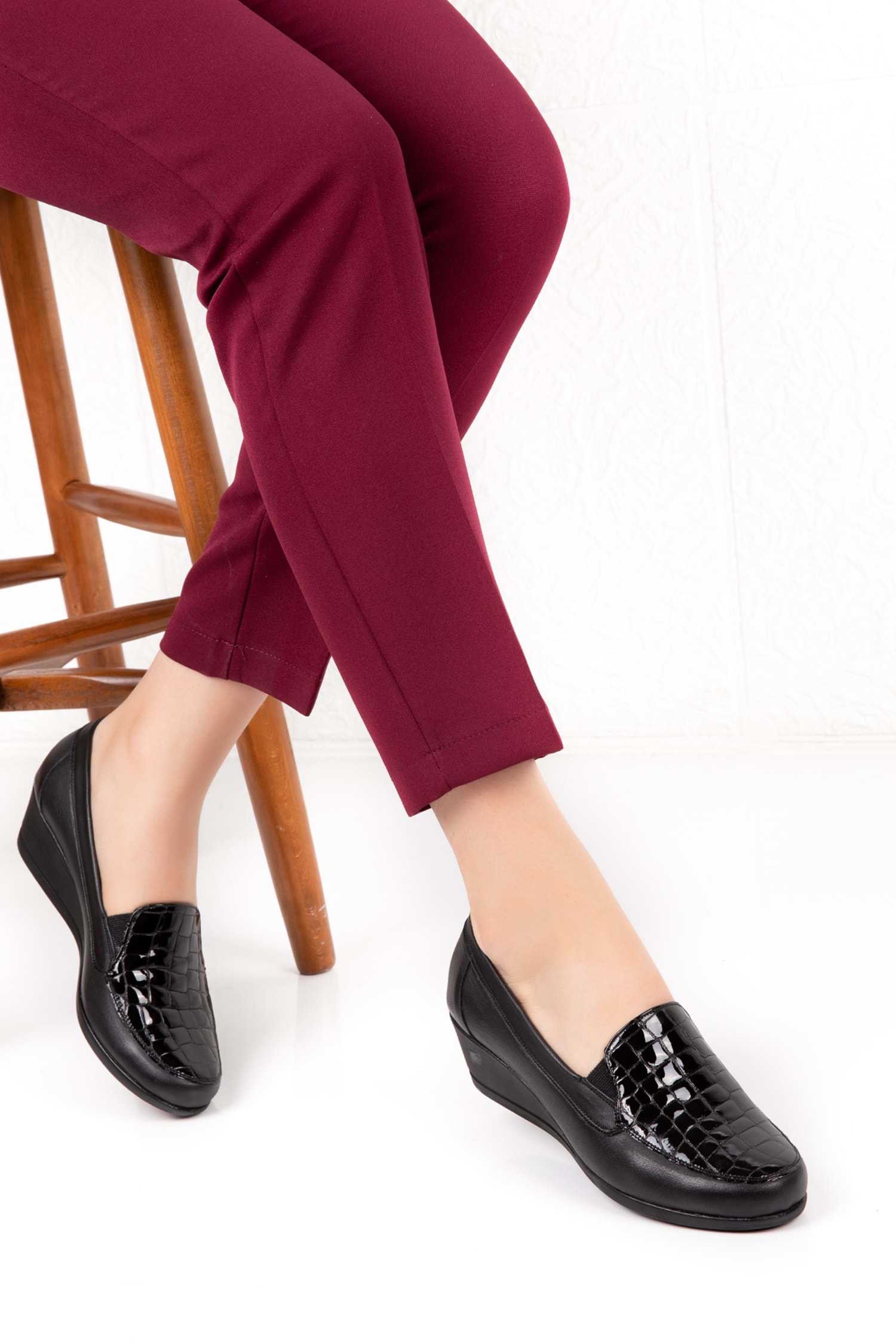 Gondol Hakiki Deri Ortopedik Taban Ayakkabı vdt.2606 - Siyah Croco - 41