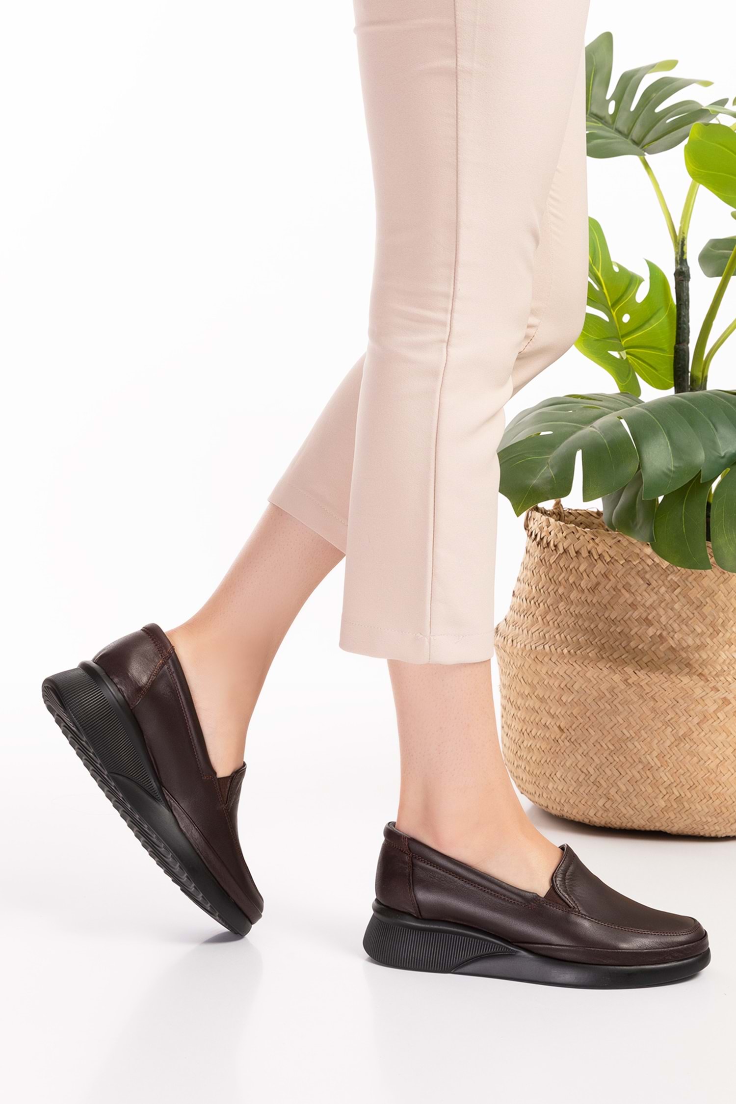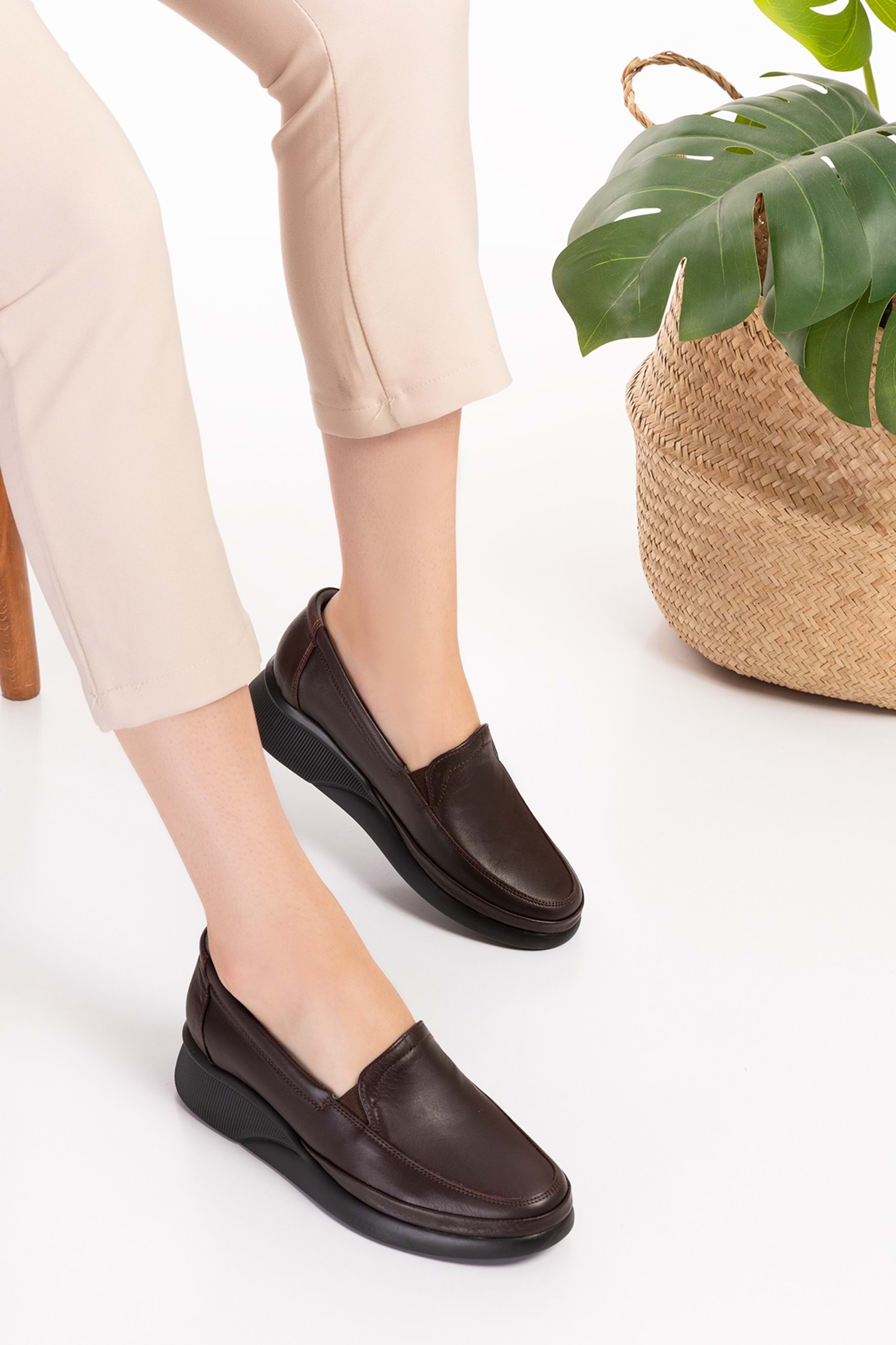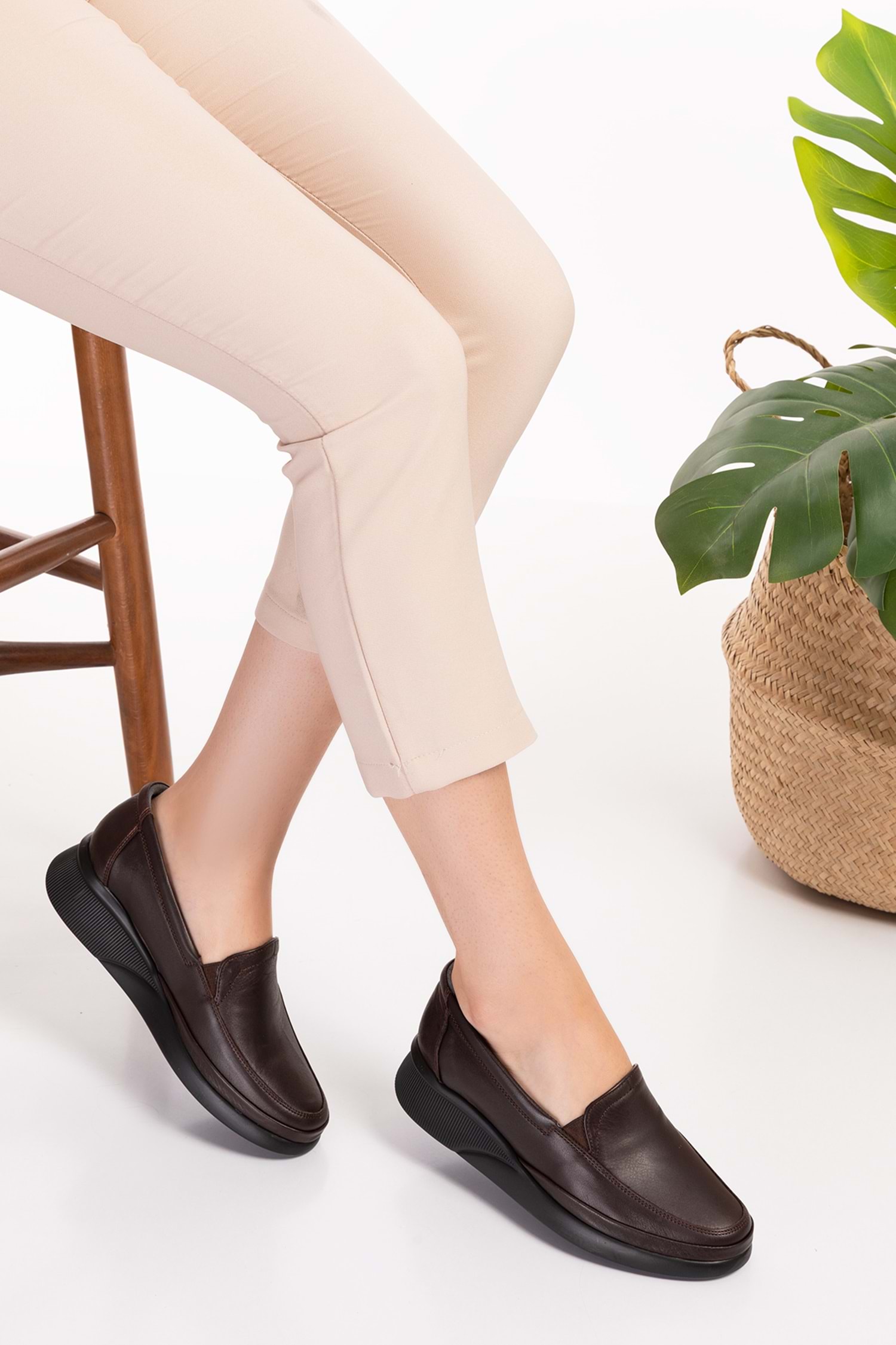 Hakiki Deri Ortopedik Taban Rahat Ayakkabı Topuk Boyu 4 cm