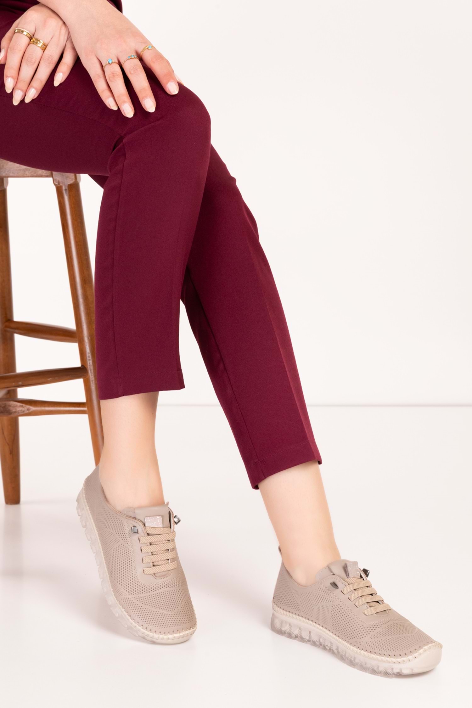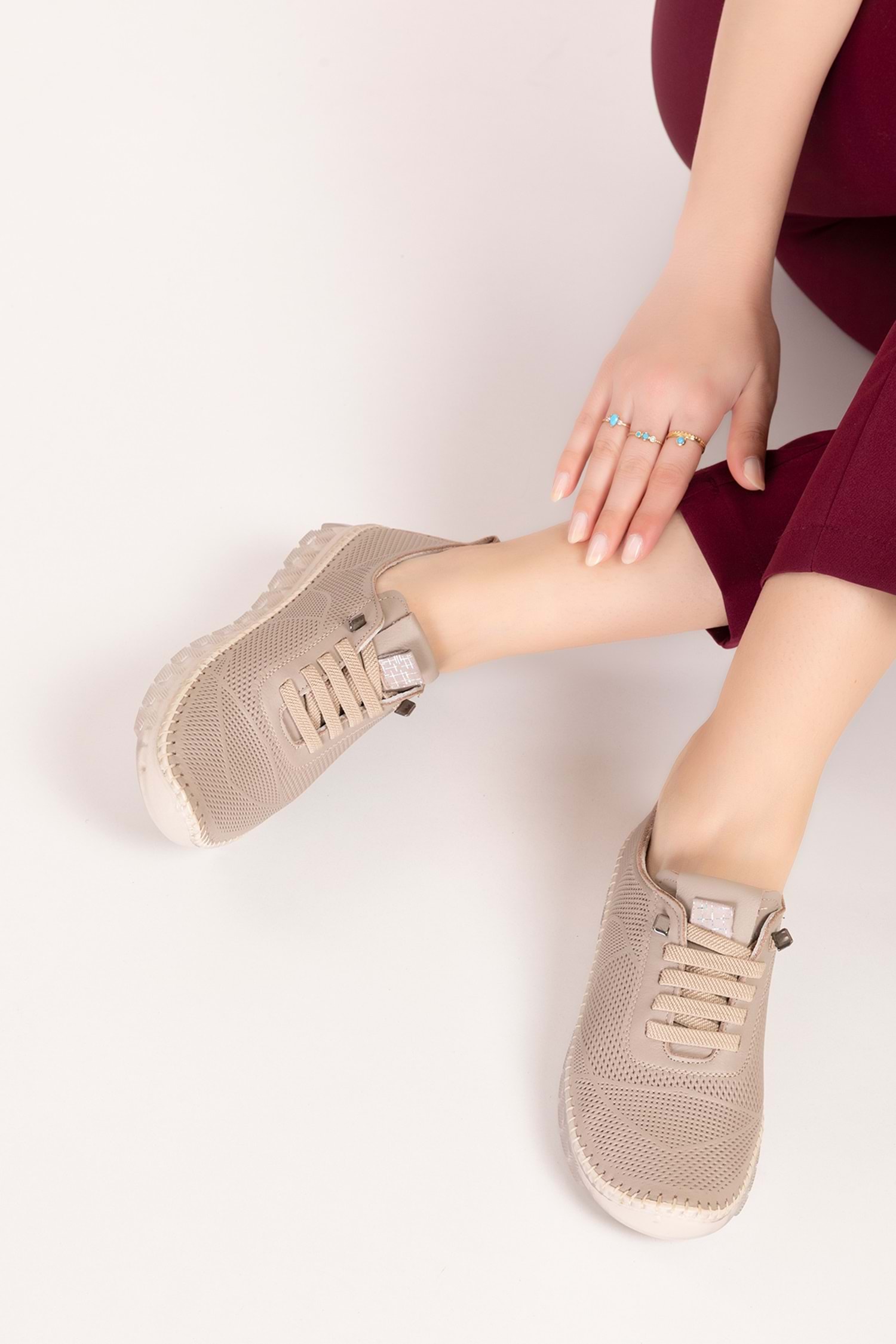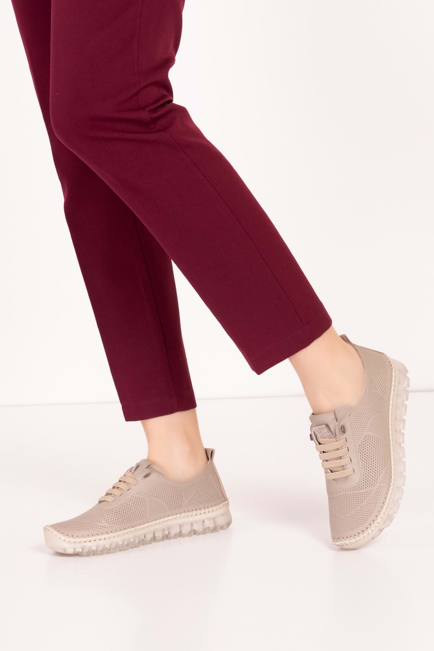 Gondol Hakiki Deri Rahat Esnek Hafif Taban Yazlık Ayakkabı kla.3622 - Vizon - 37