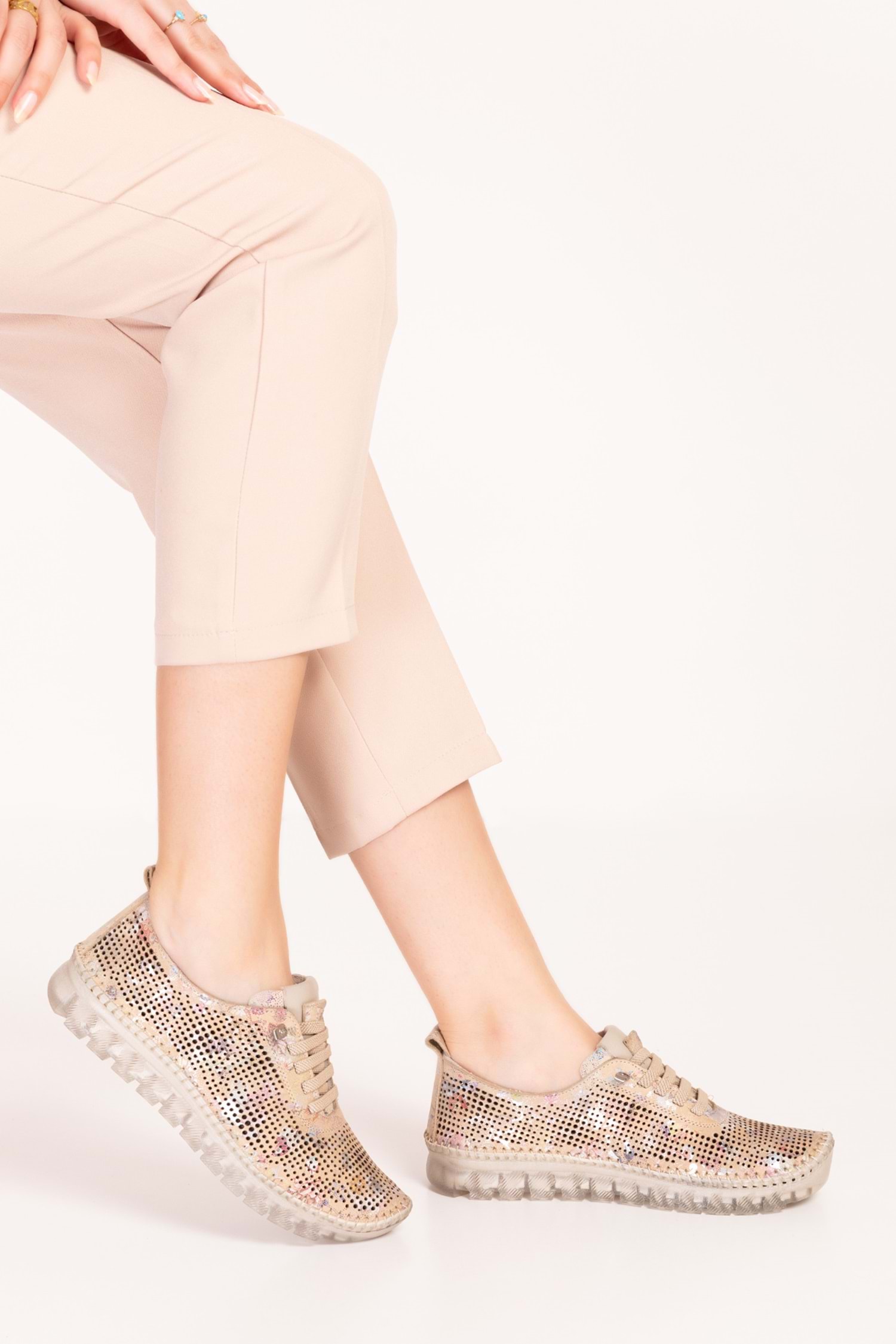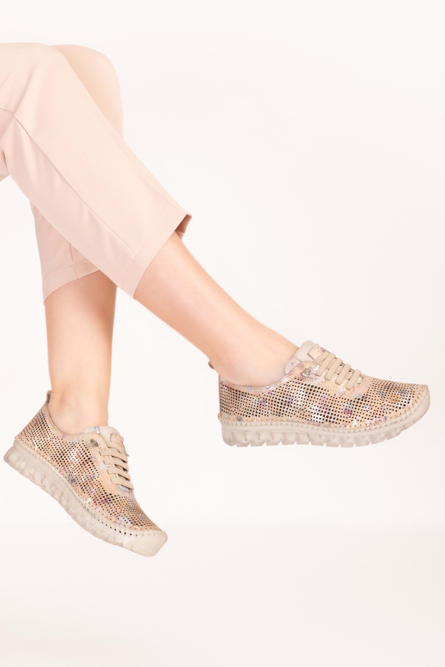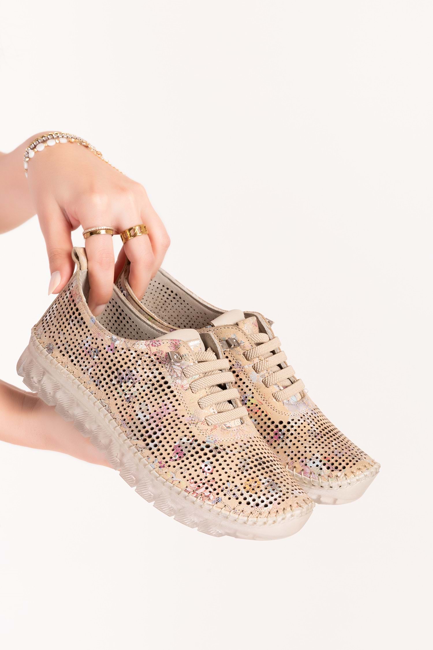 Gondol Hakiki Deri Rahat Esnek Hafif Taban Yazlık Ayakkabı kla.3623 - Bej - 37