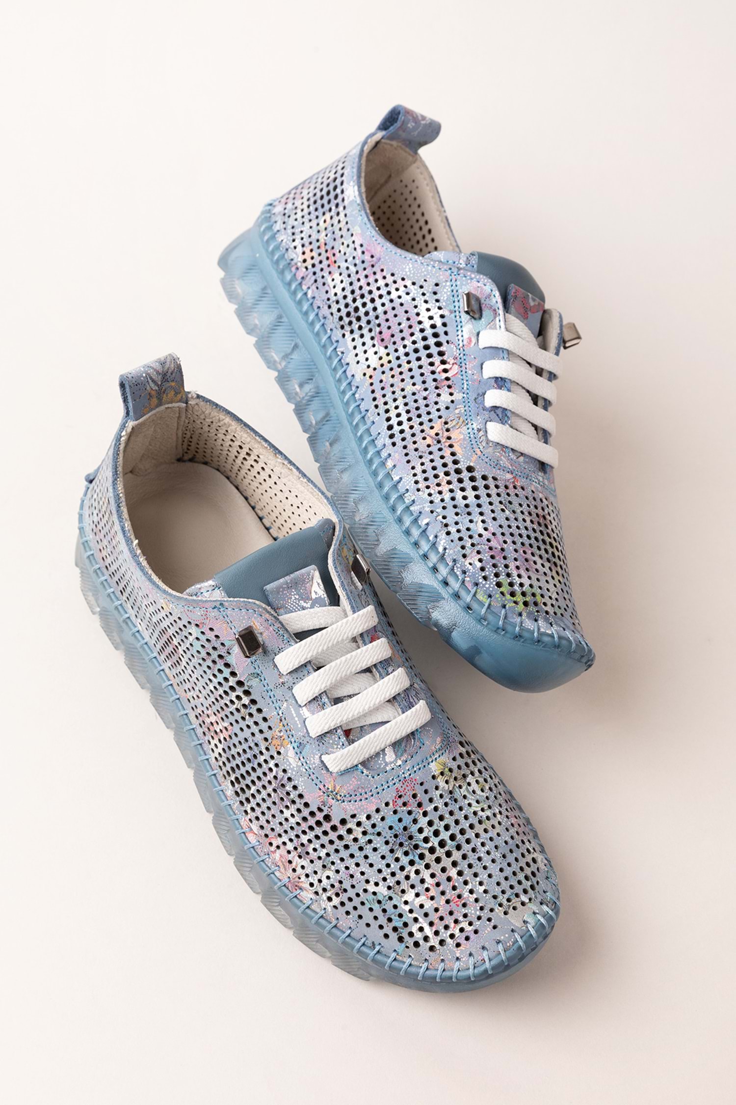 Gondol Hakiki Deri Rahat Esnek Hafif Taban Yazlık Ayakkabı kla.3623 - Mavi - 39