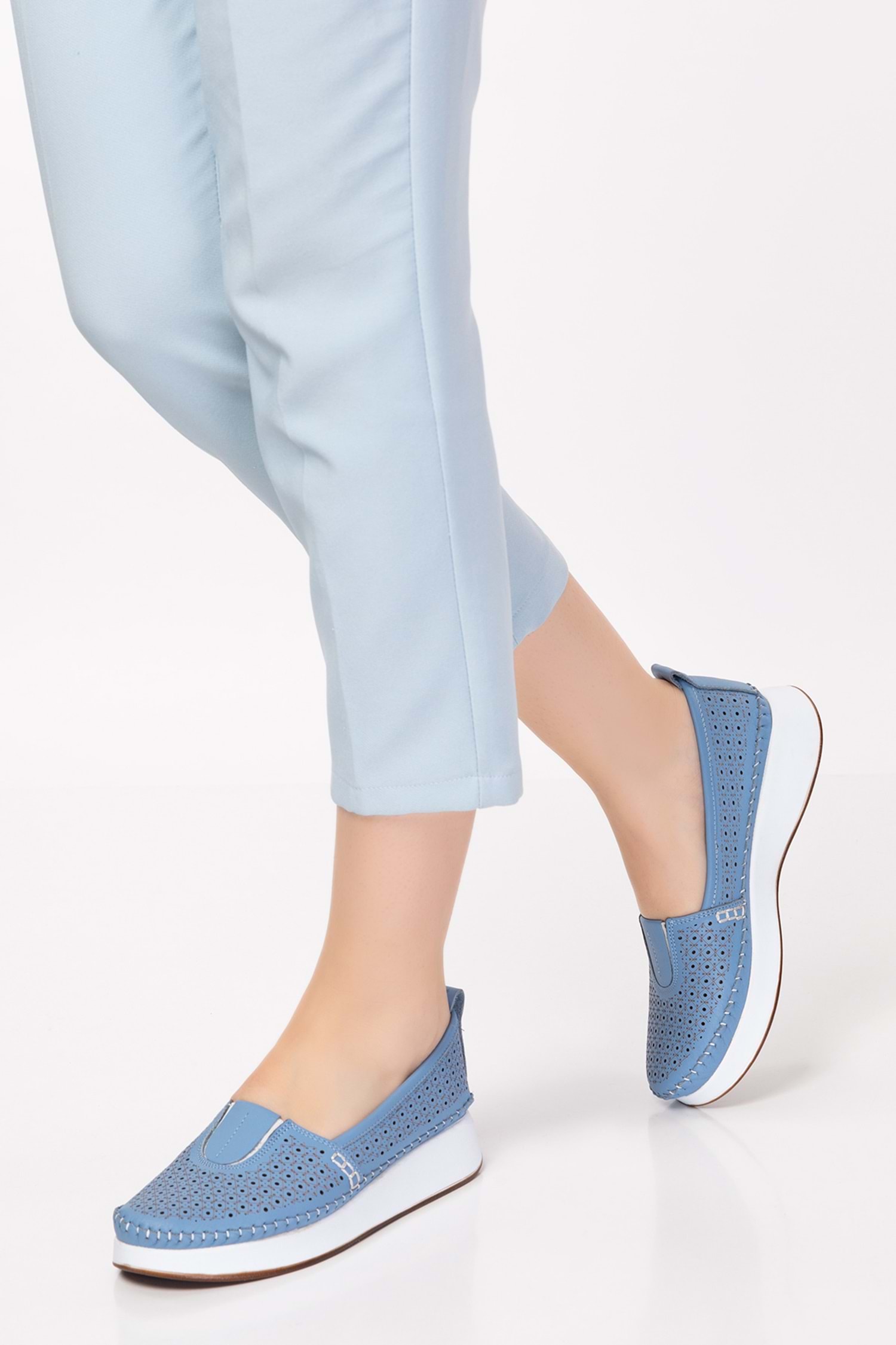 Gondol Hakiki Deri Rahat Yazlık Ayakkabı kla.14 - Mavi - 36