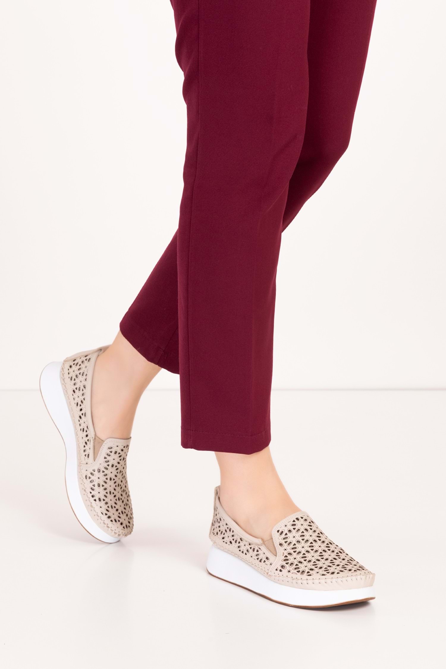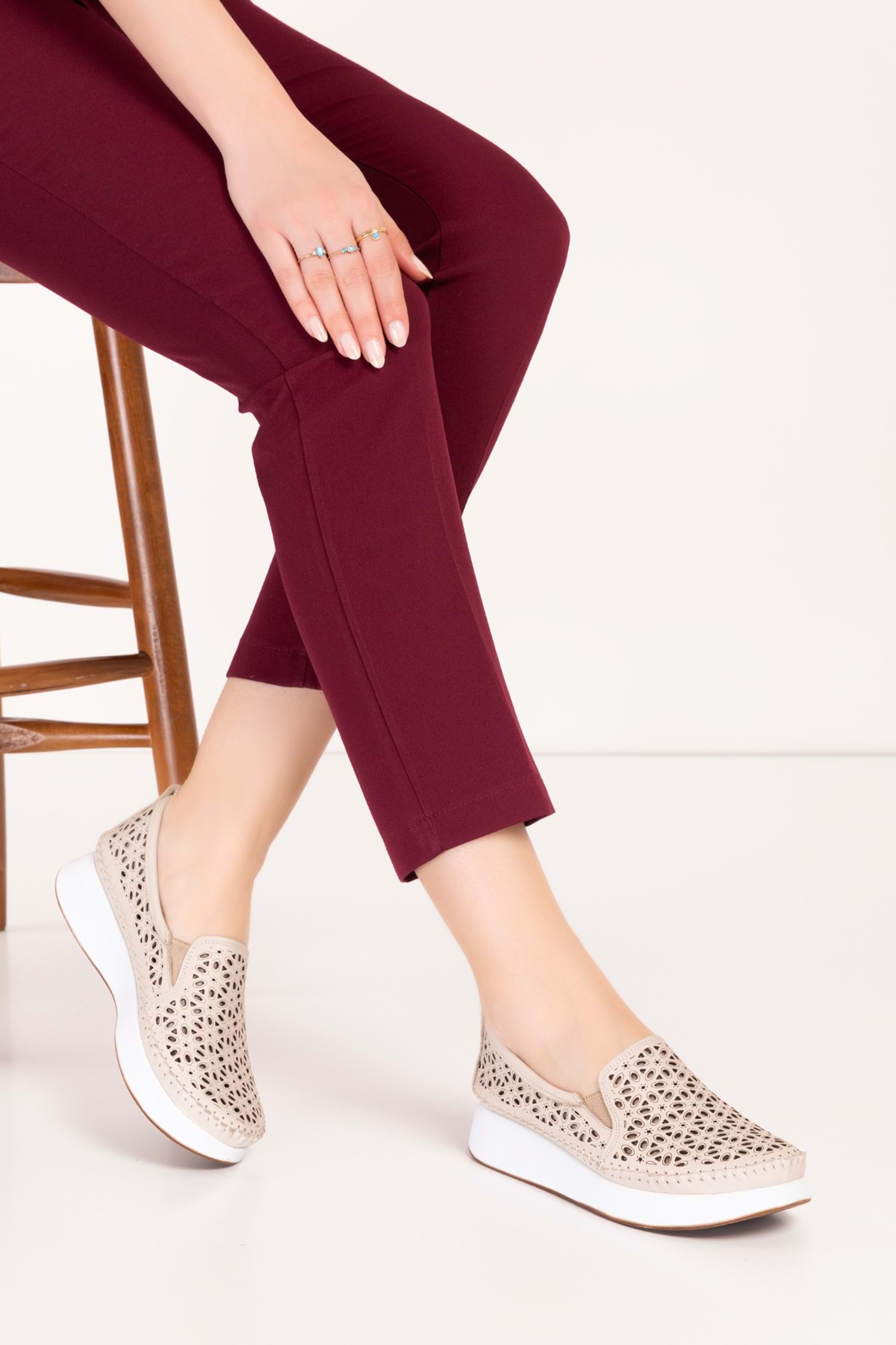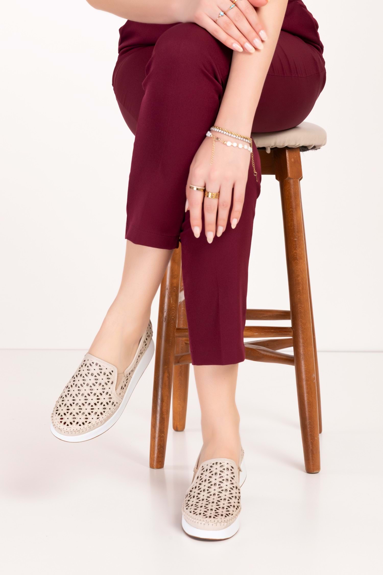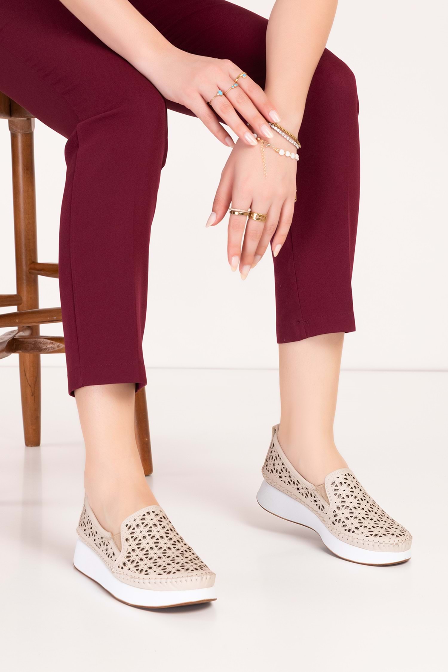 Gondol Hakiki Deri Rahat Yazlık Ayakkabı kla.15 - Bej - 36