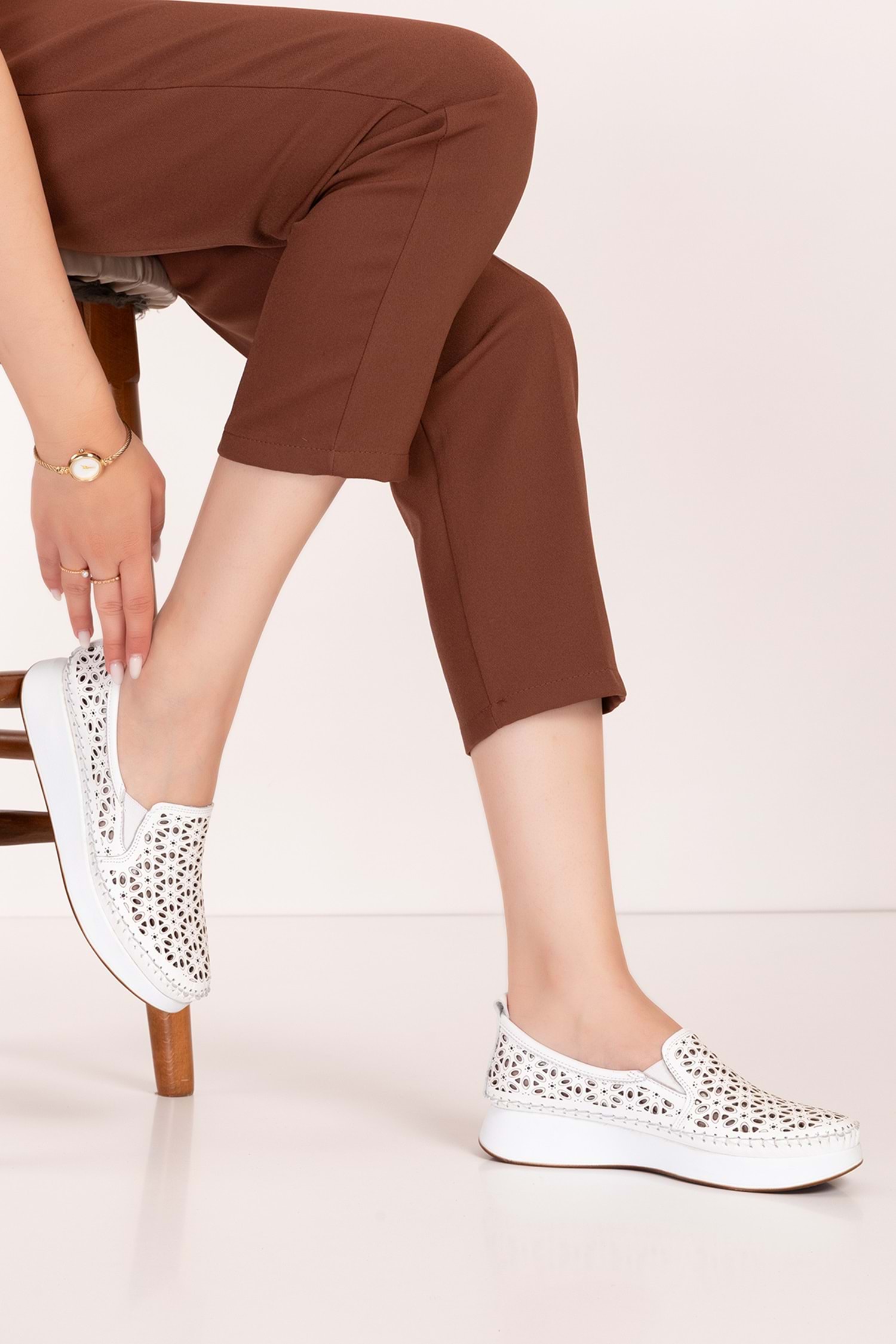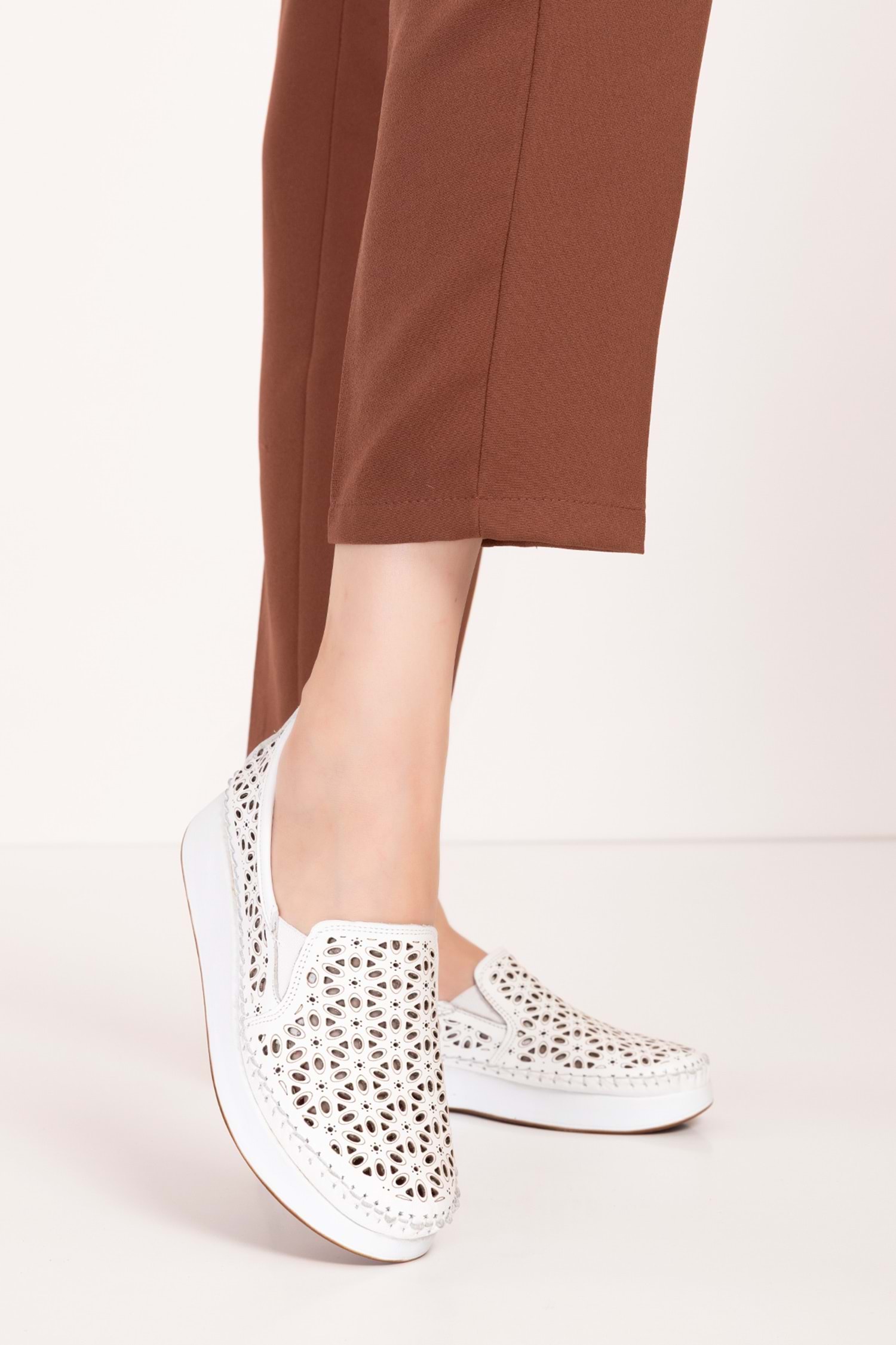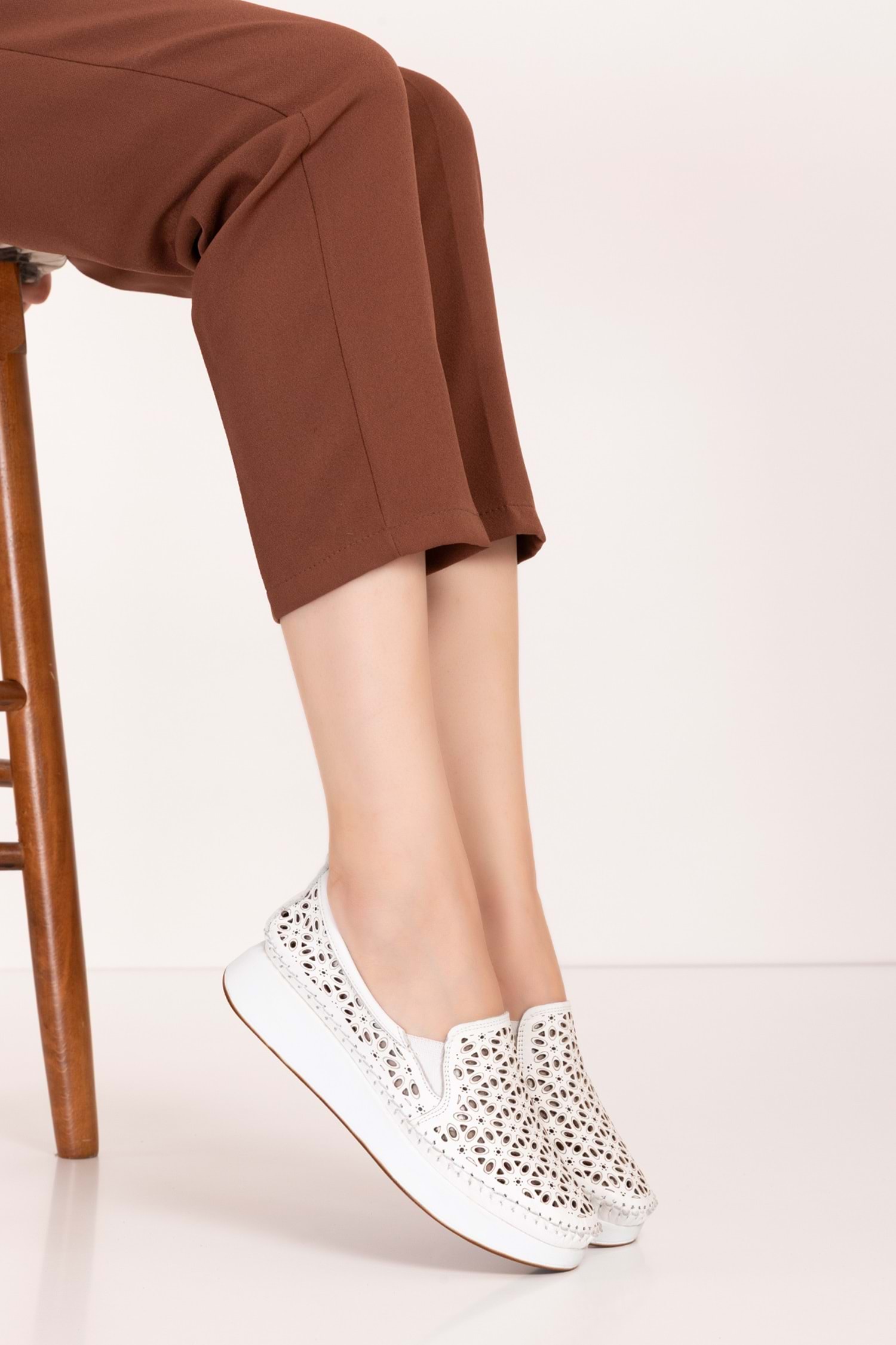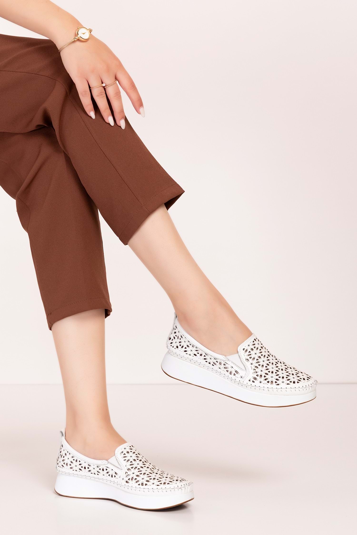 Gondol Hakiki Deri Rahat Yazlık Ayakkabı kla.15 - Beyaz - 36