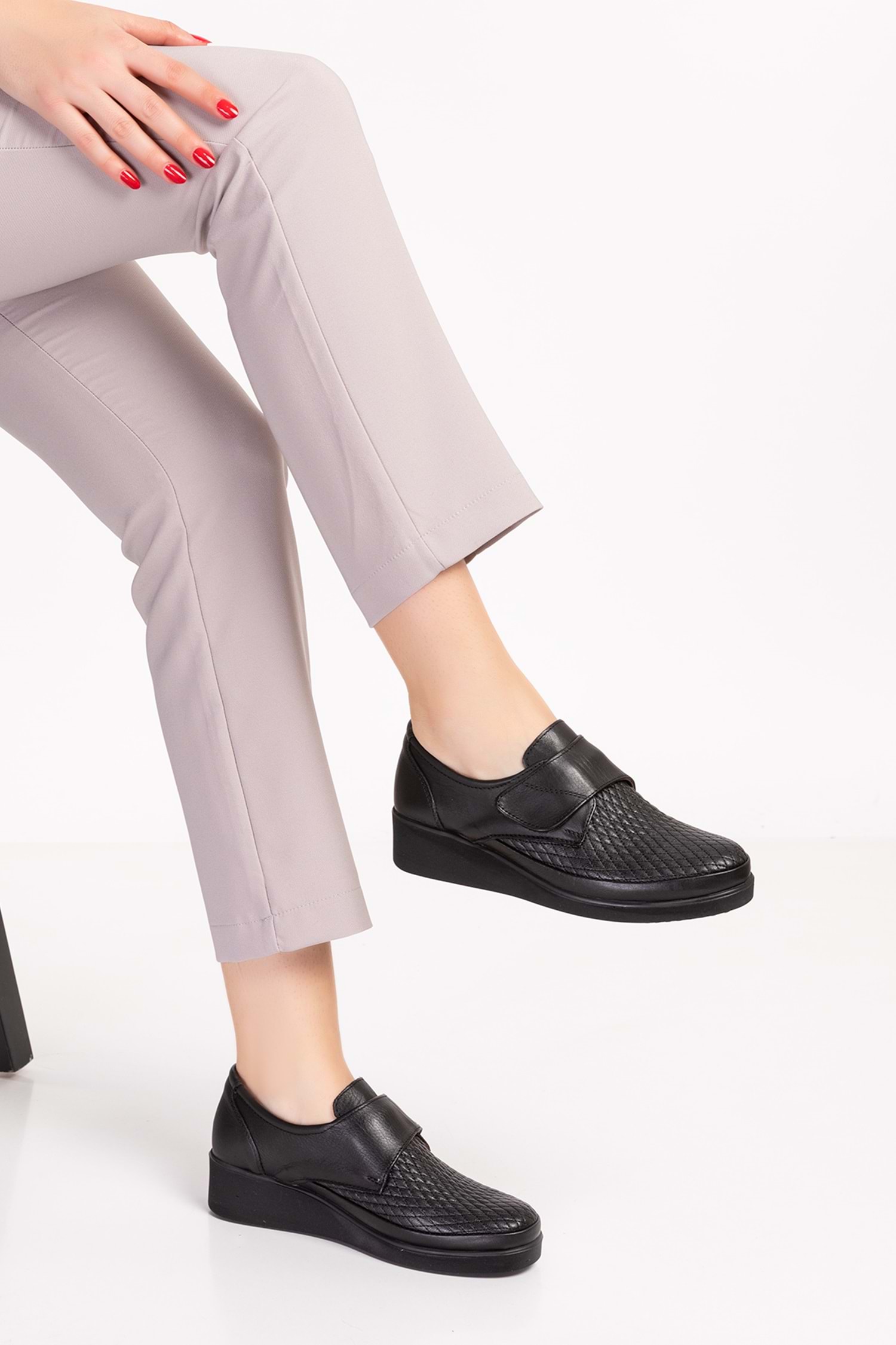 Gondol Hakiki Deri Strech Ortopedik Ayakkabı esp.750 - Siyah - 36