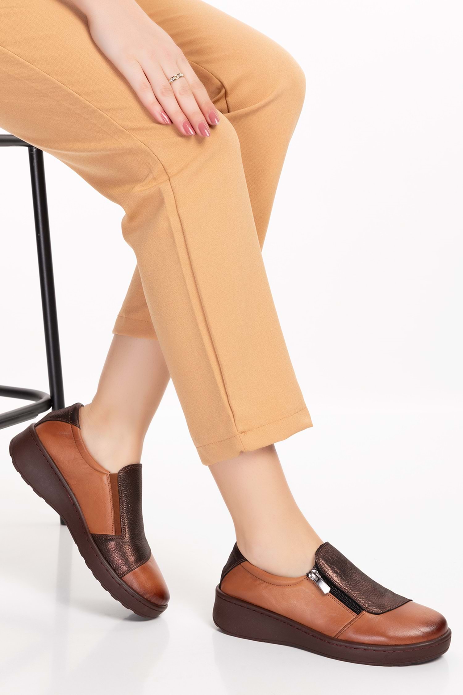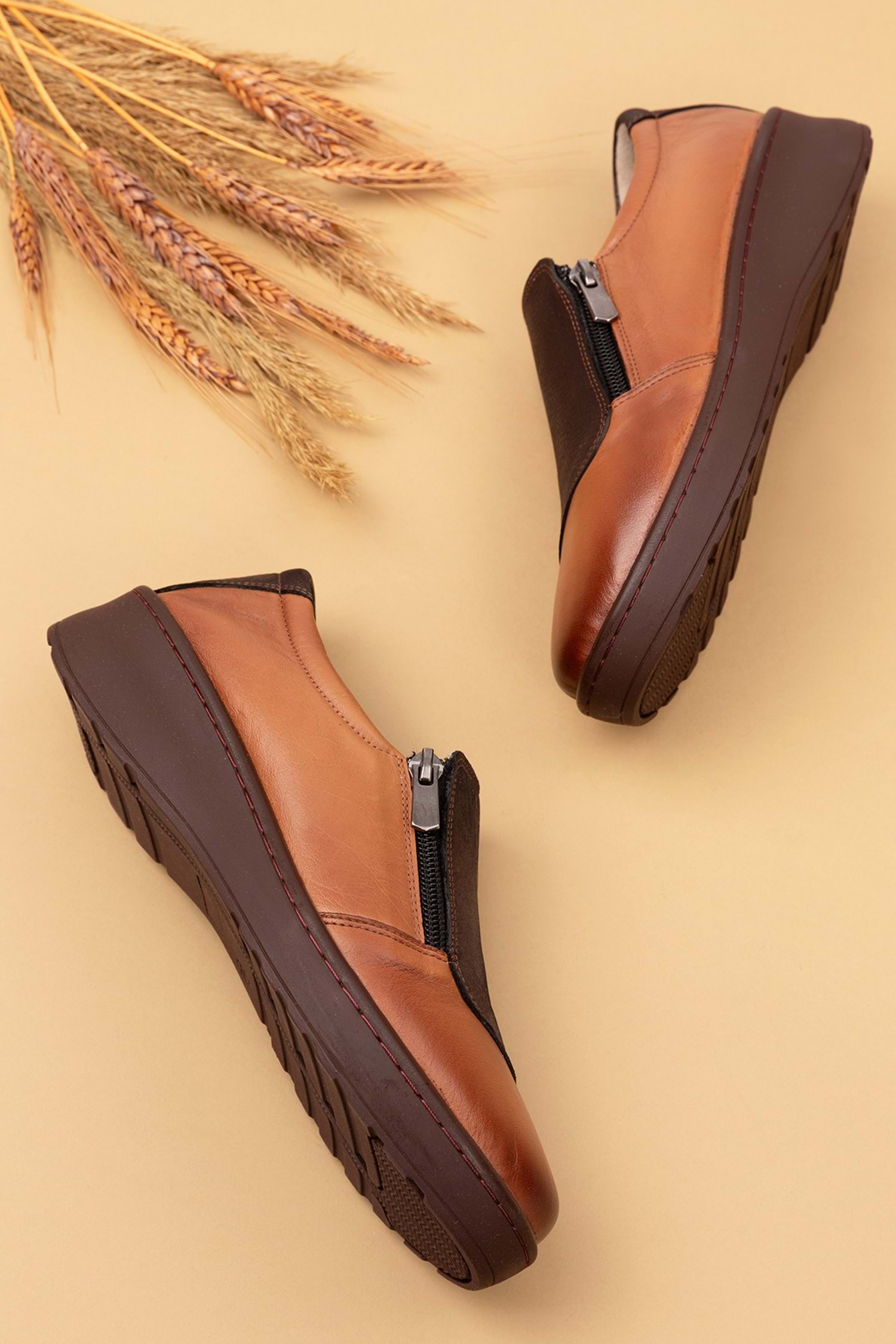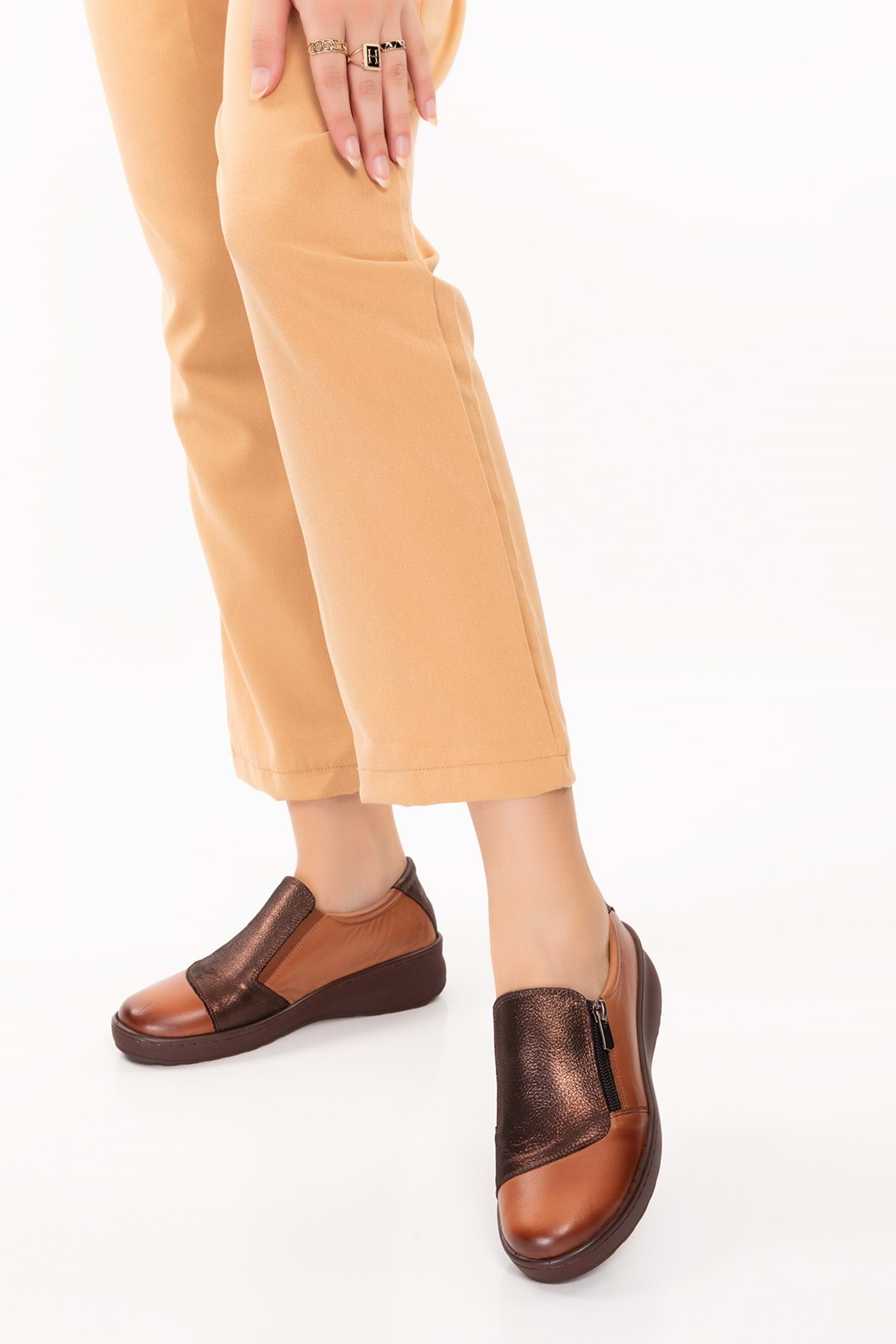 Gondol Kadın Hakiki Deri Anatomik Taban Dolgu Topuklu Günlük Ayakkabı esfa.15401 - Taba - 36