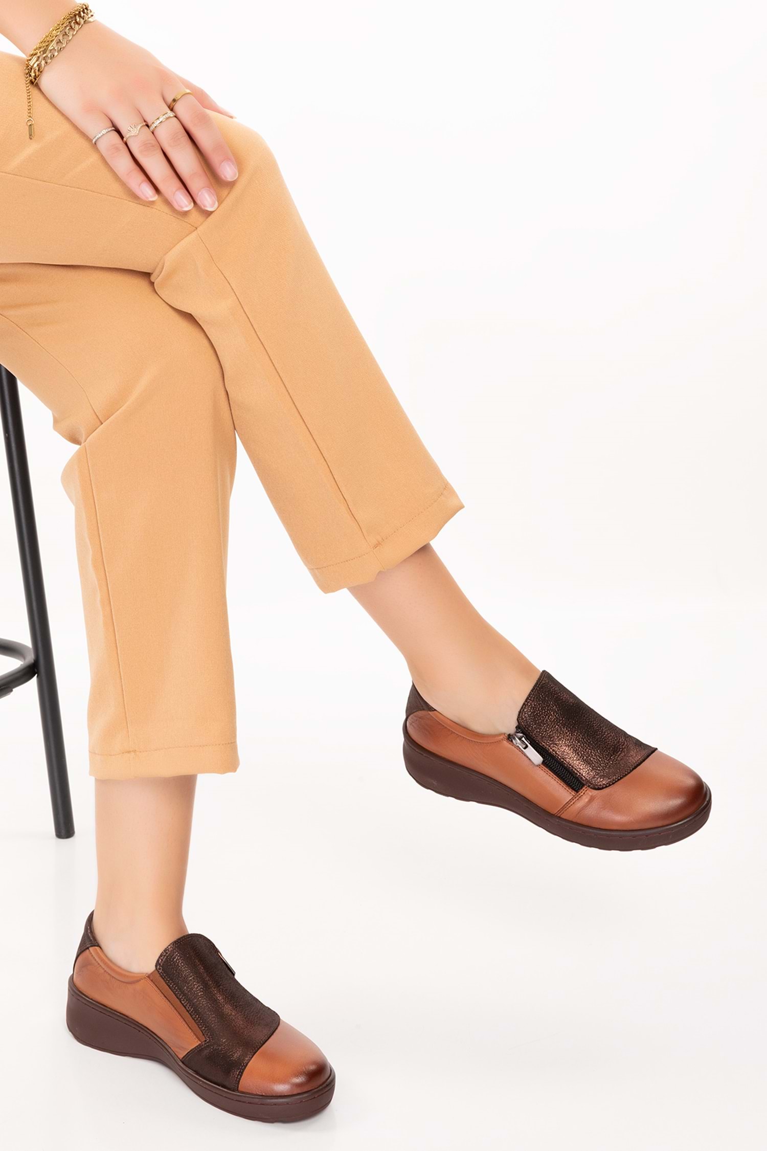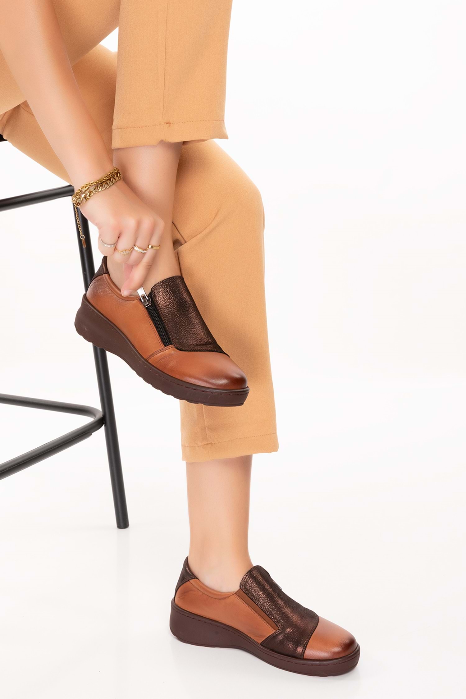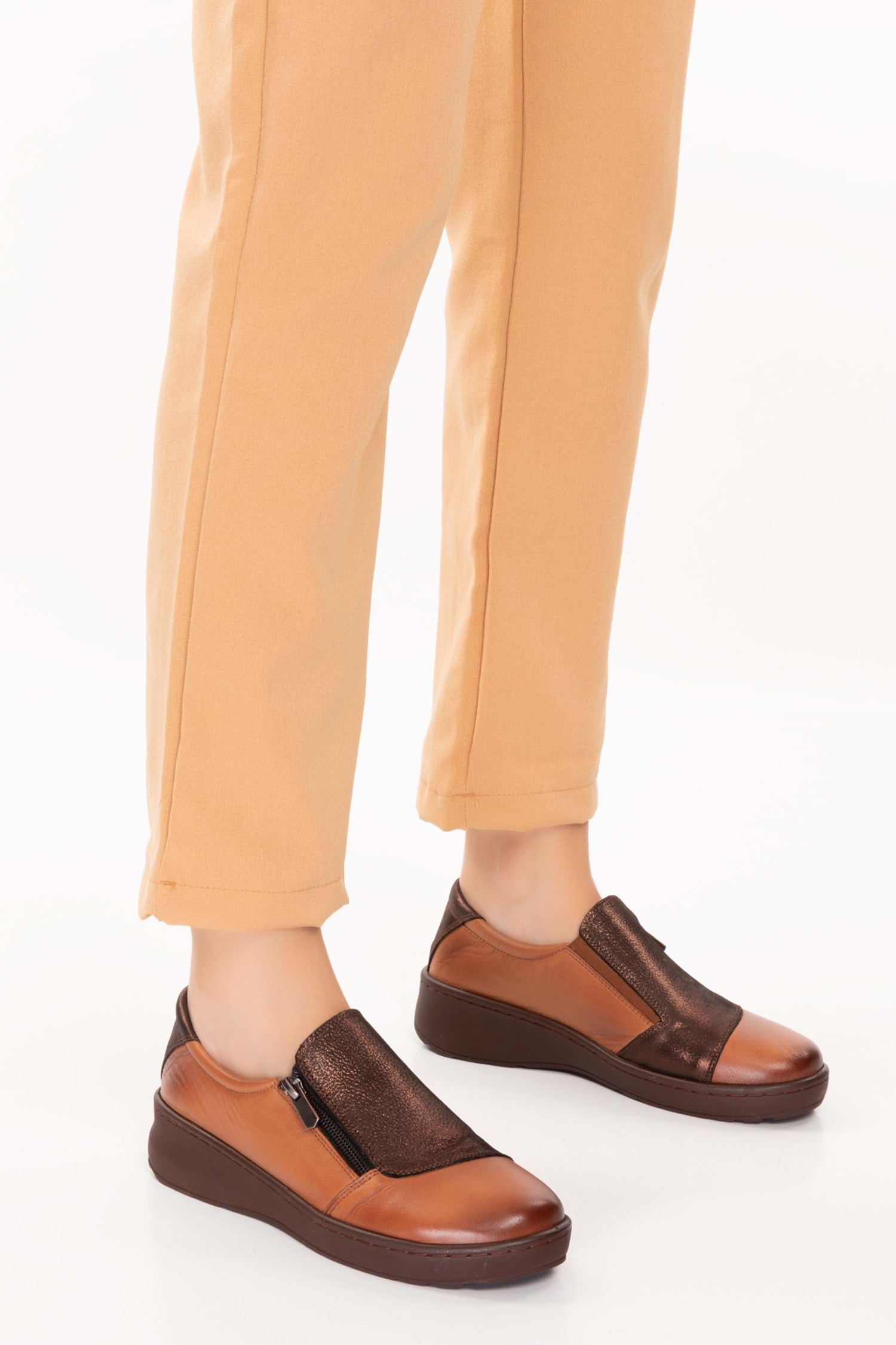 Gondol Kadın Hakiki Deri Anatomik Taban Dolgu Topuklu Günlük Ayakkabı esfa.15401 - Taba - 36